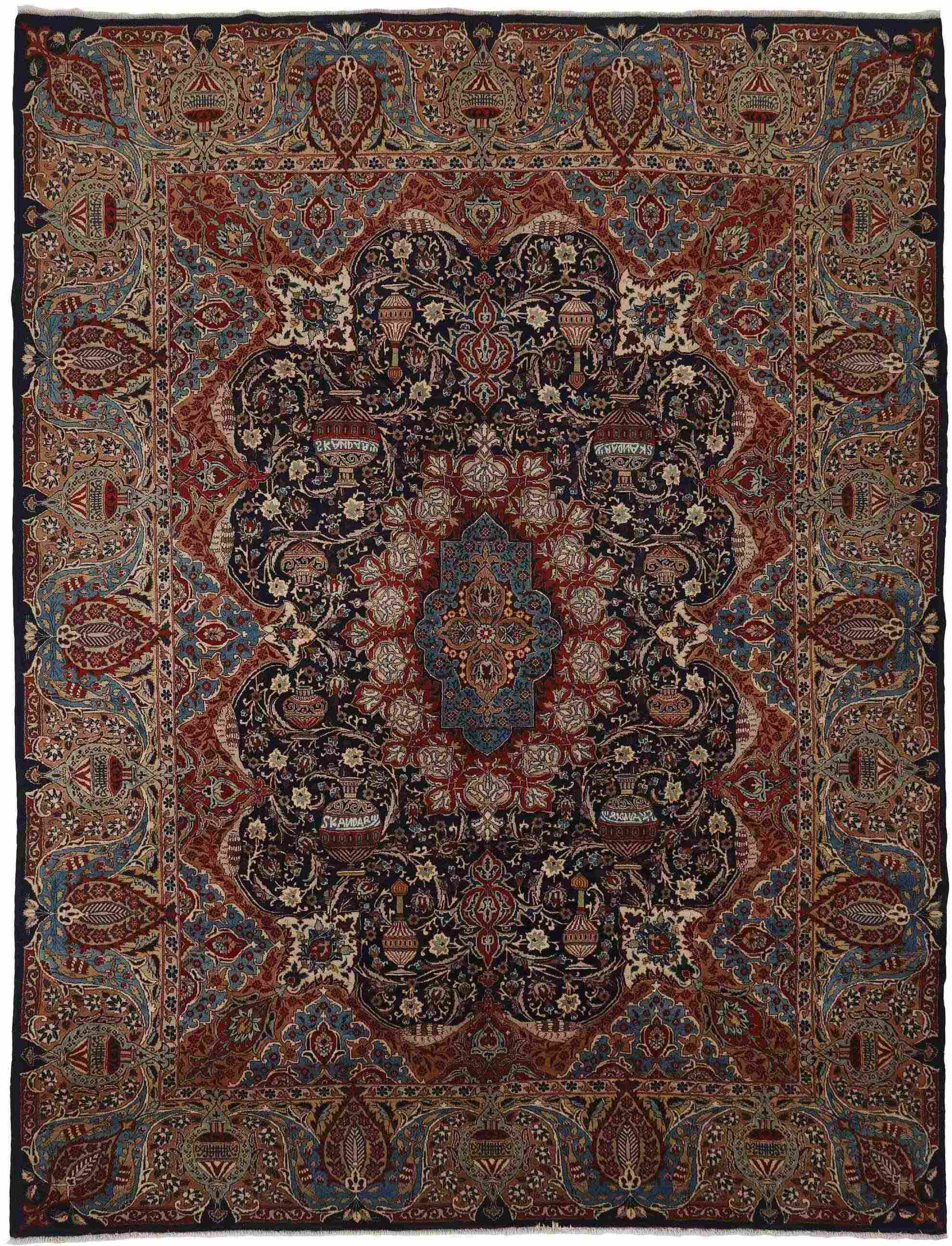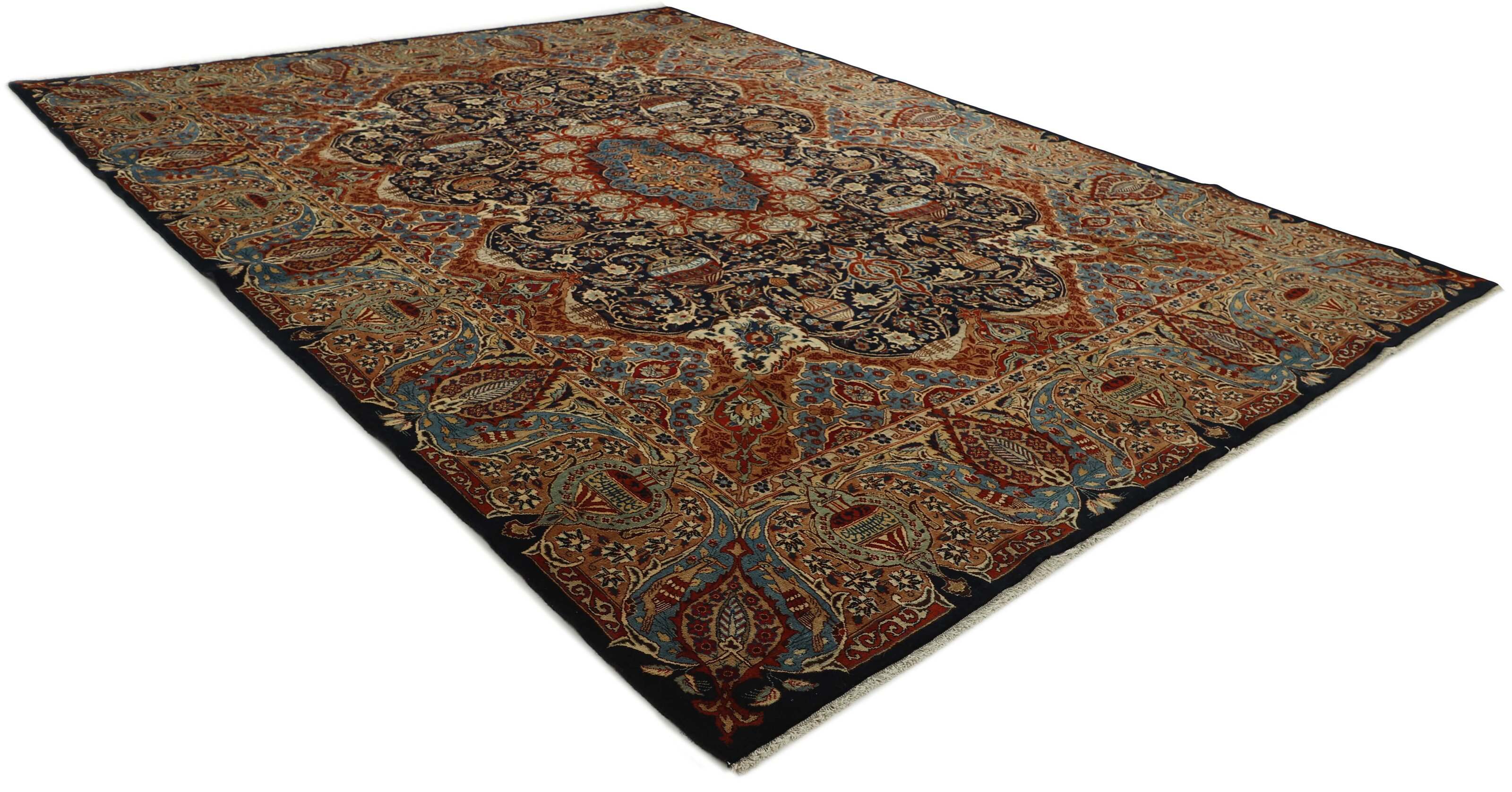 These rugs are hand knotted in the small town of Kashmar in north-eastern Iran, which is known for its high quality rugs. The rugs are famous for their unique patterns and are very rare today. They are often only available in larger sizes, and are in some cases similar to the classical Keshan rugs, with their medallions and special corners.