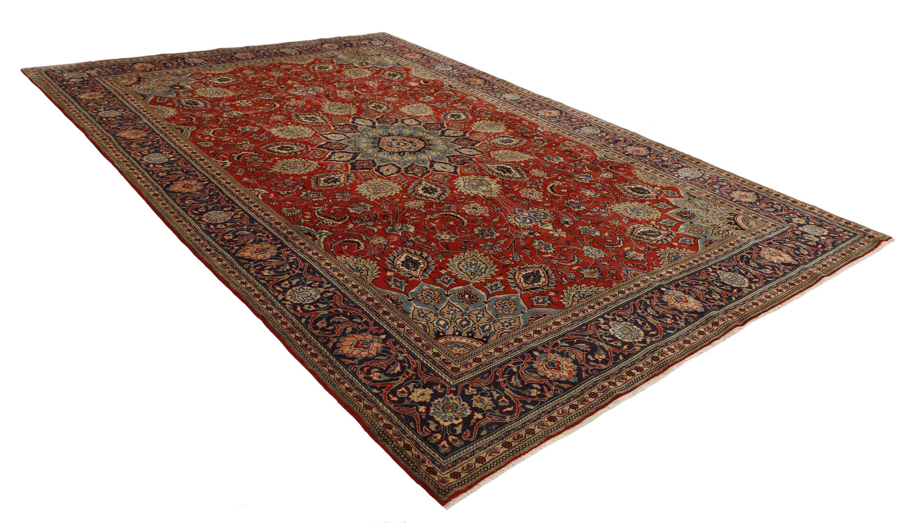 Sarough is one of the most famous names of Persian rugs, and also a small, unknown village north-west of Arak in the Markazi (Central) Province of Iran. Actually, many of the villages in the Arak area produce rugs. The inhabitants are of mixed origin – Persian, Armenian and Georgian – resulting in a huge variation of patterns, techniques and rug sizes in this region. The Sarough rugs have creative patterns, done in good quality wool, with warp and weft in cotton. The patterns are a mix of geometrical and curved line motifs. In recent times, Sarough rugs have been knotted more solidly, sometimes approaching Bidjar quality. Ferahan is one of the most thoroughly crafted rugs of the area, closely knotted with fine patterns. Lilihan is one of several villages where rugs are knotted in the so-called American Sarough pattern, a symmetrical pattern of curved, jagged leaves, with very little background in tradition. Sherkat is the designation for a select series of rug types that are knotted in special workshops as part of a state controlled project, the purpose of which is to support and thereby preserve the production of fine classical Persian rug patterns.