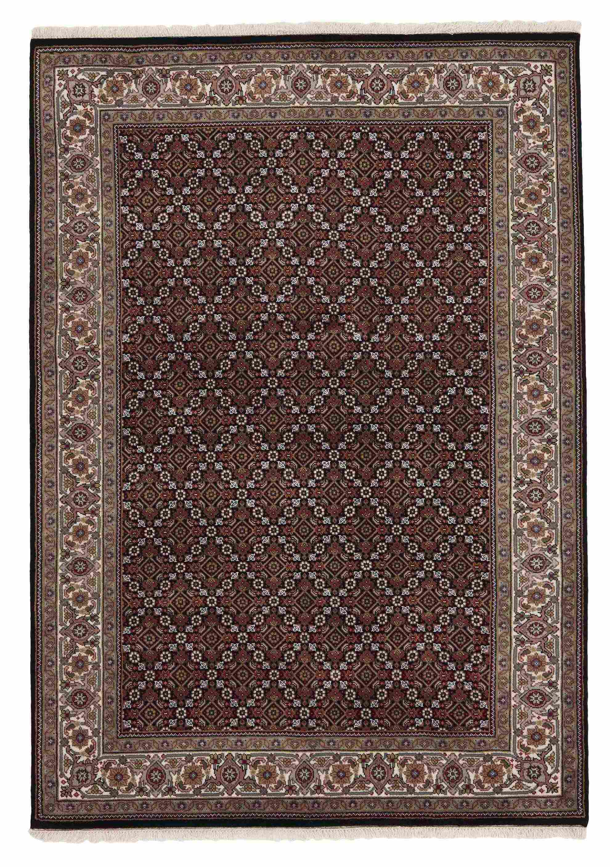 Tabriz Royals are classical hand knotted rugs from India, with designs inspired by the original Persian Tabriz rugs. The rugs have classical, toned-down colours that go well with modern Scandinavian style. Tabriz rugs are usually structured around a central medallion surrounded by mahi pattern. There is some difference in quality between Royals and Indis, but it is not easily observable. Tabriz Indis are classical hand knotted rugs from India, with designs inspired by the original Persian Tabriz rugs. The rugs have classical, toned-down colours that go well with modern Scandinavian style. Tabriz rugs are usually structured around a central medallion surrounded by mahi pattern. There is some difference in quality between Royals and Indis, but it is not easily observable.
