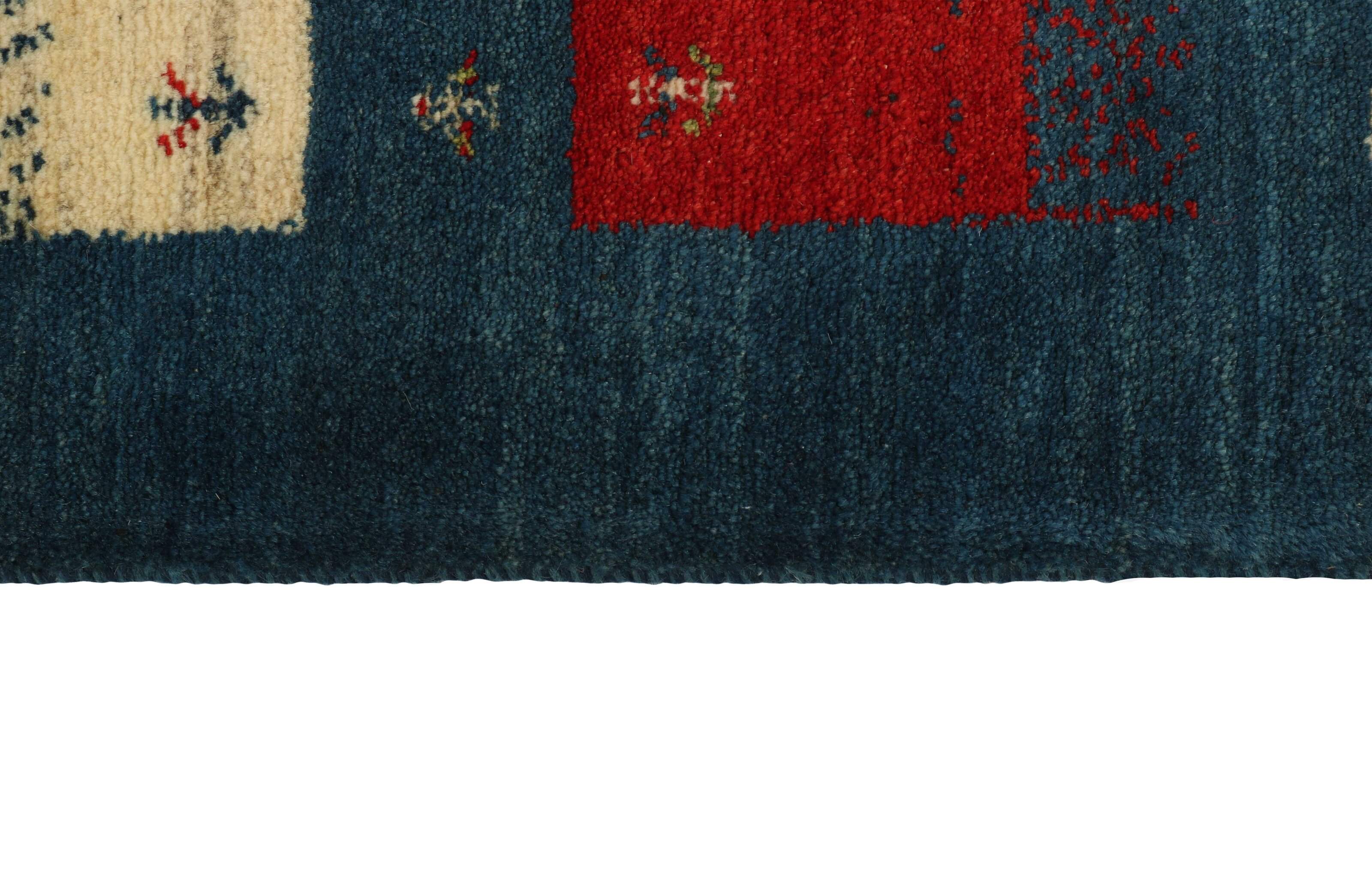 Gabbeh Fine est le nom d'un tapis spécial de haute qualité, fabriqué à partir de laine filée à la main et teinte avec des colorants végétaux. Le Gabbeh Fine est tissé par les tribus Lori et Kashghai. Il est grossièrement tissé, avec des couleurs claires et un poil épais. La plupart des tapis Gabbeh sont vendus dans les bazars de Shiraz. Les extrémités sont des kelims qui ont été repoussés et cousus. Les motifs sont le plus souvent géométriques, bien que les Gabbeh Kashghai affichent parfois des motifs dans leurs tapis plus fins. On peut parfois voir des motifs figuratifs ; des chèvres, des chameaux et des lions, recouverts de petits motifs géométriques, et des copies de reliefs de Persépolis (la principale ville de la dynastie achéménide, près de Shiraz). Les couleurs typiques sont le beige, le marron, le rouge, l'orange et le bleu foncé. Les tapis Gabbeh sont fabriqués par les tribus nomades et les habitants du sud de l'Iran. Les tribus Khasqai et Lori sont les plus connues pour leurs productions. En ce qui concerne les motifs et les combinaisons de couleurs, les tapis Gabbeh sont sans aucun doute les plus imprévisibles des tapis persans. Le style nomade est simple et spartiate, des qualités qui rendent ces tapis si variés et passionnants. Les couleurs pures et attrayantes et les figures simples du tapis Gabbeh s'adaptent au style de la maison moderne.
