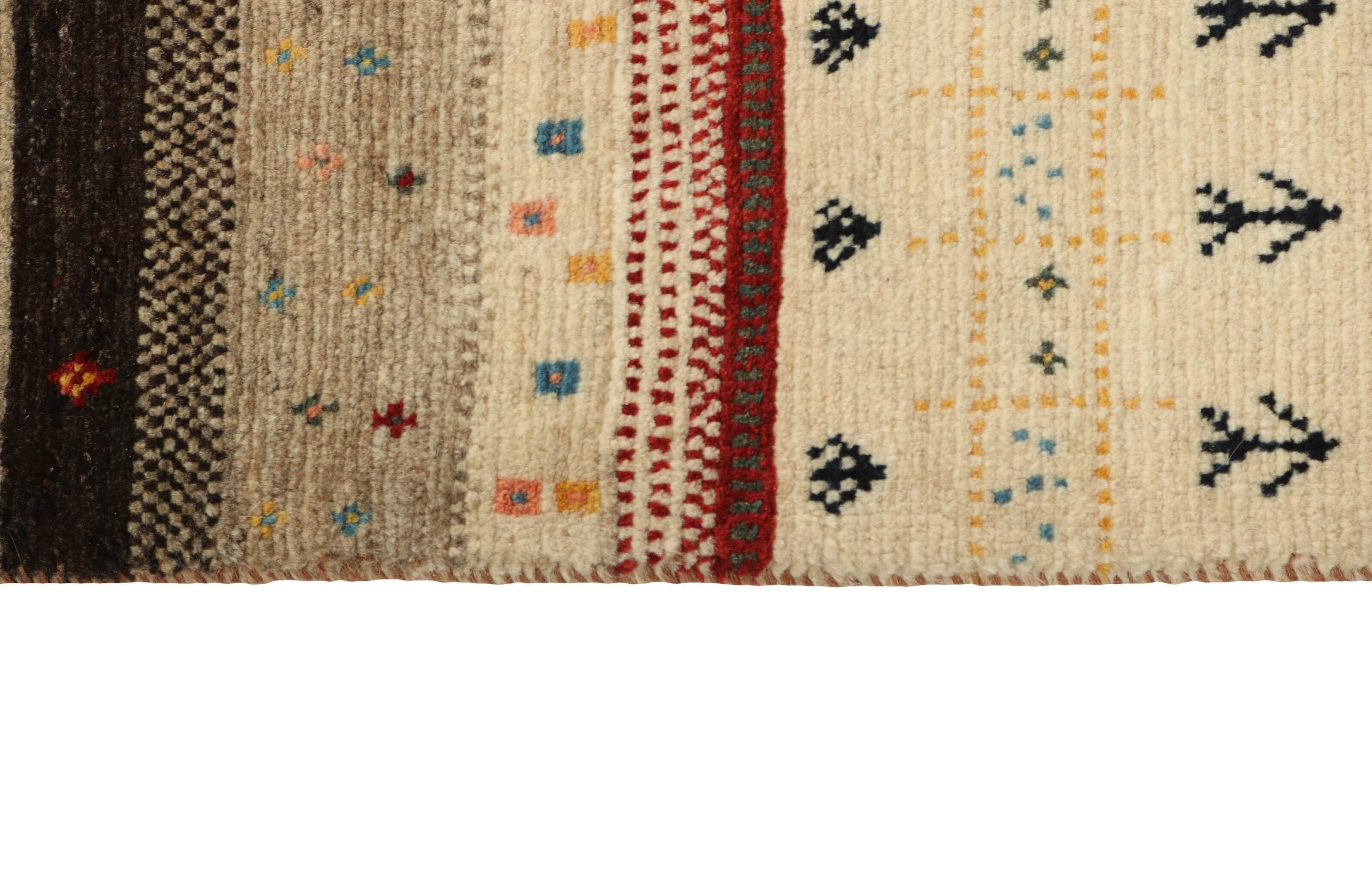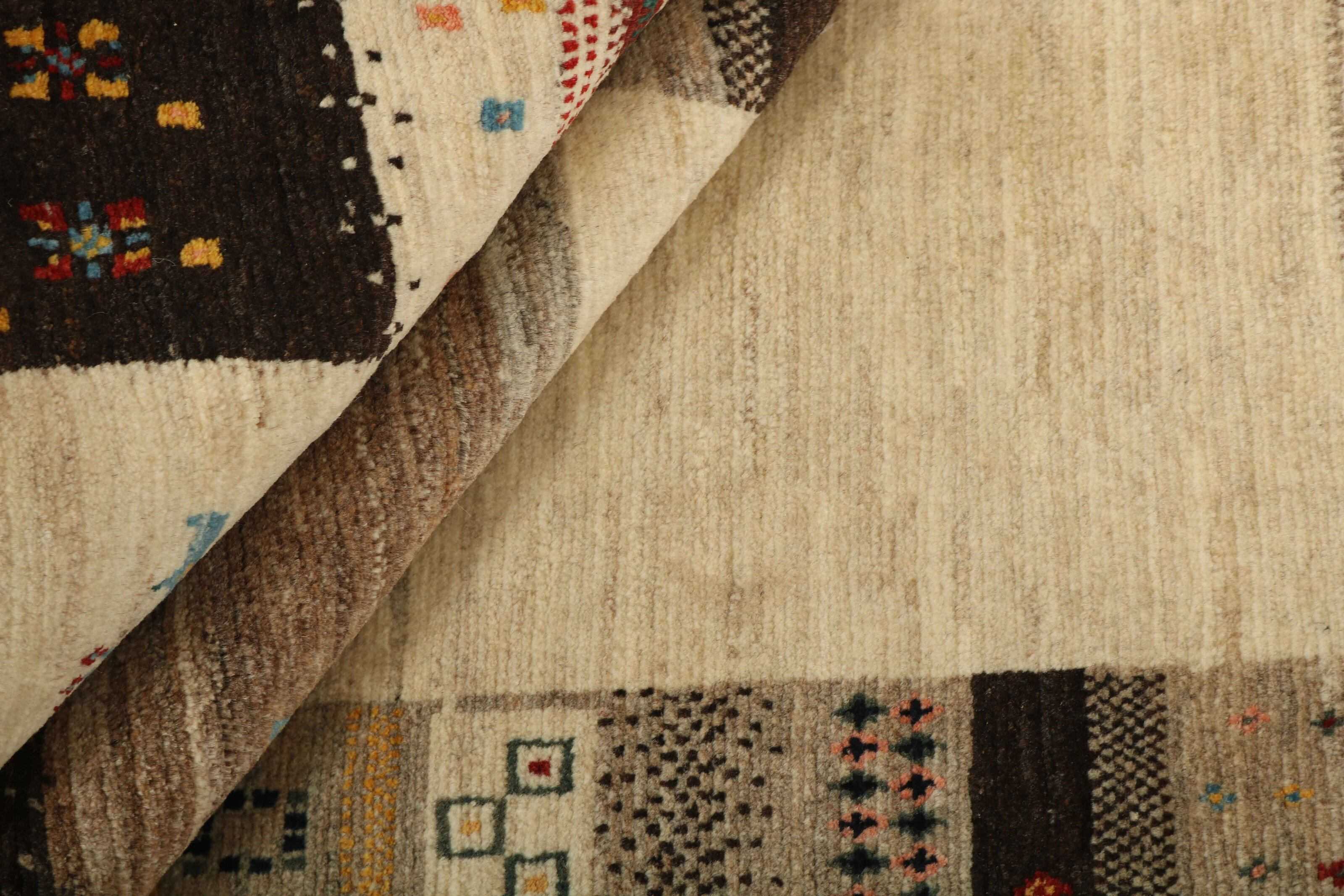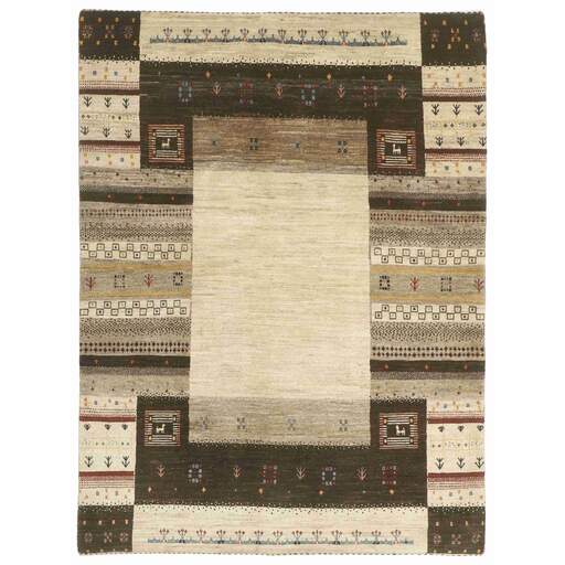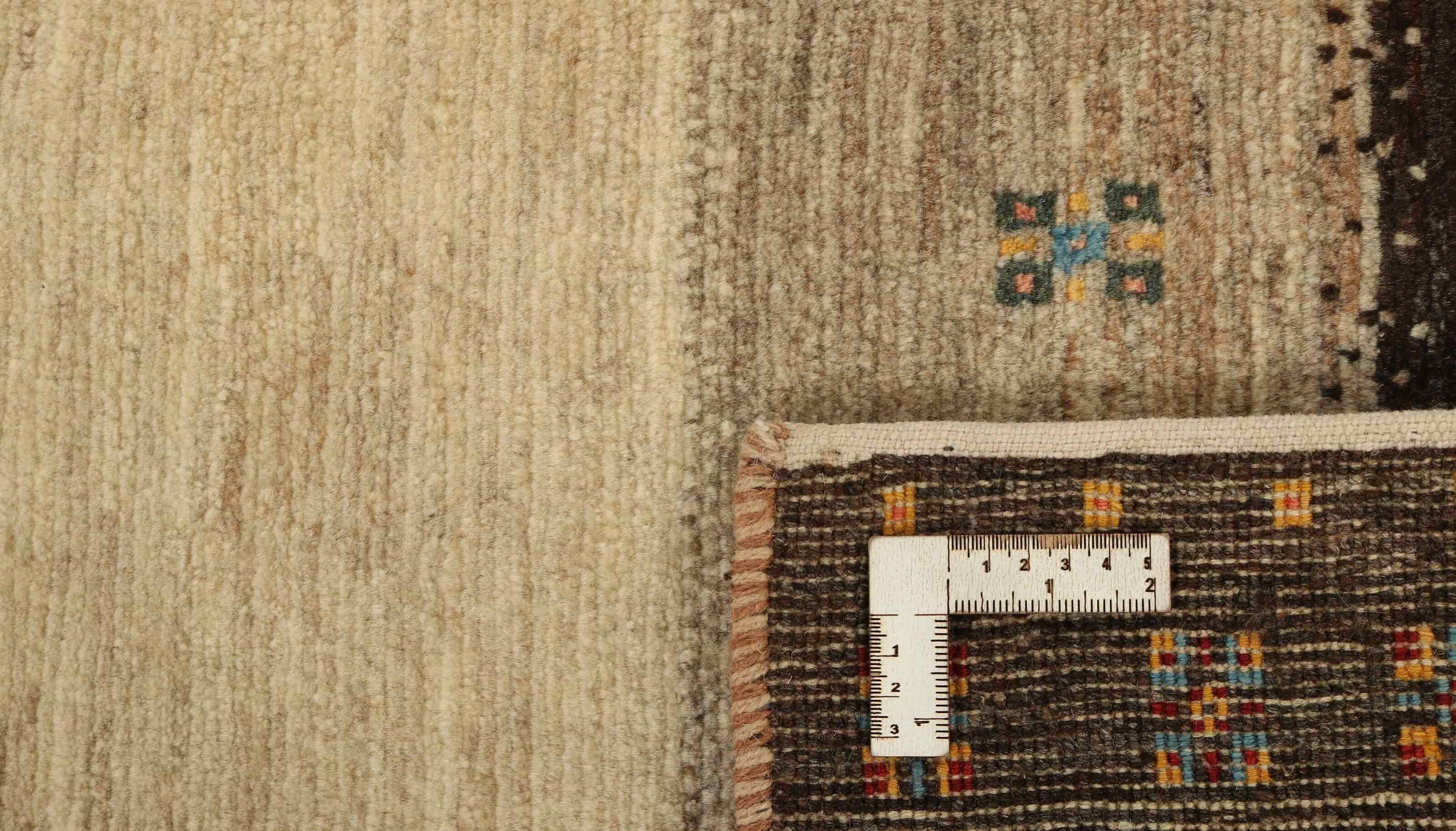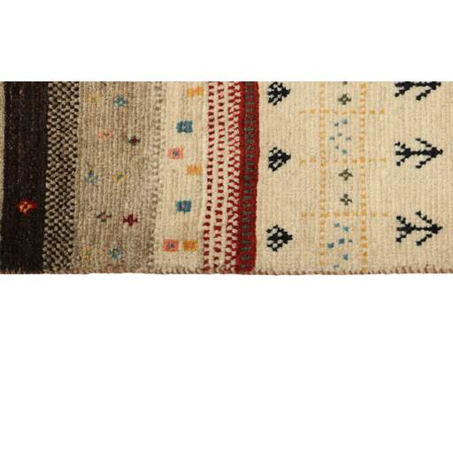 Gabbeh Fine est le nom d'un tapis spécial de haute qualité, fabriqué à partir de laine filée à la main et teinte avec des colorants végétaux. Le Gabbeh Fine est tissé par les tribus Lori et Kashghai. Il est grossièrement tissé, avec des couleurs claires et un poil épais. La plupart des tapis Gabbeh sont vendus dans les bazars de Shiraz. Les extrémités sont des kelims qui ont été repoussés et cousus. Les motifs sont le plus souvent géométriques, bien que les Gabbeh Kashghai affichent parfois des motifs dans leurs tapis plus fins. On peut parfois voir des motifs figuratifs ; des chèvres, des chameaux et des lions, recouverts de petits motifs géométriques, et des copies de reliefs de Persépolis (la principale ville de la dynastie achéménide, près de Shiraz). Les couleurs typiques sont le beige, le marron, le rouge, l'orange et le bleu foncé. Les tapis Gabbeh sont fabriqués par les tribus nomades et les habitants du sud de l'Iran. Les tribus Khasqai et Lori sont les plus connues pour leurs productions. En ce qui concerne les motifs et les combinaisons de couleurs, les tapis Gabbeh sont sans aucun doute les plus imprévisibles des tapis persans. Le style nomade est simple et spartiate, des qualités qui rendent ces tapis si variés et passionnants. Les couleurs pures et attrayantes et les figures simples du tapis Gabbeh s'adaptent au style de la maison moderne.
