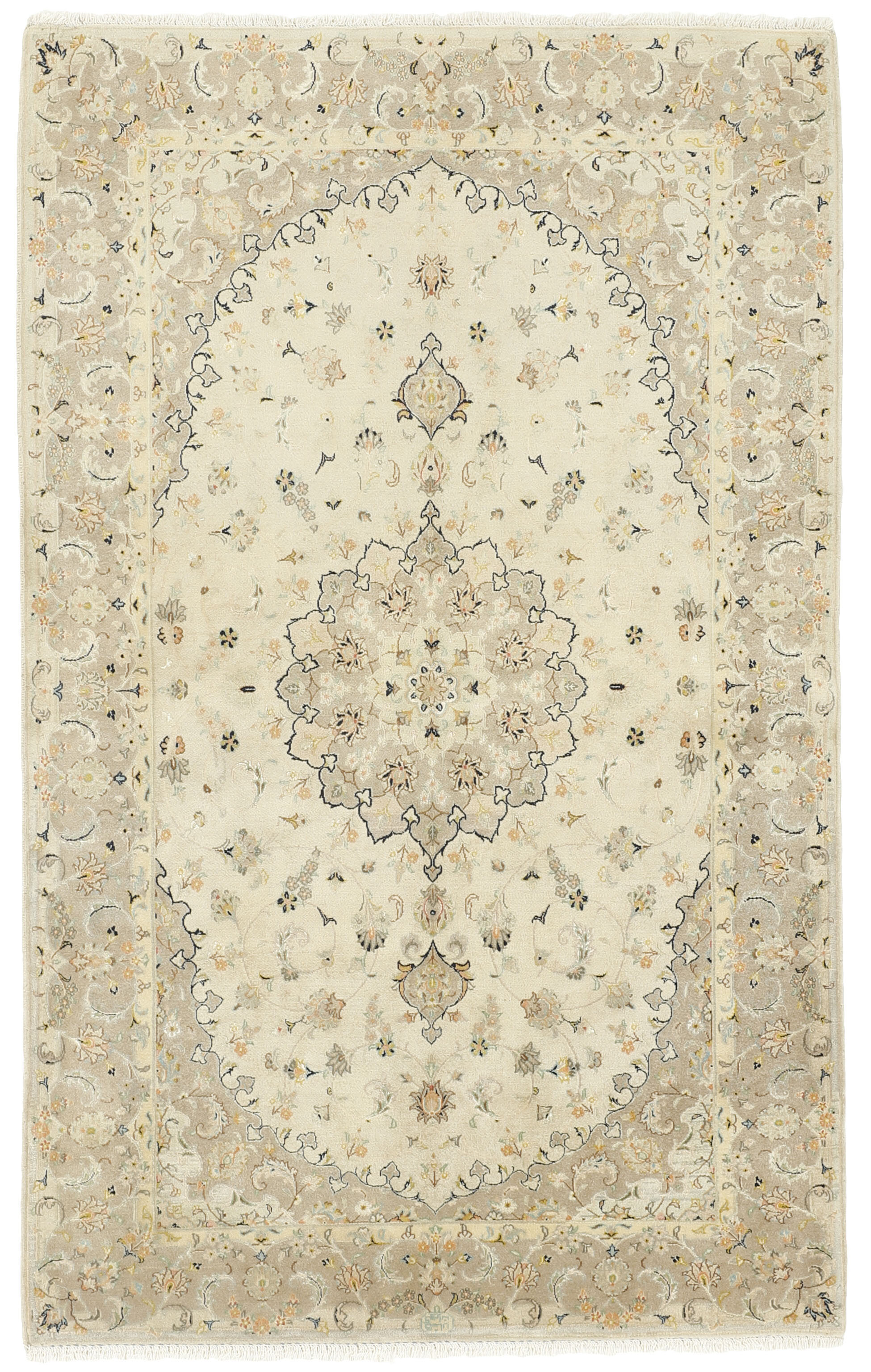 Keshan a toujours été célèbre pour son artisanat. Les villages se situent sur la route principale entre Ghom et Ispahan, dans le centre de l'Iran. À l'est, la région borde le plus grand désert d'Iran. Malgré le déclin de cet artisanat particulier au cours du XXe siècle, de nombreux tapis Keshan magnifiques sont toujours fabriqués conformément aux traditions des anciens maîtres, par exemple décorés de magnifiques motifs en médaillon ou de tapisseries représentant des motifs humains et animaux. Les motifs sont le plus souvent tissés autour d'un médaillon au centre du tapis, dont certains se répètent dans les coins. Les autres champs sont densément décorés de fleurs et de vignes réalistes. La bordure principale présente souvent le motif « Herati » (une feuille arquée), tandis que les bordures secondaires présentent des rosettes. Le rouge brique et le bleu foncé sont les couleurs de base les plus courantes. Keshan est une ville d'environ 300 000 habitants, située dans la province d'Ispahan, dans le centre de l'Iran. Elle est plutôt basse et il fait très chaud en été. Traditionnellement, les gens ont cherché à remédier à ce problème en construisant les maisons dans le sol. Keshan produit des tapis en laine et en soie. Les premiers ont une chaîne et une trame en coton, la trame étant bleue. Plusieurs qualités sont produites, mais la plupart des tapis Keshan sont très finement noués et entièrement couvrants. La forme d'un médaillon Keshan est assez particulière ; elle est faite d'une alternance de lignes courbes et d'angles droits. Les couleurs les plus courantes sont un champ rouge et un médaillon bleu, avec des détails secondaires dans d'autres couleurs. Les garnitures d'un tapis Keshan sont également spéciales ; la garniture principale est normalement entourée de rayures qui forment un motif géométrique, généralement de petits triangles bleus et rouges. Les tapis Keshan existent dans toutes les tailles. La ville de Natanez, au sud-est du pays, a donné son nom à des tapis d'image réalisés avec le même nouage que les Keshan.