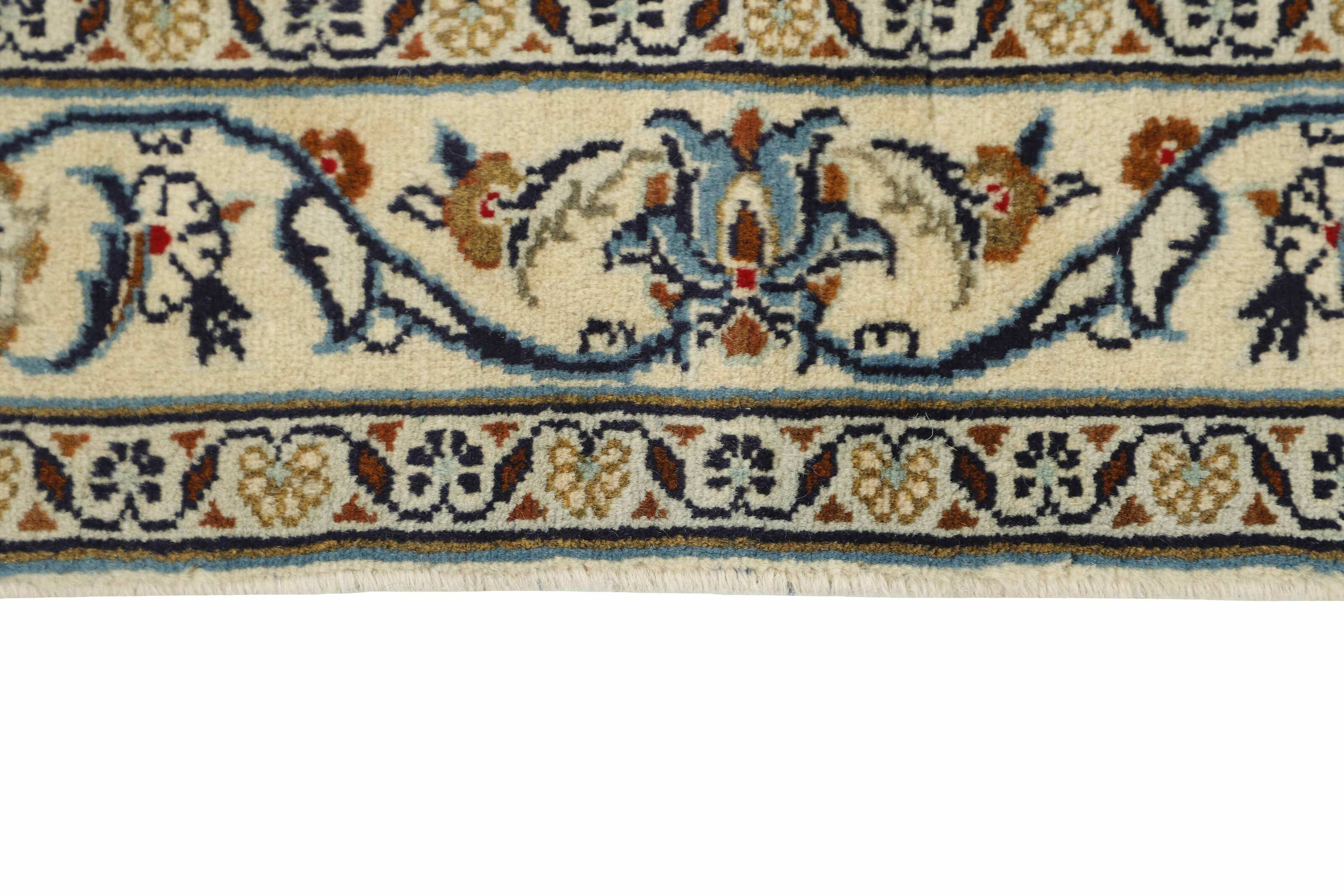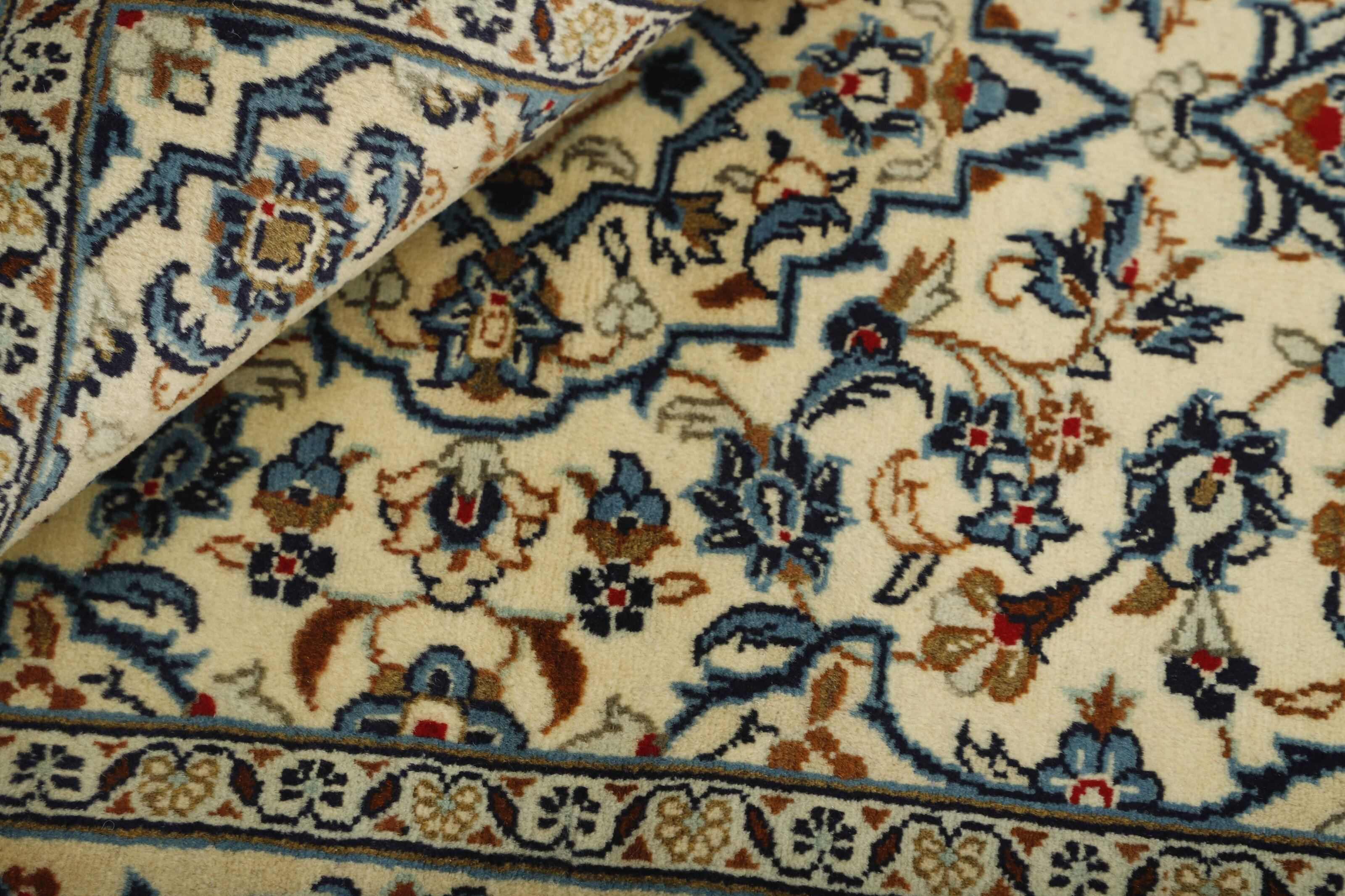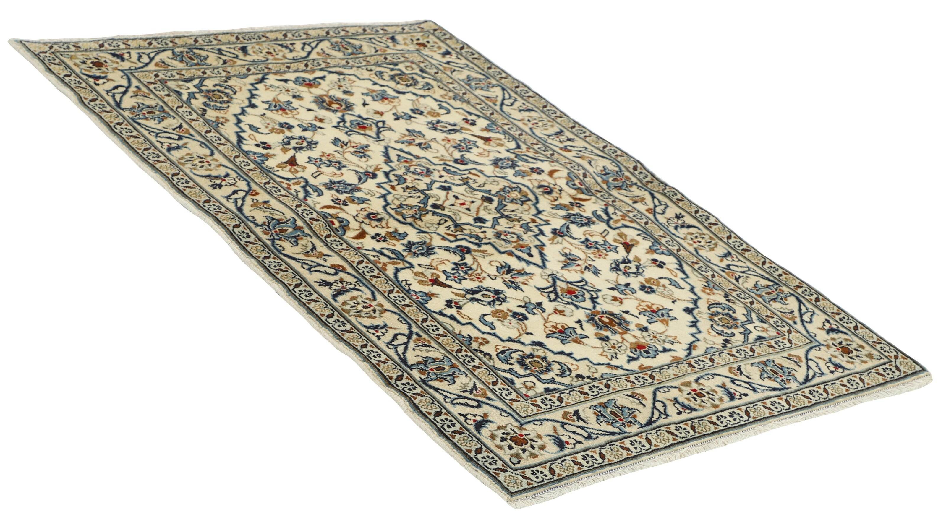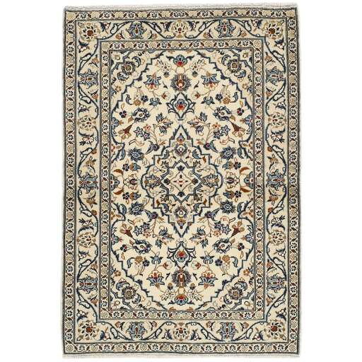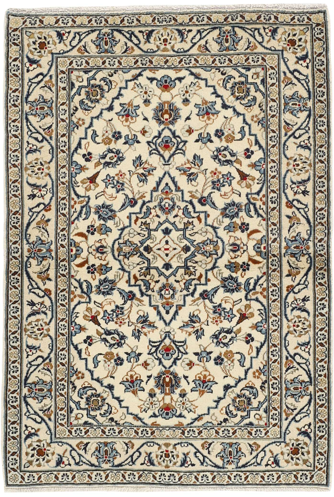 Keshan a toujours été célèbre pour son artisanat. Les villages se situent sur la route principale entre Ghom et Ispahan, dans le centre de l'Iran. À l'est, la région borde le plus grand désert d'Iran. Malgré le déclin de cet artisanat particulier au cours du XXe siècle, de nombreux tapis Keshan magnifiques sont toujours fabriqués conformément aux traditions des anciens maîtres, par exemple décorés de magnifiques motifs en médaillon ou de tapisseries représentant des motifs humains et animaux. Les motifs sont le plus souvent tissés autour d'un médaillon au centre du tapis, dont certains se répètent dans les coins. Les autres champs sont densément décorés de fleurs et de vignes réalistes. La bordure principale présente souvent le motif « Herati » (une feuille arquée), tandis que les bordures secondaires présentent des rosettes. Le rouge brique et le bleu foncé sont les couleurs de base les plus courantes. Keshan est une ville d'environ 300 000 habitants, située dans la province d'Ispahan, dans le centre de l'Iran. Elle est plutôt basse et il fait très chaud en été. Traditionnellement, les gens ont cherché à remédier à ce problème en construisant les maisons dans le sol. Keshan produit des tapis en laine et en soie. Les premiers ont une chaîne et une trame en coton, la trame étant bleue. Plusieurs qualités sont produites, mais la plupart des tapis Keshan sont très finement noués et entièrement couvrants. La forme d'un médaillon Keshan est assez particulière ; elle est faite d'une alternance de lignes courbes et d'angles droits. Les couleurs les plus courantes sont un champ rouge et un médaillon bleu, avec des détails secondaires dans d'autres couleurs. Les garnitures d'un tapis Keshan sont également spéciales ; la garniture principale est normalement entourée de rayures qui forment un motif géométrique, généralement de petits triangles bleus et rouges. Les tapis Keshan existent dans toutes les tailles. La ville de Natanez, au sud-est du pays, a donné son nom à des tapis d'image réalisés avec le même nouage que les Keshan.