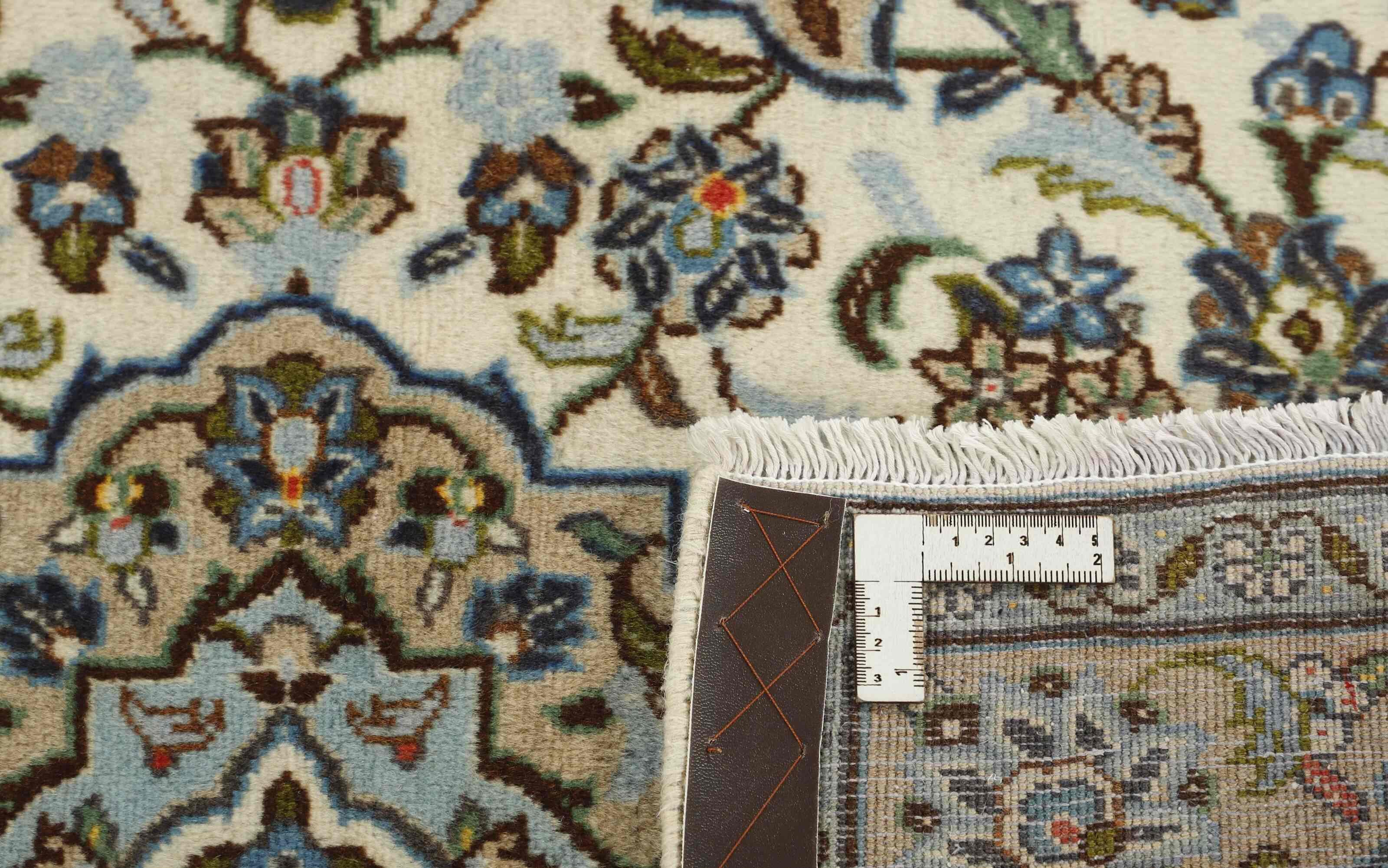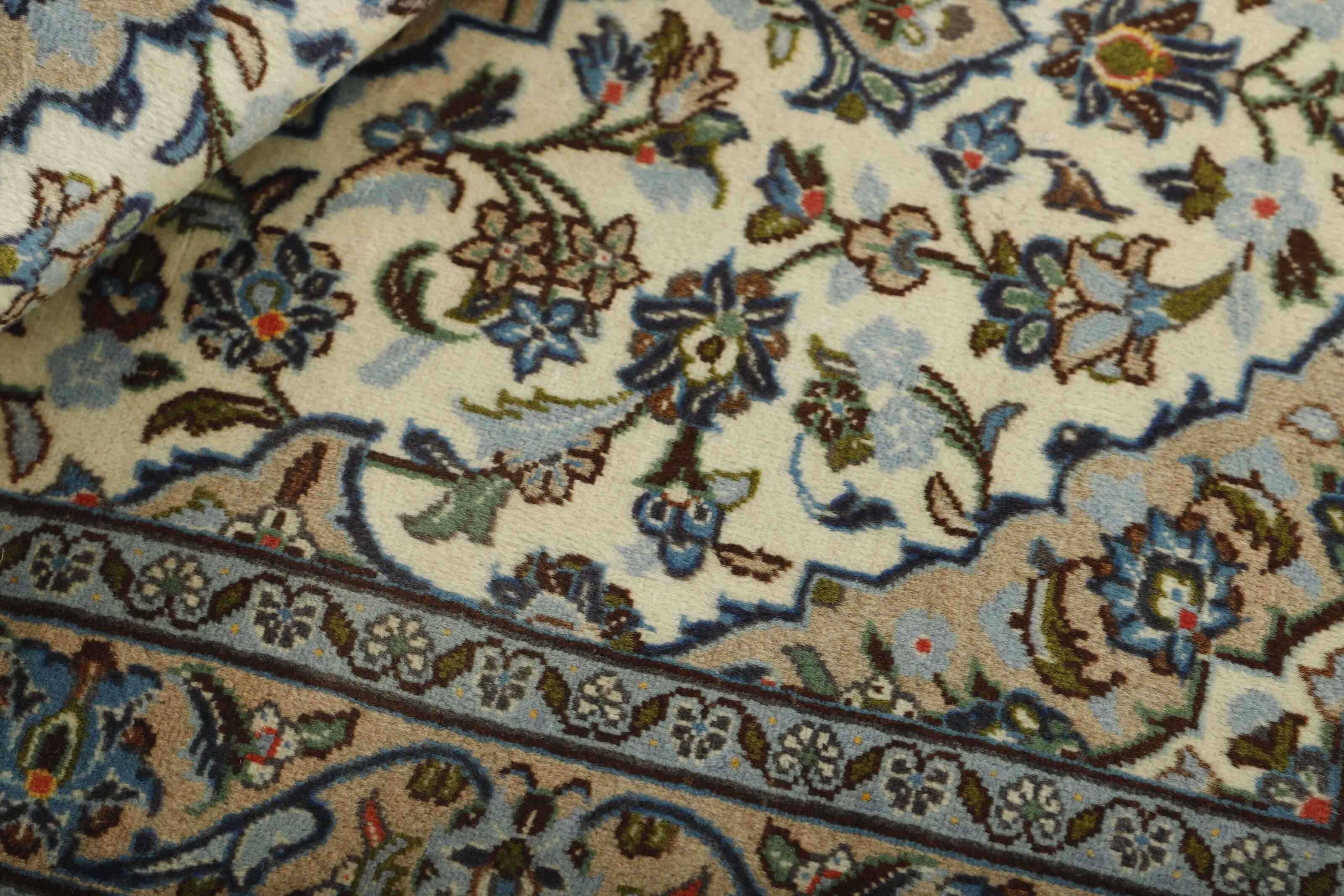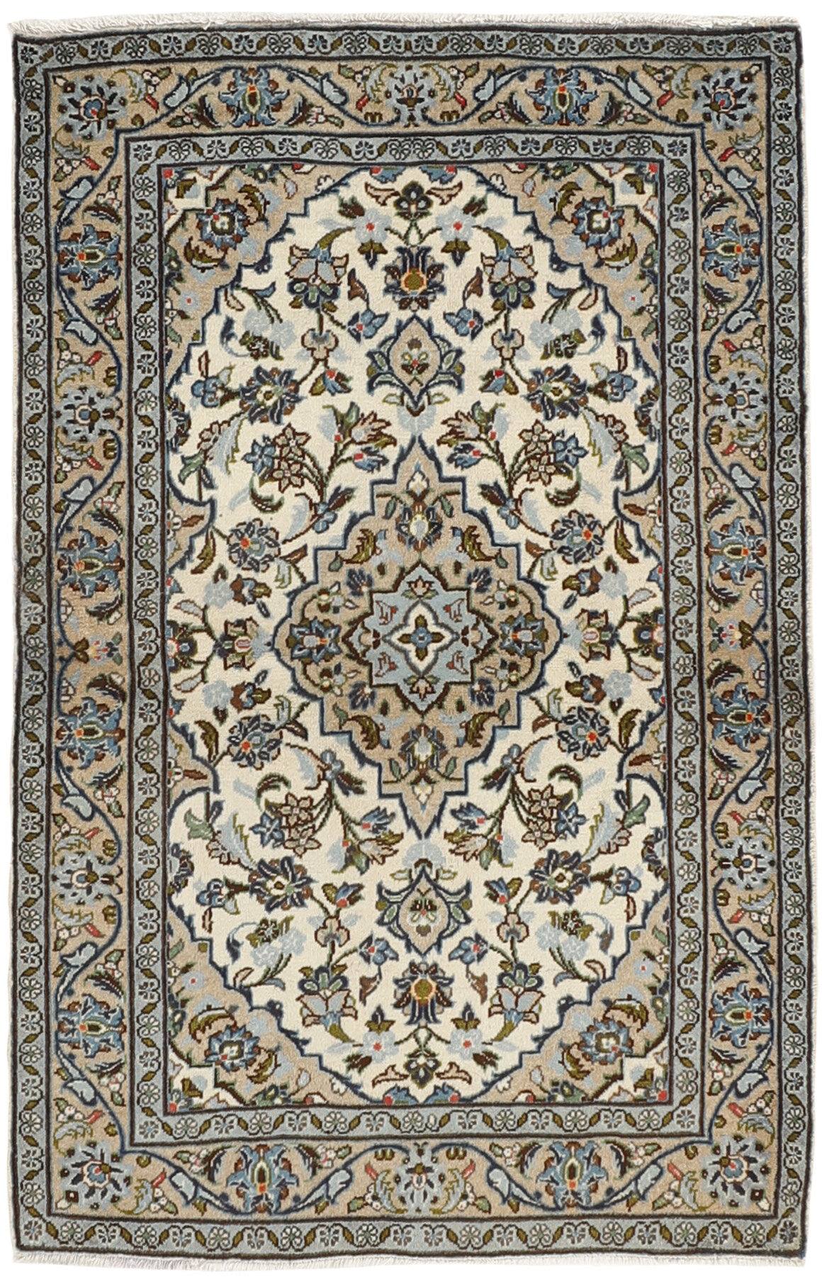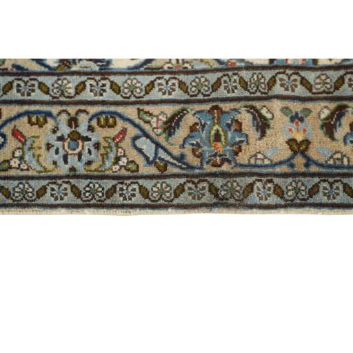 Keshan a toujours été célèbre pour son artisanat. Les villages se situent sur la route principale entre Ghom et Ispahan, dans le centre de l'Iran. À l'est, la région borde le plus grand désert d'Iran. Malgré le déclin de cet artisanat particulier au cours du XXe siècle, de nombreux tapis Keshan magnifiques sont toujours fabriqués conformément aux traditions des anciens maîtres, par exemple décorés de magnifiques motifs en médaillon ou de tapisseries représentant des motifs humains et animaux. Les motifs sont le plus souvent tissés autour d'un médaillon au centre du tapis, dont certains se répètent dans les coins. Les autres champs sont densément décorés de fleurs et de vignes réalistes. La bordure principale présente souvent le motif « Herati » (une feuille arquée), tandis que les bordures secondaires présentent des rosettes. Le rouge brique et le bleu foncé sont les couleurs de base les plus courantes. Keshan est une ville d'environ 300 000 habitants, située dans la province d'Ispahan, dans le centre de l'Iran. Elle est plutôt basse et il fait très chaud en été. Traditionnellement, les gens ont cherché à remédier à ce problème en construisant les maisons dans le sol. Keshan produit des tapis en laine et en soie. Les premiers ont une chaîne et une trame en coton, la trame étant bleue. Plusieurs qualités sont produites, mais la plupart des tapis Keshan sont très finement noués et entièrement couvrants. La forme d'un médaillon Keshan est assez particulière ; elle est faite d'une alternance de lignes courbes et d'angles droits. Les couleurs les plus courantes sont un champ rouge et un médaillon bleu, avec des détails secondaires dans d'autres couleurs. Les garnitures d'un tapis Keshan sont également spéciales ; la garniture principale est normalement entourée de rayures qui forment un motif géométrique, généralement de petits triangles bleus et rouges. Les tapis Keshan existent dans toutes les tailles. La ville de Natanez, au sud-est du pays, a donné son nom à des tapis d'image réalisés avec le même nouage que les Keshan.