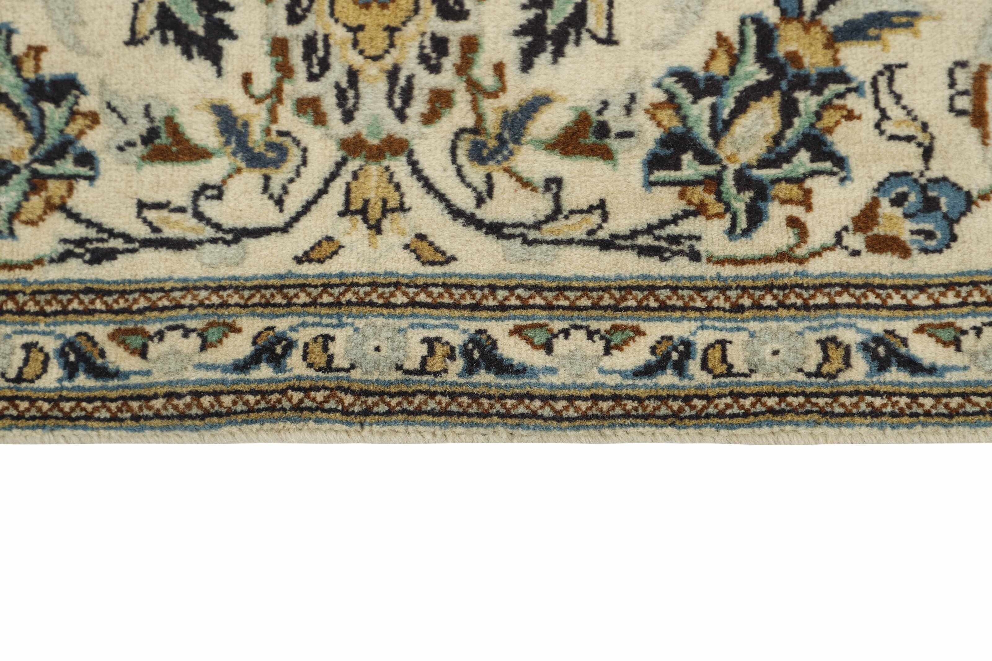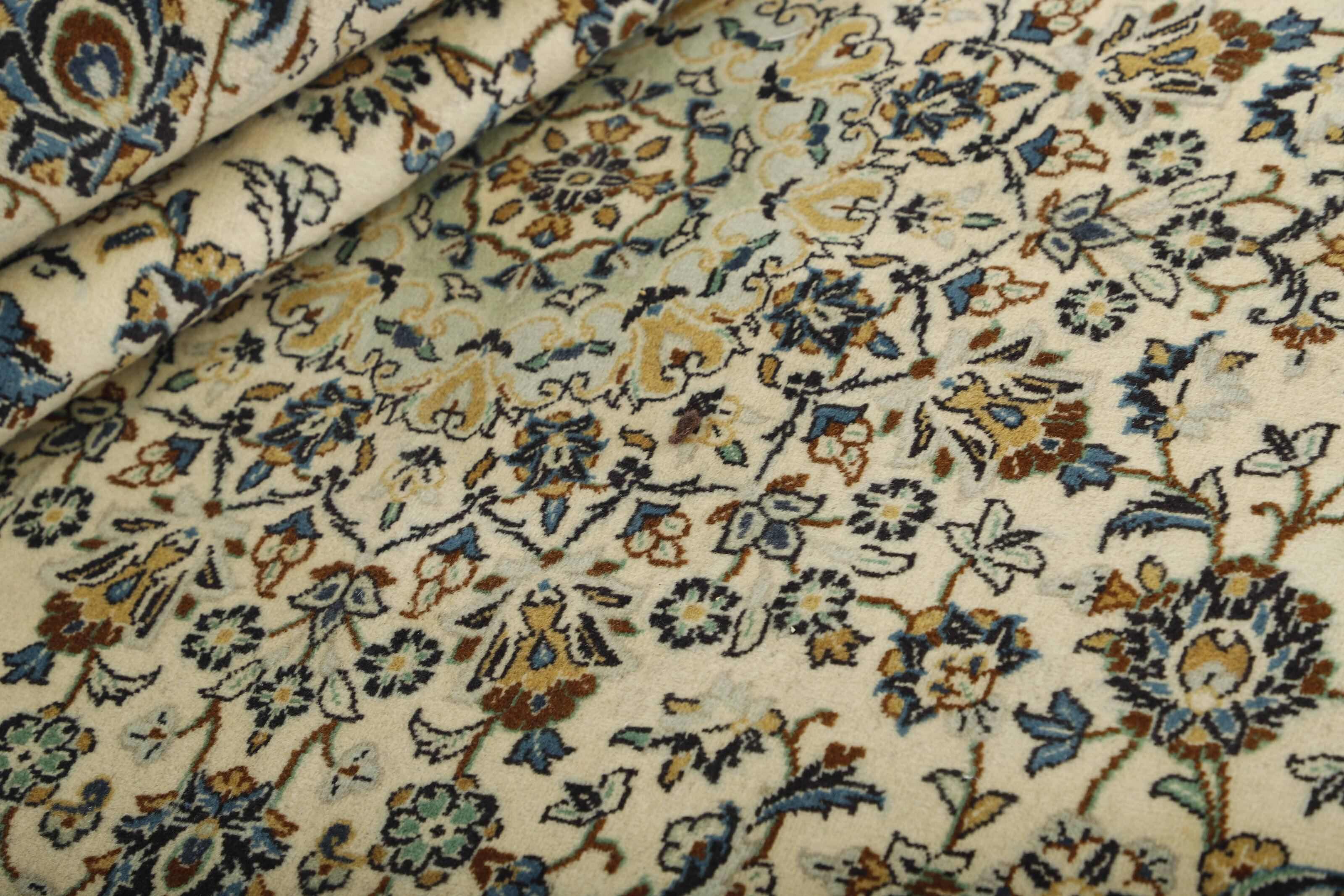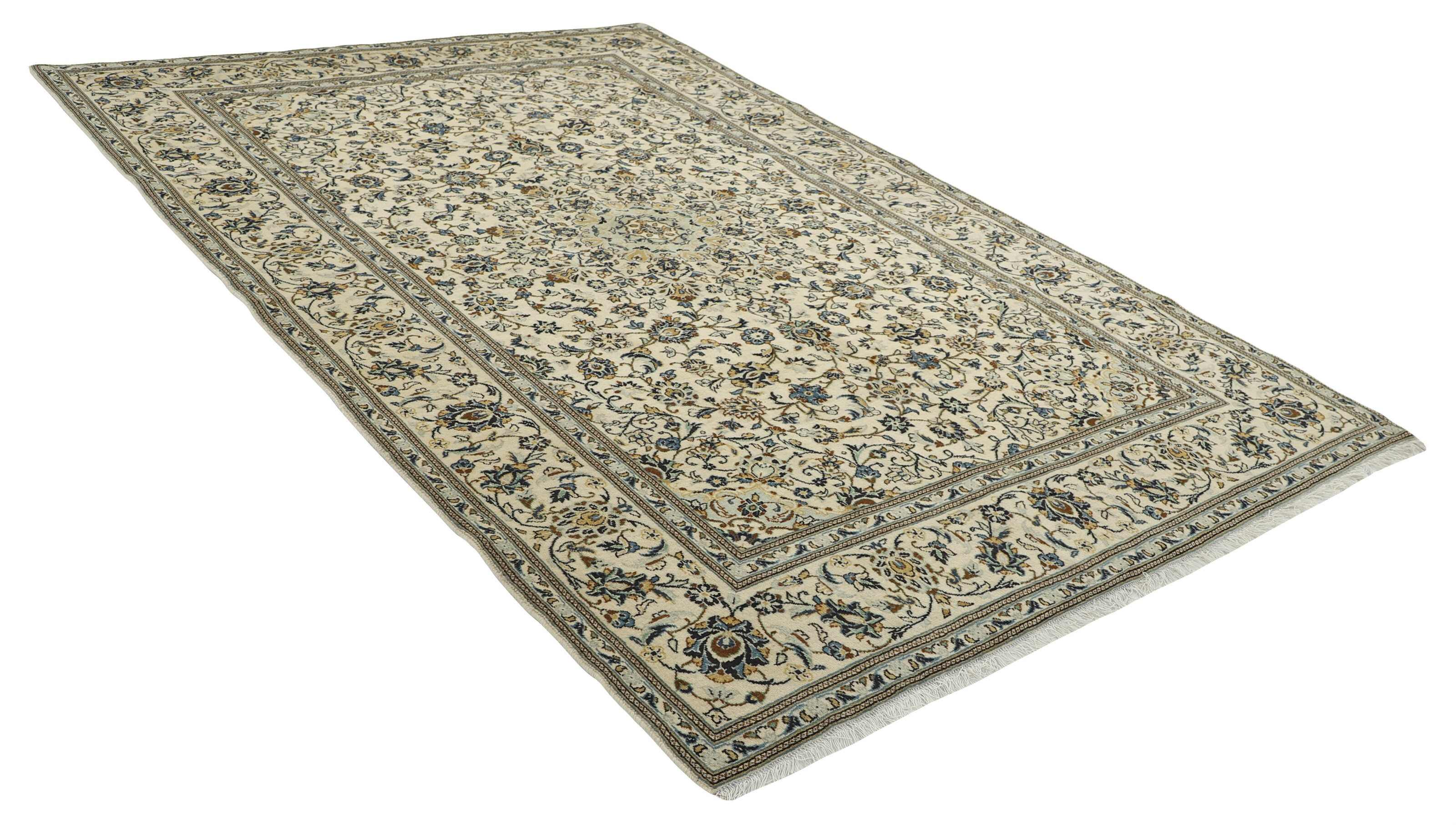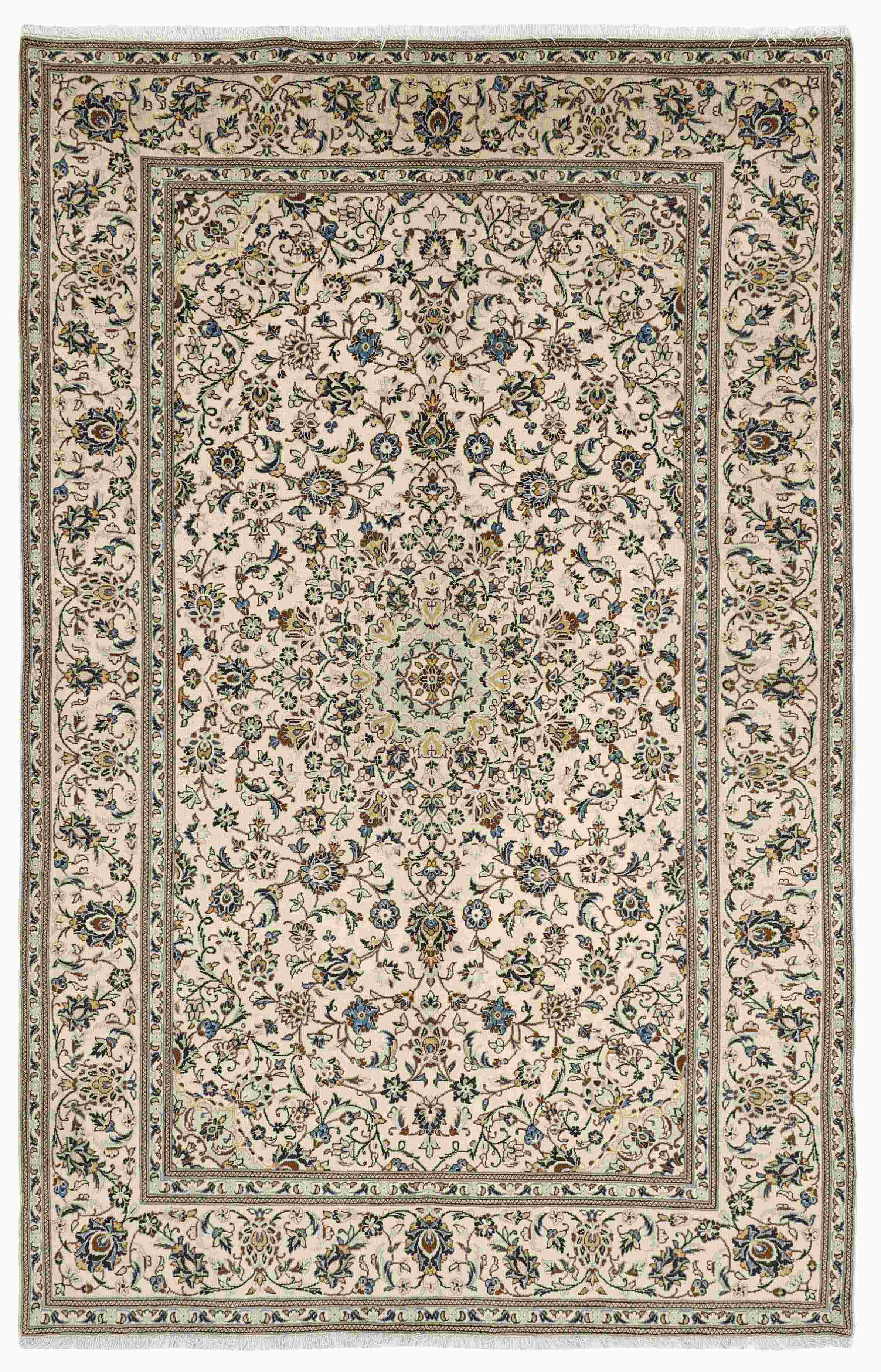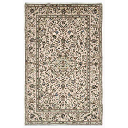 Keshan a toujours été célèbre pour son artisanat. Les villages se situent sur la route principale entre Ghom et Ispahan, dans le centre de l'Iran. À l'est, la région borde le plus grand désert d'Iran. Malgré le déclin de cet artisanat particulier au cours du XXe siècle, de nombreux tapis Keshan magnifiques sont toujours fabriqués conformément aux traditions des anciens maîtres, par exemple décorés de magnifiques motifs en médaillon ou de tapisseries représentant des motifs humains et animaux. Les motifs sont le plus souvent tissés autour d'un médaillon au centre du tapis, dont certains se répètent dans les coins. Les autres champs sont densément décorés de fleurs et de vignes réalistes. La bordure principale présente souvent le motif « Herati » (une feuille arquée), tandis que les bordures secondaires présentent des rosettes. Le rouge brique et le bleu foncé sont les couleurs de base les plus courantes. Keshan est une ville d'environ 300 000 habitants, située dans la province d'Ispahan, dans le centre de l'Iran. Elle est plutôt basse et il fait très chaud en été. Traditionnellement, les gens ont cherché à remédier à ce problème en construisant les maisons dans le sol. Keshan produit des tapis en laine et en soie. Les premiers ont une chaîne et une trame en coton, la trame étant bleue. Plusieurs qualités sont produites, mais la plupart des tapis Keshan sont très finement noués et entièrement couvrants. La forme d'un médaillon Keshan est assez particulière ; elle est faite d'une alternance de lignes courbes et d'angles droits. Les couleurs les plus courantes sont un champ rouge et un médaillon bleu, avec des détails secondaires dans d'autres couleurs. Les garnitures d'un tapis Keshan sont également spéciales ; la garniture principale est normalement entourée de rayures qui forment un motif géométrique, généralement de petits triangles bleus et rouges. Les tapis Keshan existent dans toutes les tailles. La ville de Natanez, au sud-est du pays, a donné son nom à des tapis d'image réalisés avec le même nouage que les Keshan.