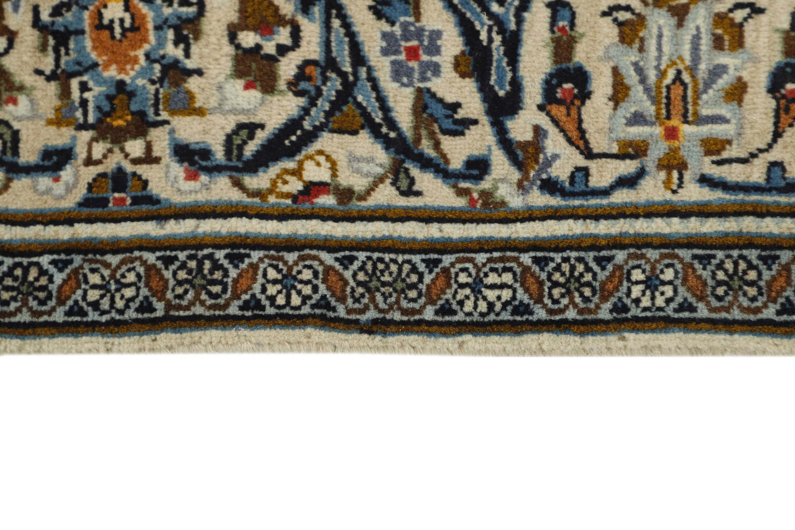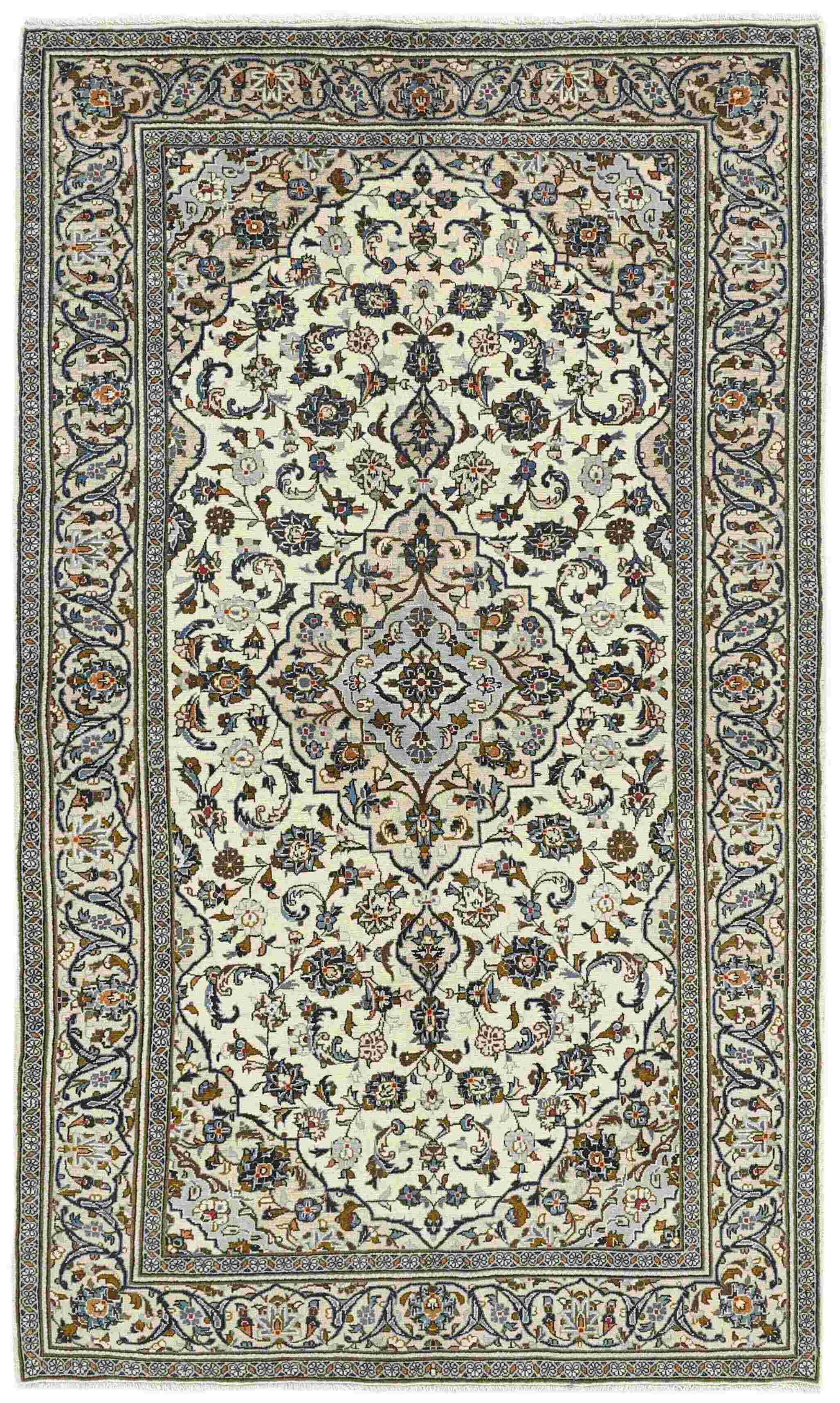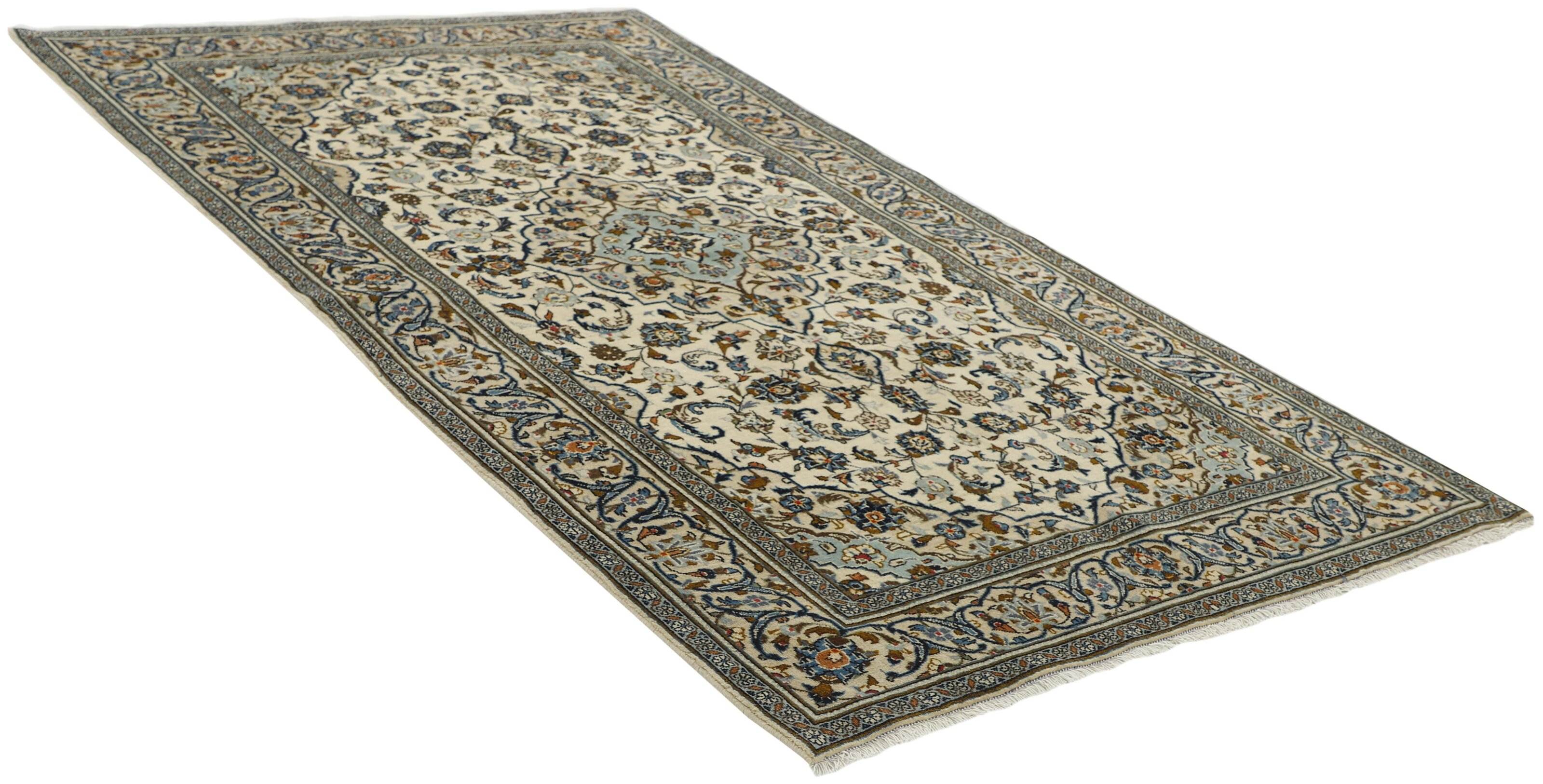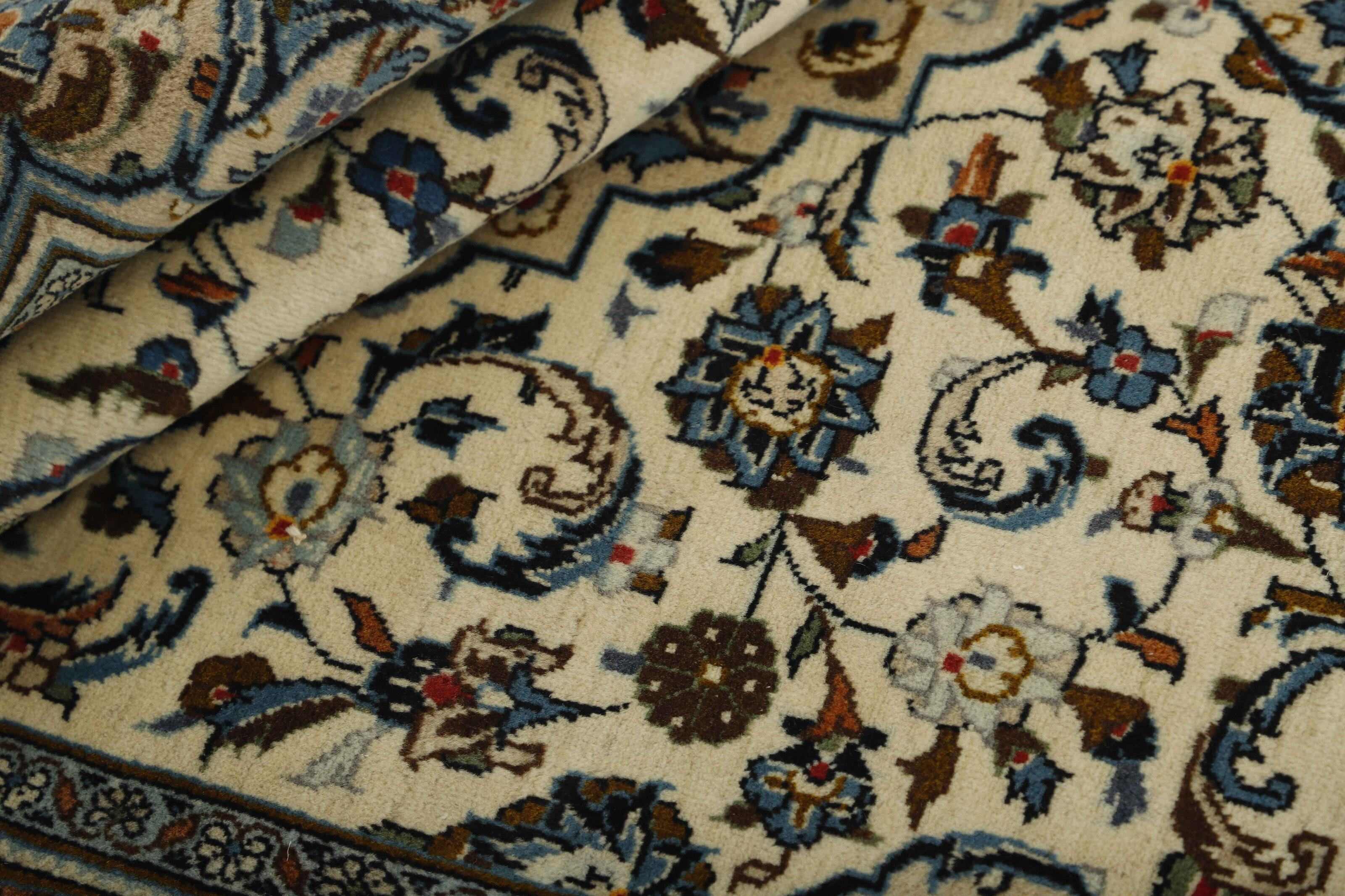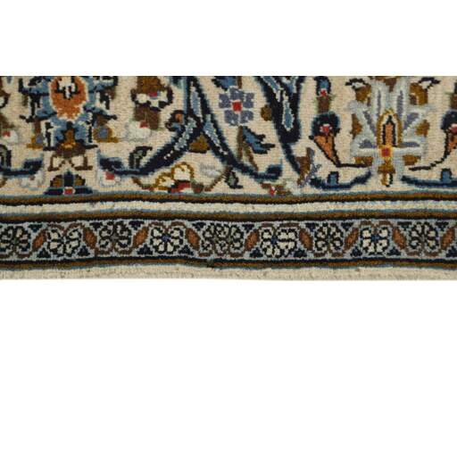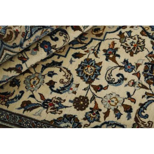 Keshan a toujours été célèbre pour son artisanat. Les villages se situent sur la route principale entre Ghom et Ispahan, dans le centre de l'Iran. À l'est, la région borde le plus grand désert d'Iran. Malgré le déclin de cet artisanat particulier au cours du XXe siècle, de nombreux tapis Keshan magnifiques sont toujours fabriqués conformément aux traditions des anciens maîtres, par exemple décorés de magnifiques motifs en médaillon ou de tapisseries représentant des motifs humains et animaux. Les motifs sont le plus souvent tissés autour d'un médaillon au centre du tapis, dont certains se répètent dans les coins. Les autres champs sont densément décorés de fleurs et de vignes réalistes. La bordure principale présente souvent le motif « Herati » (une feuille arquée), tandis que les bordures secondaires présentent des rosettes. Le rouge brique et le bleu foncé sont les couleurs de base les plus courantes. Keshan est une ville d'environ 300 000 habitants, située dans la province d'Ispahan, dans le centre de l'Iran. Elle est plutôt basse et il fait très chaud en été. Traditionnellement, les gens ont cherché à remédier à ce problème en construisant les maisons dans le sol. Keshan produit des tapis en laine et en soie. Les premiers ont une chaîne et une trame en coton, la trame étant bleue. Plusieurs qualités sont produites, mais la plupart des tapis Keshan sont très finement noués et entièrement couvrants. La forme d'un médaillon Keshan est assez particulière ; elle est faite d'une alternance de lignes courbes et d'angles droits. Les couleurs les plus courantes sont un champ rouge et un médaillon bleu, avec des détails secondaires dans d'autres couleurs. Les garnitures d'un tapis Keshan sont également spéciales ; la garniture principale est normalement entourée de rayures qui forment un motif géométrique, généralement de petits triangles bleus et rouges. Les tapis Keshan existent dans toutes les tailles. La ville de Natanez, au sud-est du pays, a donné son nom à des tapis d'image réalisés avec le même nouage que les Keshan.