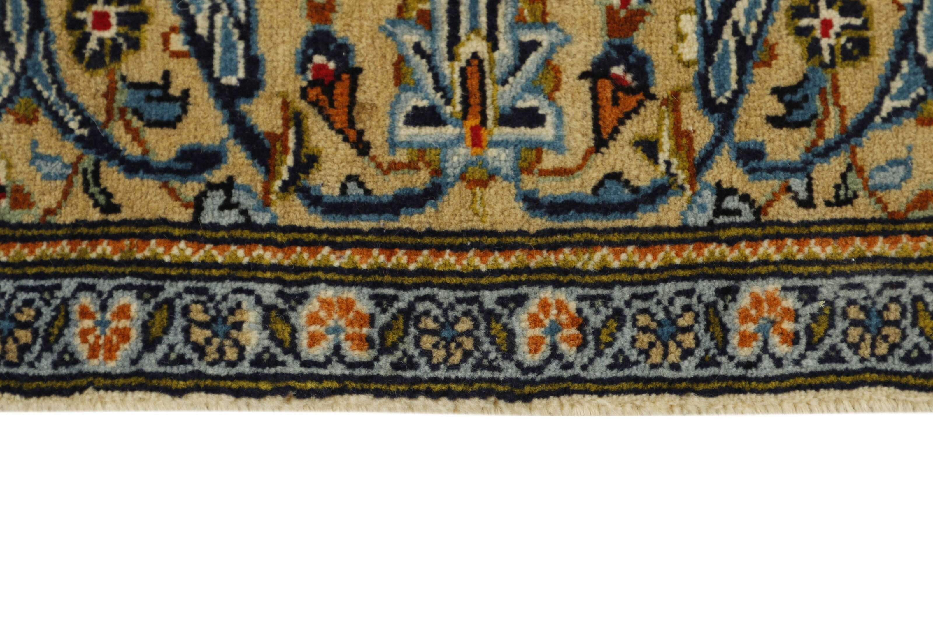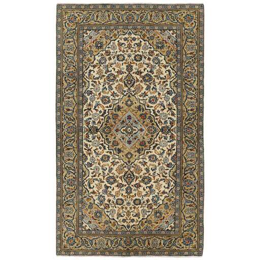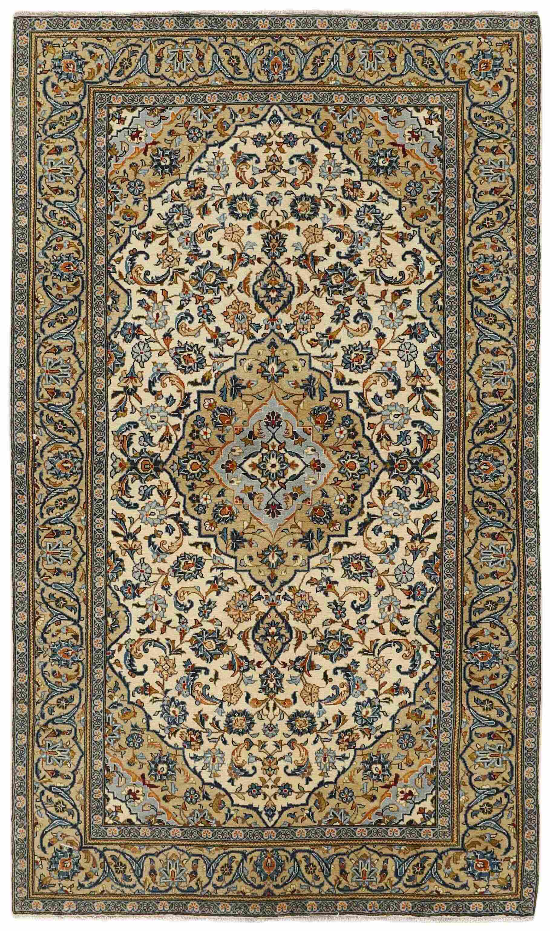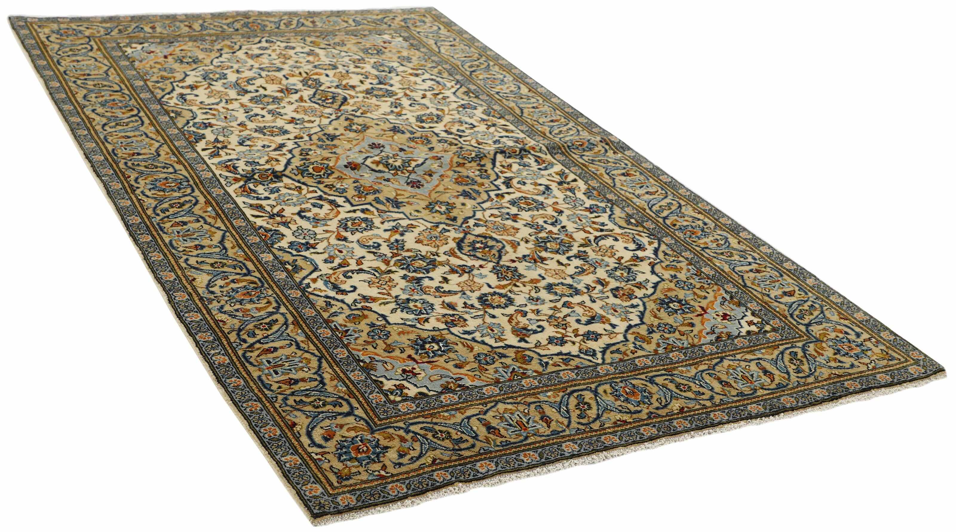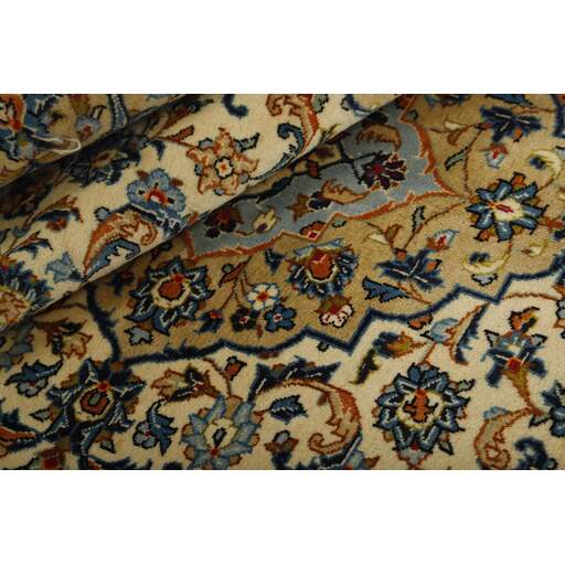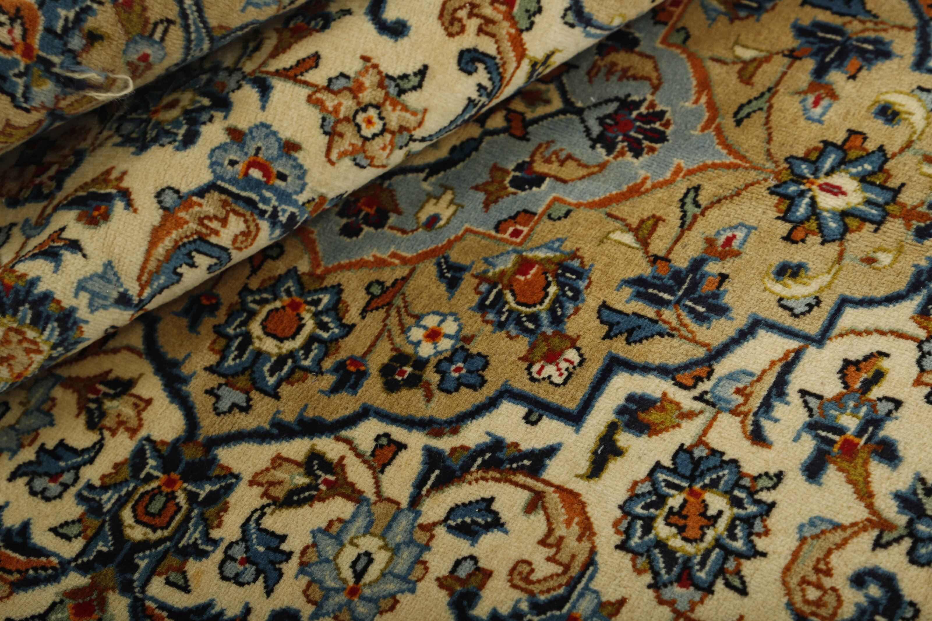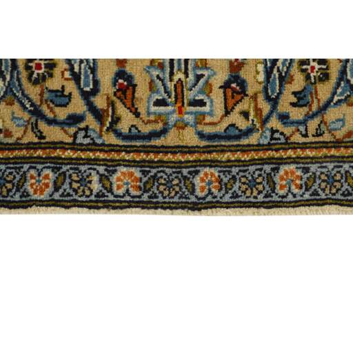 Keshan a toujours été célèbre pour son artisanat. Les villages se situent sur la route principale entre Ghom et Ispahan, dans le centre de l'Iran. À l'est, la région borde le plus grand désert d'Iran. Malgré le déclin de cet artisanat particulier au cours du XXe siècle, de nombreux tapis Keshan magnifiques sont toujours fabriqués conformément aux traditions des anciens maîtres, par exemple décorés de magnifiques motifs en médaillon ou de tapisseries représentant des motifs humains et animaux. Les motifs sont le plus souvent tissés autour d'un médaillon au centre du tapis, dont certains se répètent dans les coins. Les autres champs sont densément décorés de fleurs et de vignes réalistes. La bordure principale présente souvent le motif « Herati » (une feuille arquée), tandis que les bordures secondaires présentent des rosettes. Le rouge brique et le bleu foncé sont les couleurs de base les plus courantes. Keshan est une ville d'environ 300 000 habitants, située dans la province d'Ispahan, dans le centre de l'Iran. Elle est plutôt basse et il fait très chaud en été. Traditionnellement, les gens ont cherché à remédier à ce problème en construisant les maisons dans le sol. Keshan produit des tapis en laine et en soie. Les premiers ont une chaîne et une trame en coton, la trame étant bleue. Plusieurs qualités sont produites, mais la plupart des tapis Keshan sont très finement noués et entièrement couvrants. La forme d'un médaillon Keshan est assez particulière ; elle est faite d'une alternance de lignes courbes et d'angles droits. Les couleurs les plus courantes sont un champ rouge et un médaillon bleu, avec des détails secondaires dans d'autres couleurs. Les garnitures d'un tapis Keshan sont également spéciales ; la garniture principale est normalement entourée de rayures qui forment un motif géométrique, généralement de petits triangles bleus et rouges. Les tapis Keshan existent dans toutes les tailles. La ville de Natanez, au sud-est du pays, a donné son nom à des tapis d'image réalisés avec le même nouage que les Keshan.