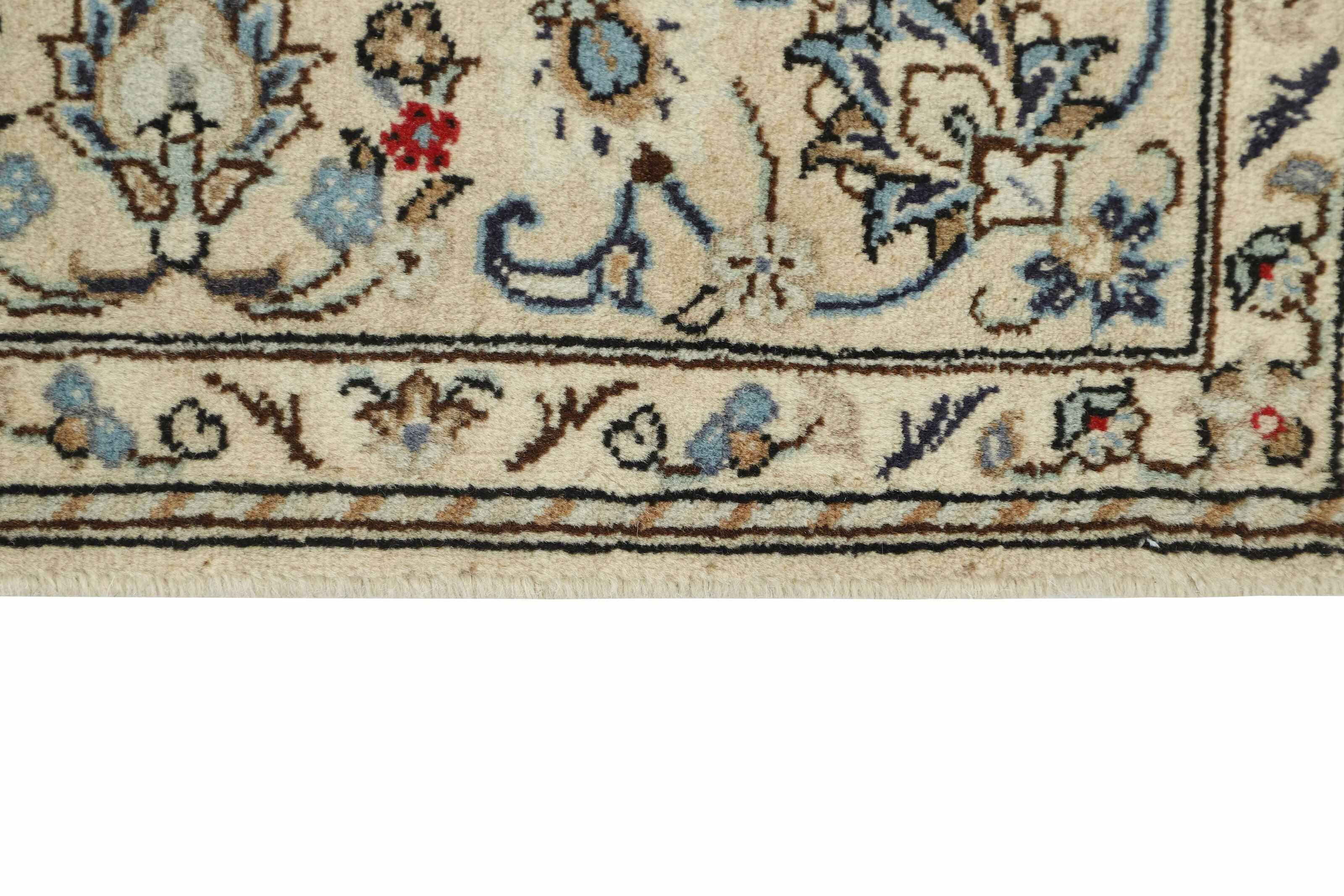 Keshan a toujours été célèbre pour son artisanat. Les villages se situent sur la route principale entre Ghom et Ispahan, dans le centre de l'Iran. À l'est, la région borde le plus grand désert d'Iran. Malgré le déclin de cet artisanat particulier au cours du XXe siècle, de nombreux tapis Keshan magnifiques sont toujours fabriqués conformément aux traditions des anciens maîtres, par exemple décorés de magnifiques motifs en médaillon ou de tapisseries représentant des motifs humains et animaux. Les motifs sont le plus souvent tissés autour d'un médaillon au centre du tapis, dont certains se répètent dans les coins. Les autres champs sont densément décorés de fleurs et de vignes réalistes. La bordure principale présente souvent le motif « Herati » (une feuille arquée), tandis que les bordures secondaires présentent des rosettes. Le rouge brique et le bleu foncé sont les couleurs de base les plus courantes. Keshan est une ville d'environ 300 000 habitants, située dans la province d'Ispahan, dans le centre de l'Iran. Elle est plutôt basse et il fait très chaud en été. Traditionnellement, les gens ont cherché à remédier à ce problème en construisant les maisons dans le sol. Keshan produit des tapis en laine et en soie. Les premiers ont une chaîne et une trame en coton, la trame étant bleue. Plusieurs qualités sont produites, mais la plupart des tapis Keshan sont très finement noués et entièrement couvrants. La forme d'un médaillon Keshan est assez particulière ; elle est faite d'une alternance de lignes courbes et d'angles droits. Les couleurs les plus courantes sont un champ rouge et un médaillon bleu, avec des détails secondaires dans d'autres couleurs. Les garnitures d'un tapis Keshan sont également spéciales ; la garniture principale est normalement entourée de rayures qui forment un motif géométrique, généralement de petits triangles bleus et rouges. Les tapis Keshan existent dans toutes les tailles. La ville de Natanez, au sud-est du pays, a donné son nom à des tapis d'image réalisés avec le même nouage que les Keshan.