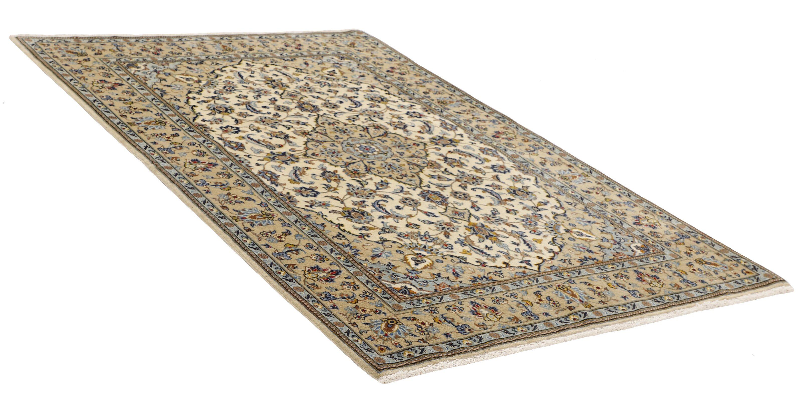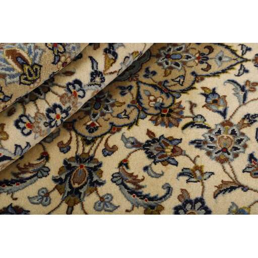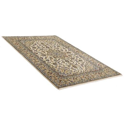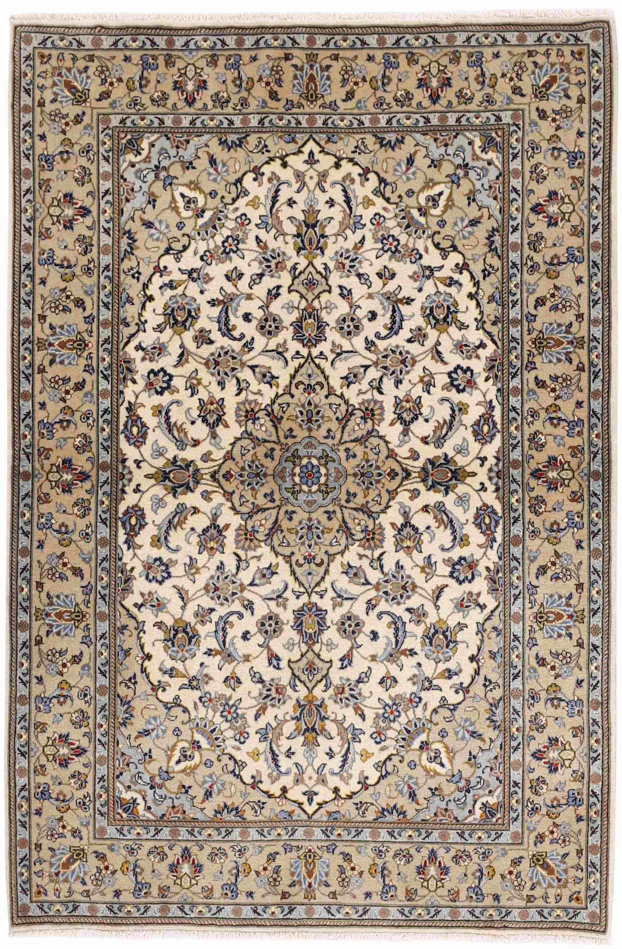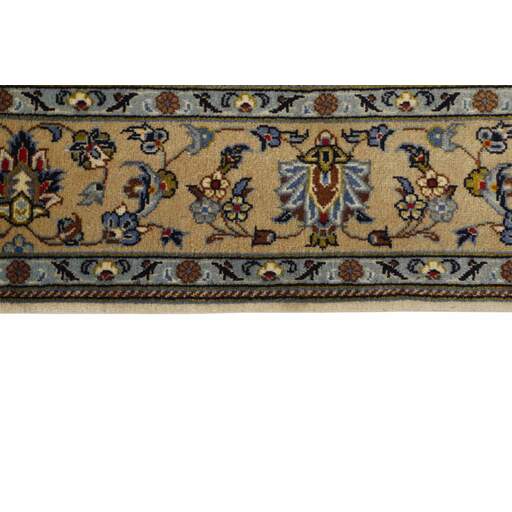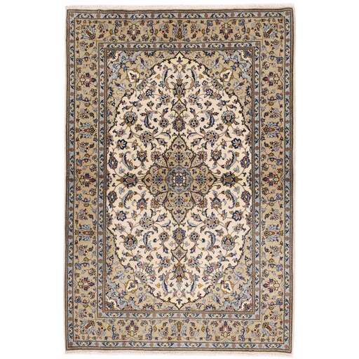 Keshan a toujours été célèbre pour son artisanat. Les villages se situent sur la route principale entre Ghom et Ispahan, dans le centre de l'Iran. À l'est, la région borde le plus grand désert d'Iran. Malgré le déclin de cet artisanat particulier au cours du XXe siècle, de nombreux tapis Keshan magnifiques sont toujours fabriqués conformément aux traditions des anciens maîtres, par exemple décorés de magnifiques motifs en médaillon ou de tapisseries représentant des motifs humains et animaux. Les motifs sont le plus souvent tissés autour d'un médaillon au centre du tapis, dont certains se répètent dans les coins. Les autres champs sont densément décorés de fleurs et de vignes réalistes. La bordure principale présente souvent le motif « Herati » (une feuille arquée), tandis que les bordures secondaires présentent des rosettes. Le rouge brique et le bleu foncé sont les couleurs de base les plus courantes. Keshan est une ville d'environ 300 000 habitants, située dans la province d'Ispahan, dans le centre de l'Iran. Elle est plutôt basse et il fait très chaud en été. Traditionnellement, les gens ont cherché à remédier à ce problème en construisant les maisons dans le sol. Keshan produit des tapis en laine et en soie. Les premiers ont une chaîne et une trame en coton, la trame étant bleue. Plusieurs qualités sont produites, mais la plupart des tapis Keshan sont très finement noués et entièrement couvrants. La forme d'un médaillon Keshan est assez particulière ; elle est faite d'une alternance de lignes courbes et d'angles droits. Les couleurs les plus courantes sont un champ rouge et un médaillon bleu, avec des détails secondaires dans d'autres couleurs. Les garnitures d'un tapis Keshan sont également spéciales ; la garniture principale est normalement entourée de rayures qui forment un motif géométrique, généralement de petits triangles bleus et rouges. Les tapis Keshan existent dans toutes les tailles. La ville de Natanez, au sud-est du pays, a donné son nom à des tapis d'image réalisés avec le même nouage que les Keshan.