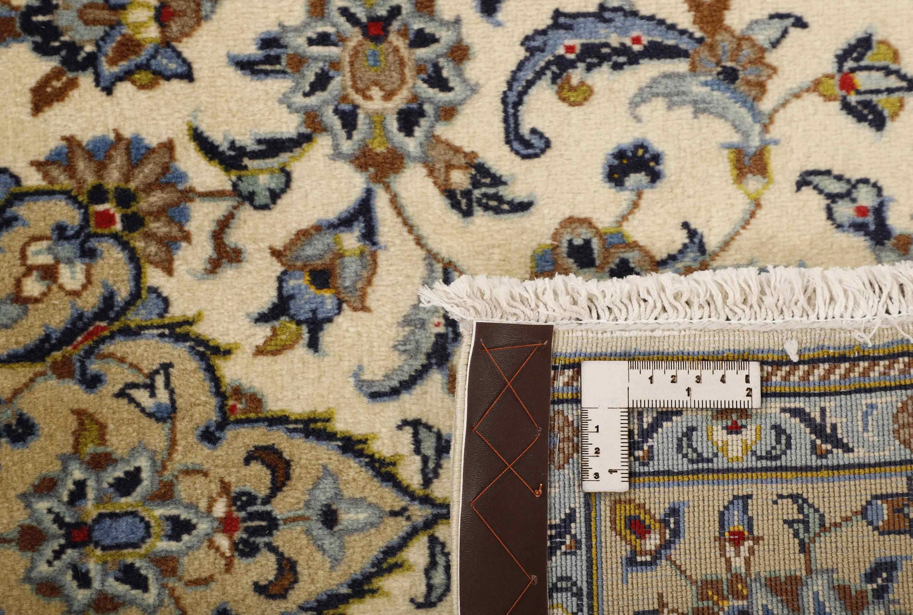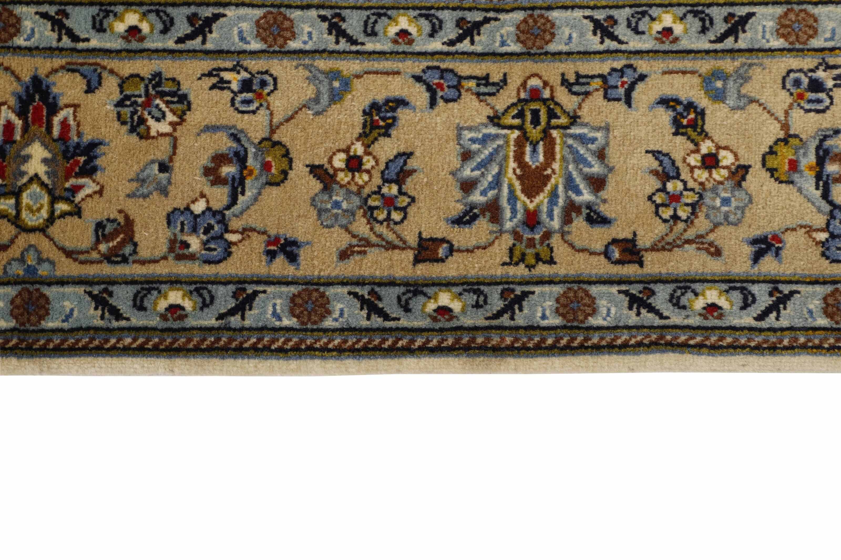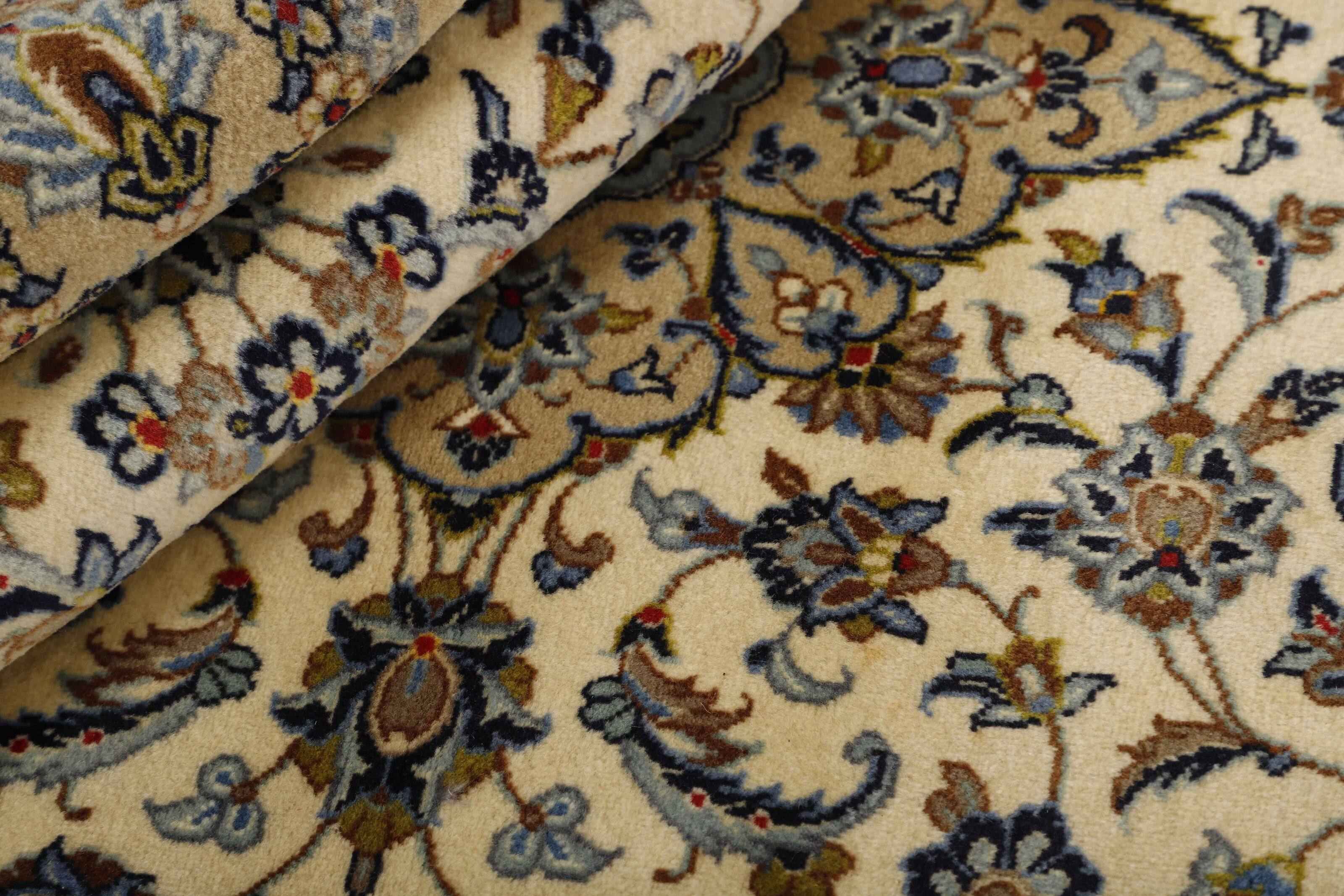 Keshan a toujours été célèbre pour son artisanat. Les villages se situent sur la route principale entre Ghom et Ispahan, dans le centre de l'Iran. À l'est, la région borde le plus grand désert d'Iran. Malgré le déclin de cet artisanat particulier au cours du XXe siècle, de nombreux tapis Keshan magnifiques sont toujours fabriqués conformément aux traditions des anciens maîtres, par exemple décorés de magnifiques motifs en médaillon ou de tapisseries représentant des motifs humains et animaux. Les motifs sont le plus souvent tissés autour d'un médaillon au centre du tapis, dont certains se répètent dans les coins. Les autres champs sont densément décorés de fleurs et de vignes réalistes. La bordure principale présente souvent le motif « Herati » (une feuille arquée), tandis que les bordures secondaires présentent des rosettes. Le rouge brique et le bleu foncé sont les couleurs de base les plus courantes. Keshan est une ville d'environ 300 000 habitants, située dans la province d'Ispahan, dans le centre de l'Iran. Elle est plutôt basse et il fait très chaud en été. Traditionnellement, les gens ont cherché à remédier à ce problème en construisant les maisons dans le sol. Keshan produit des tapis en laine et en soie. Les premiers ont une chaîne et une trame en coton, la trame étant bleue. Plusieurs qualités sont produites, mais la plupart des tapis Keshan sont très finement noués et entièrement couvrants. La forme d'un médaillon Keshan est assez particulière ; elle est faite d'une alternance de lignes courbes et d'angles droits. Les couleurs les plus courantes sont un champ rouge et un médaillon bleu, avec des détails secondaires dans d'autres couleurs. Les garnitures d'un tapis Keshan sont également spéciales ; la garniture principale est normalement entourée de rayures qui forment un motif géométrique, généralement de petits triangles bleus et rouges. Les tapis Keshan existent dans toutes les tailles. La ville de Natanez, au sud-est du pays, a donné son nom à des tapis d'image réalisés avec le même nouage que les Keshan.