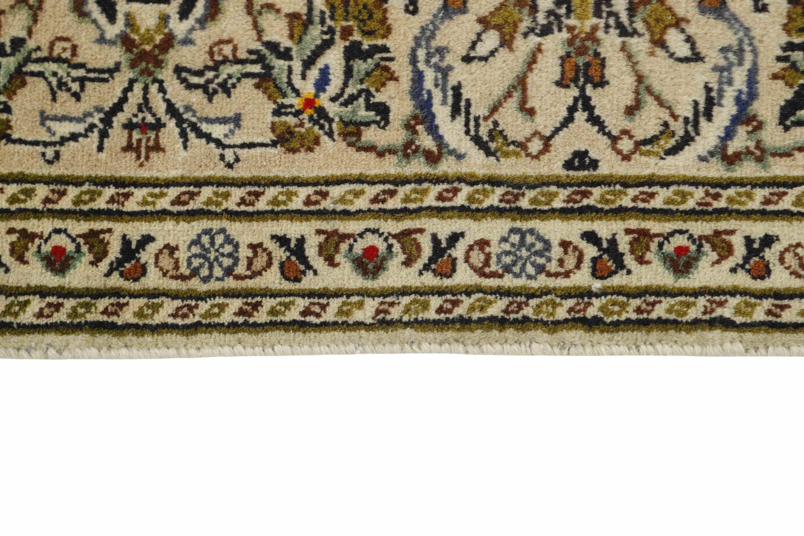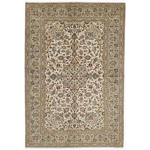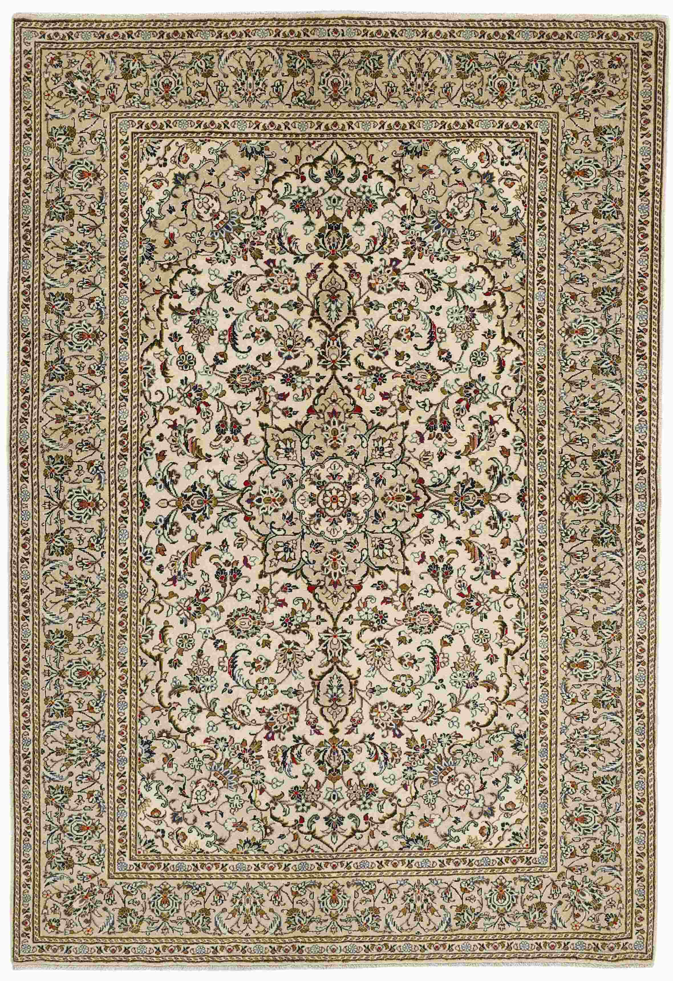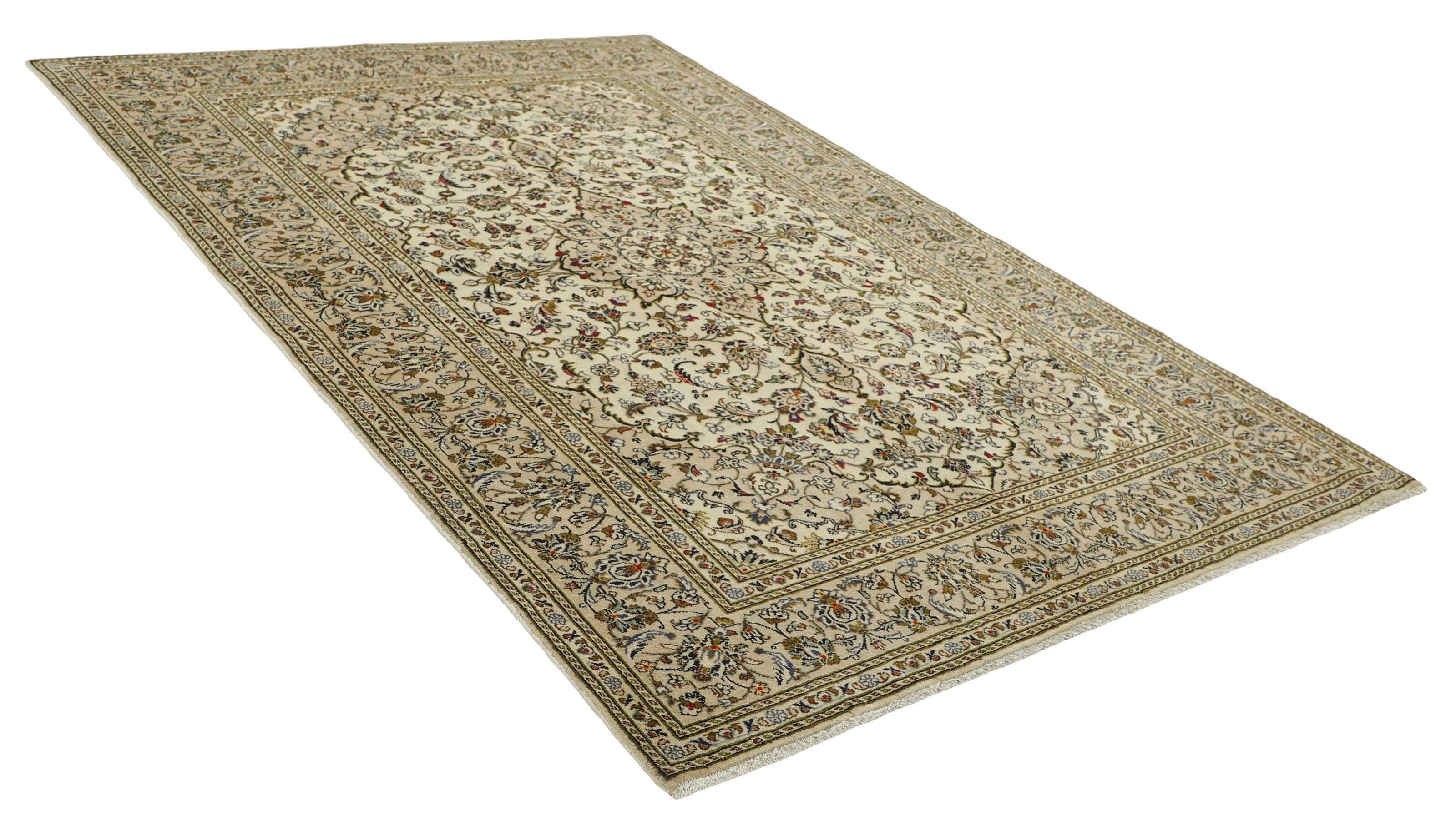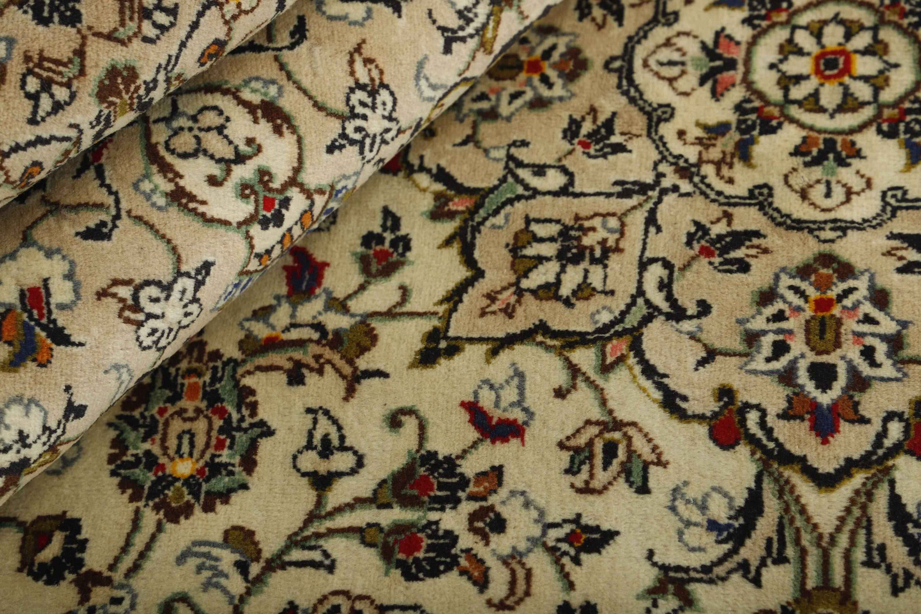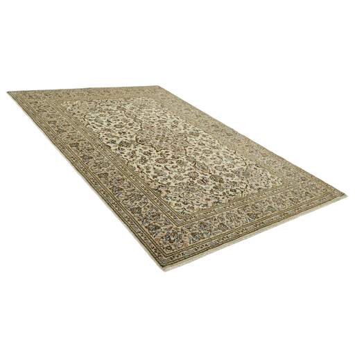 Keshan a toujours été célèbre pour son artisanat. Les villages se situent sur la route principale entre Ghom et Ispahan, dans le centre de l'Iran. À l'est, la région borde le plus grand désert d'Iran. Malgré le déclin de cet artisanat particulier au cours du XXe siècle, de nombreux tapis Keshan magnifiques sont toujours fabriqués conformément aux traditions des anciens maîtres, par exemple décorés de magnifiques motifs en médaillon ou de tapisseries représentant des motifs humains et animaux. Les motifs sont le plus souvent tissés autour d'un médaillon au centre du tapis, dont certains se répètent dans les coins. Les autres champs sont densément décorés de fleurs et de vignes réalistes. La bordure principale présente souvent le motif « Herati » (une feuille arquée), tandis que les bordures secondaires présentent des rosettes. Le rouge brique et le bleu foncé sont les couleurs de base les plus courantes. Keshan est une ville d'environ 300 000 habitants, située dans la province d'Ispahan, dans le centre de l'Iran. Elle est plutôt basse et il fait très chaud en été. Traditionnellement, les gens ont cherché à remédier à ce problème en construisant les maisons dans le sol. Keshan produit des tapis en laine et en soie. Les premiers ont une chaîne et une trame en coton, la trame étant bleue. Plusieurs qualités sont produites, mais la plupart des tapis Keshan sont très finement noués et entièrement couvrants. La forme d'un médaillon Keshan est assez particulière ; elle est faite d'une alternance de lignes courbes et d'angles droits. Les couleurs les plus courantes sont un champ rouge et un médaillon bleu, avec des détails secondaires dans d'autres couleurs. Les garnitures d'un tapis Keshan sont également spéciales ; la garniture principale est normalement entourée de rayures qui forment un motif géométrique, généralement de petits triangles bleus et rouges. Les tapis Keshan existent dans toutes les tailles. La ville de Natanez, au sud-est du pays, a donné son nom à des tapis d'image réalisés avec le même nouage que les Keshan.