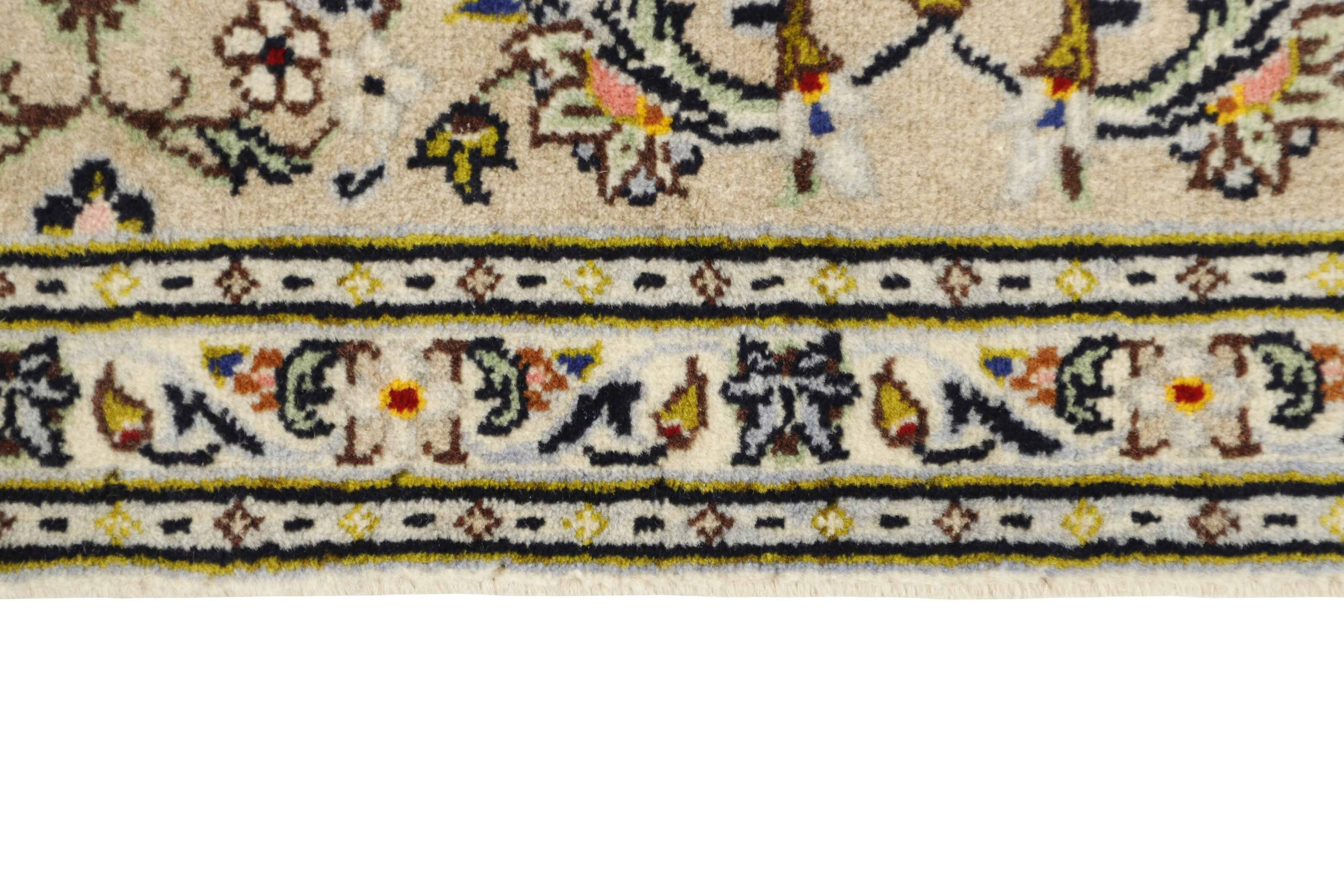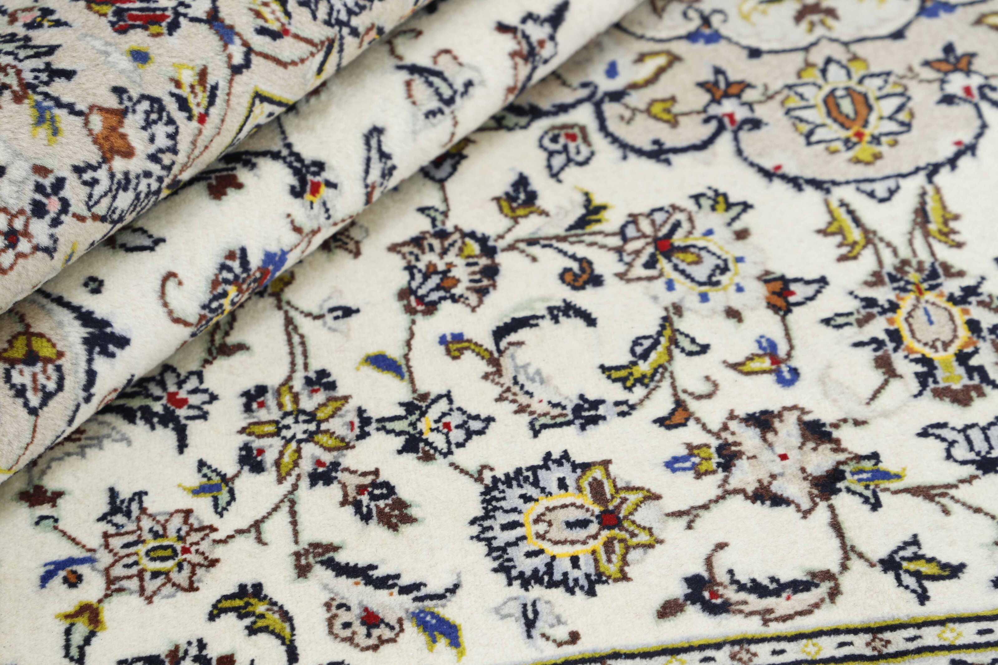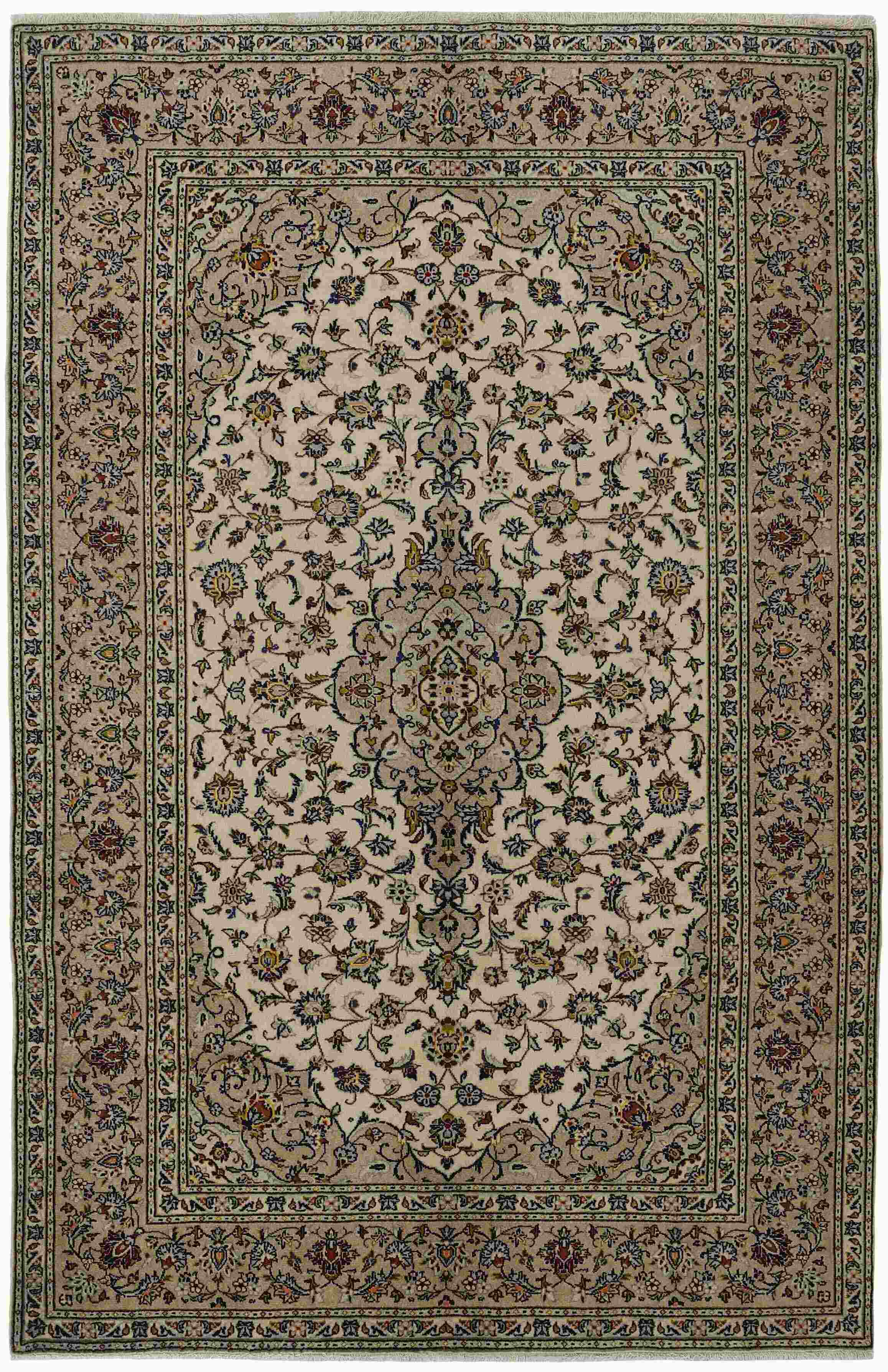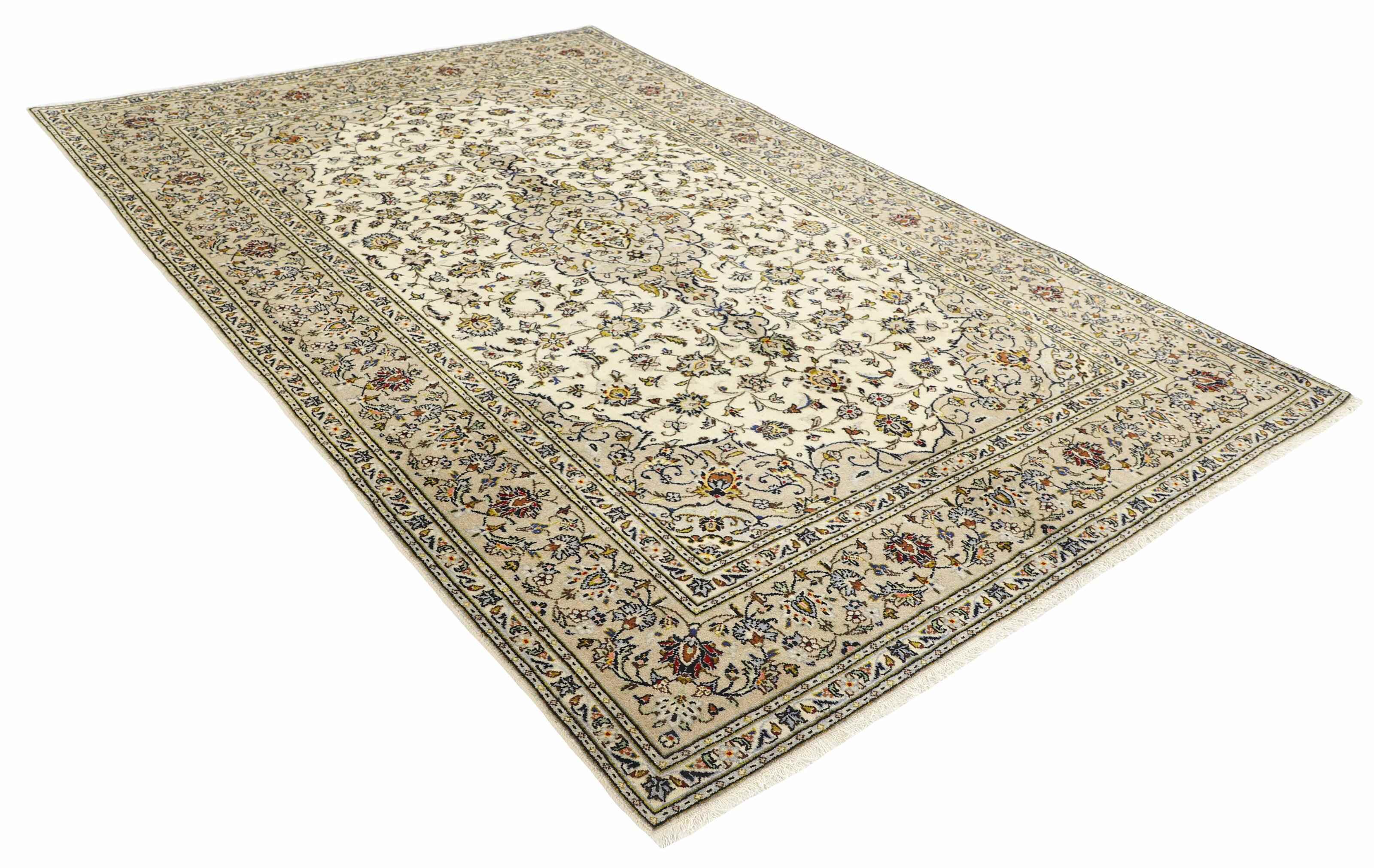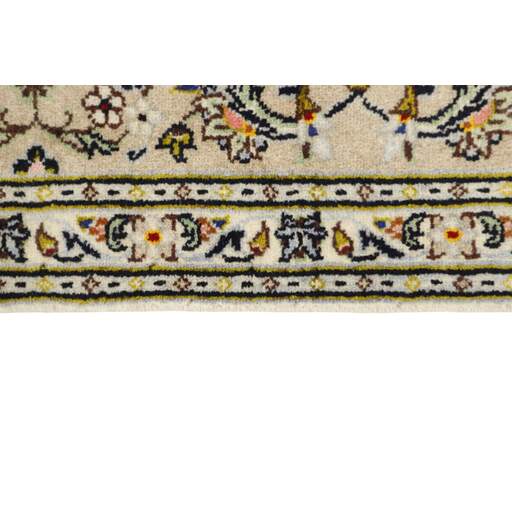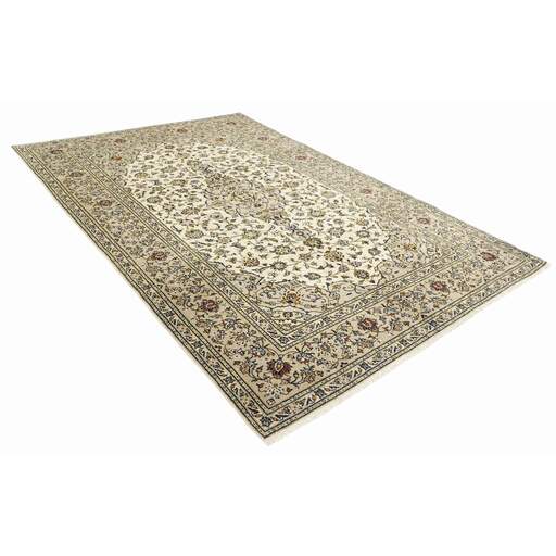 Keshan a toujours été célèbre pour son artisanat. Les villages se situent sur la route principale entre Ghom et Ispahan, dans le centre de l'Iran. À l'est, la région borde le plus grand désert d'Iran. Malgré le déclin de cet artisanat particulier au cours du XXe siècle, de nombreux tapis Keshan magnifiques sont toujours fabriqués conformément aux traditions des anciens maîtres, par exemple décorés de magnifiques motifs en médaillon ou de tapisseries représentant des motifs humains et animaux. Les motifs sont le plus souvent tissés autour d'un médaillon au centre du tapis, dont certains se répètent dans les coins. Les autres champs sont densément décorés de fleurs et de vignes réalistes. La bordure principale présente souvent le motif « Herati » (une feuille arquée), tandis que les bordures secondaires présentent des rosettes. Le rouge brique et le bleu foncé sont les couleurs de base les plus courantes. Keshan est une ville d'environ 300 000 habitants, située dans la province d'Ispahan, dans le centre de l'Iran. Elle est plutôt basse et il fait très chaud en été. Traditionnellement, les gens ont cherché à remédier à ce problème en construisant les maisons dans le sol. Keshan produit des tapis en laine et en soie. Les premiers ont une chaîne et une trame en coton, la trame étant bleue. Plusieurs qualités sont produites, mais la plupart des tapis Keshan sont très finement noués et entièrement couvrants. La forme d'un médaillon Keshan est assez particulière ; elle est faite d'une alternance de lignes courbes et d'angles droits. Les couleurs les plus courantes sont un champ rouge et un médaillon bleu, avec des détails secondaires dans d'autres couleurs. Les garnitures d'un tapis Keshan sont également spéciales ; la garniture principale est normalement entourée de rayures qui forment un motif géométrique, généralement de petits triangles bleus et rouges. Les tapis Keshan existent dans toutes les tailles. La ville de Natanez, au sud-est du pays, a donné son nom à des tapis d'image réalisés avec le même nouage que les Keshan.