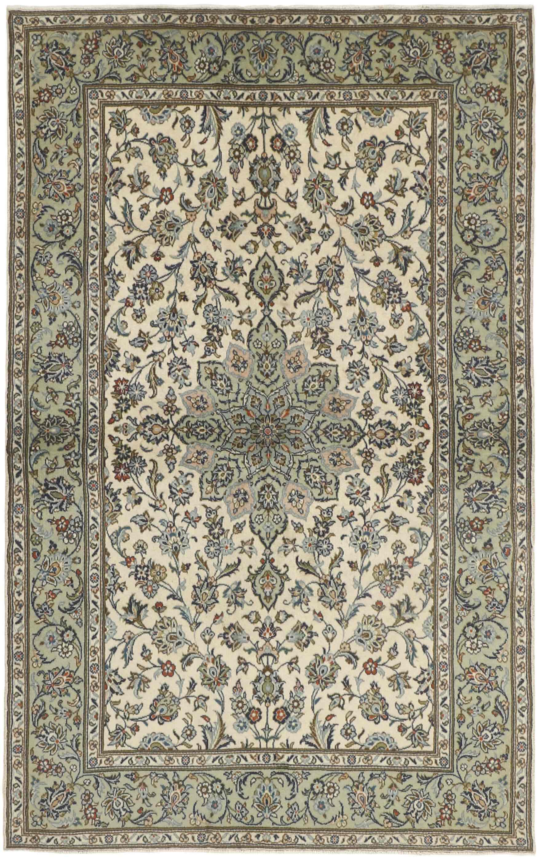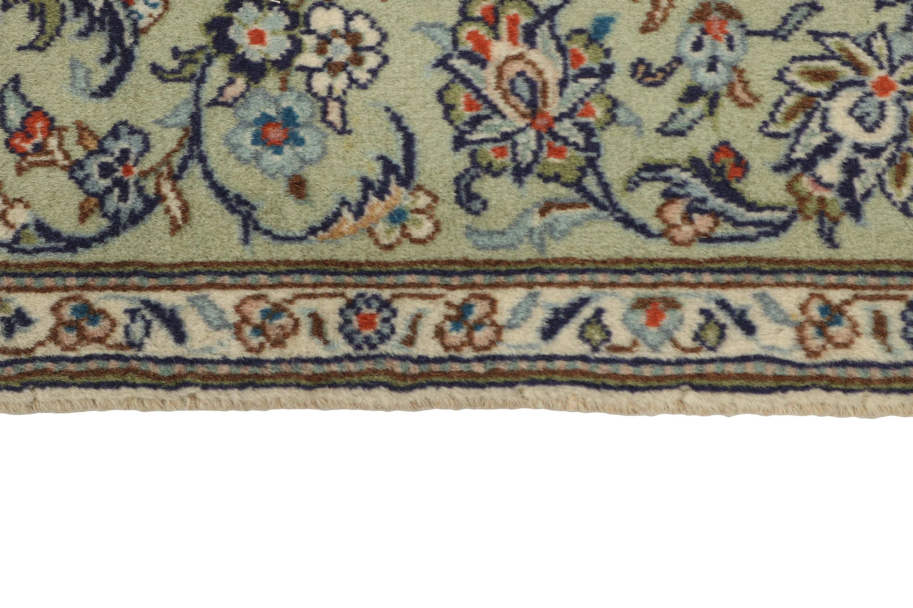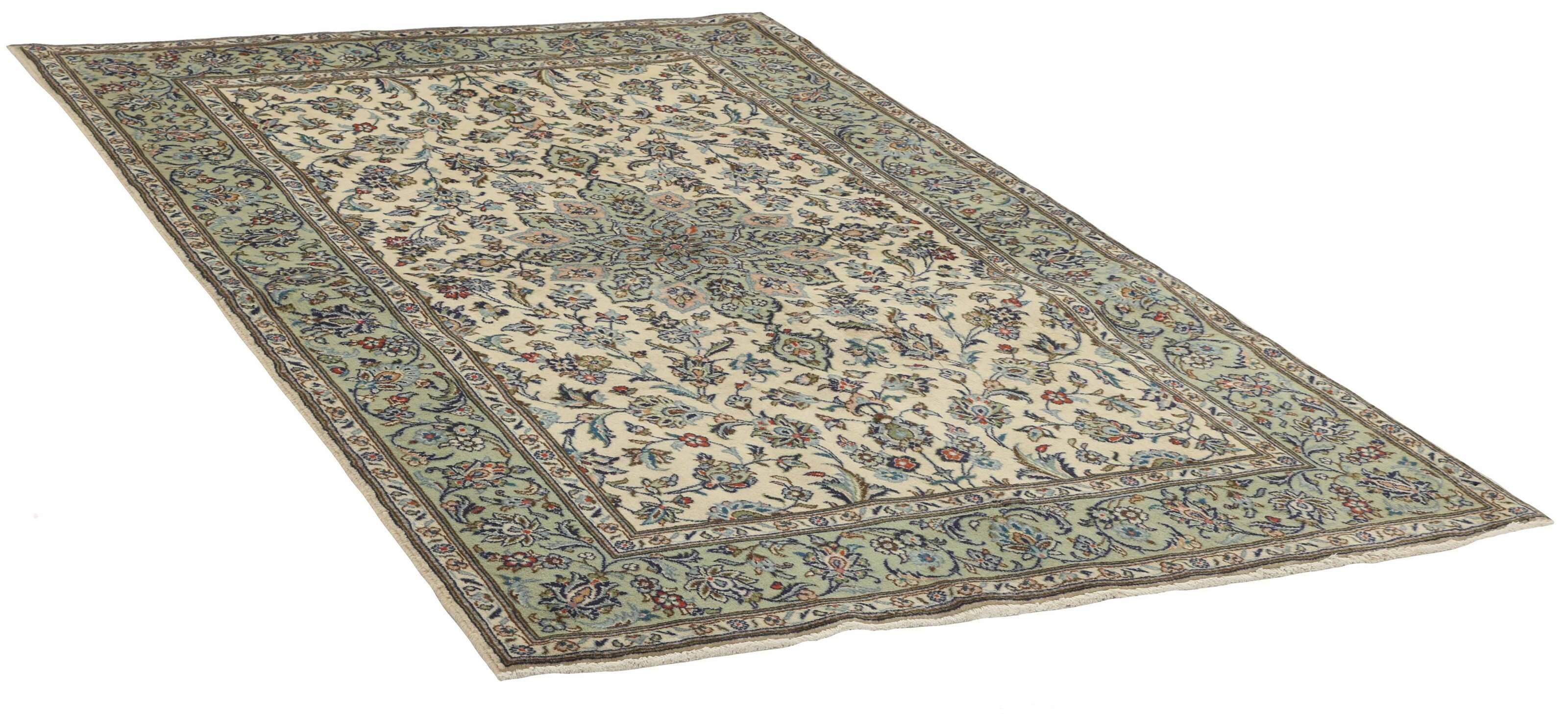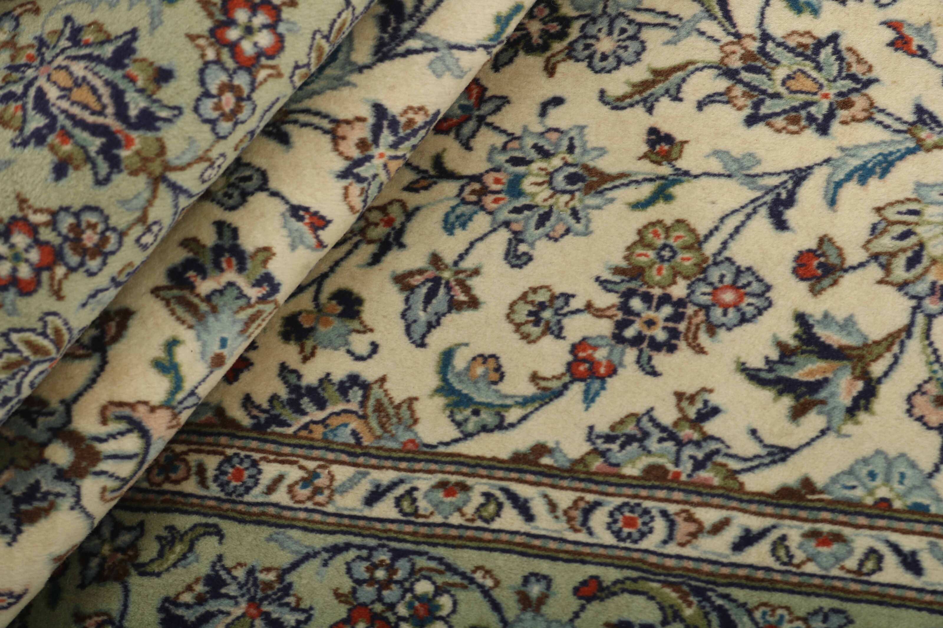 Keshan a toujours été célèbre pour son artisanat. Les villages se situent sur la route principale entre Ghom et Ispahan, dans le centre de l'Iran. À l'est, la région borde le plus grand désert d'Iran. Malgré le déclin de cet artisanat particulier au cours du XXe siècle, de nombreux tapis Keshan magnifiques sont toujours fabriqués conformément aux traditions des anciens maîtres, par exemple décorés de magnifiques motifs en médaillon ou de tapisseries représentant des motifs humains et animaux. Les motifs sont le plus souvent tissés autour d'un médaillon au centre du tapis, dont certains se répètent dans les coins. Les autres champs sont densément décorés de fleurs et de vignes réalistes. La bordure principale présente souvent le motif « Herati » (une feuille arquée), tandis que les bordures secondaires présentent des rosettes. Le rouge brique et le bleu foncé sont les couleurs de base les plus courantes. Keshan est une ville d'environ 300 000 habitants, située dans la province d'Ispahan, dans le centre de l'Iran. Elle est plutôt basse et il fait très chaud en été. Traditionnellement, les gens ont cherché à remédier à ce problème en construisant les maisons dans le sol. Keshan produit des tapis en laine et en soie. Les premiers ont une chaîne et une trame en coton, la trame étant bleue. Plusieurs qualités sont produites, mais la plupart des tapis Keshan sont très finement noués et entièrement couvrants. La forme d'un médaillon Keshan est assez particulière ; elle est faite d'une alternance de lignes courbes et d'angles droits. Les couleurs les plus courantes sont un champ rouge et un médaillon bleu, avec des détails secondaires dans d'autres couleurs. Les garnitures d'un tapis Keshan sont également spéciales ; la garniture principale est normalement entourée de rayures qui forment un motif géométrique, généralement de petits triangles bleus et rouges. Les tapis Keshan existent dans toutes les tailles. La ville de Natanez, au sud-est du pays, a donné son nom à des tapis d'image réalisés avec le même nouage que les Keshan.
