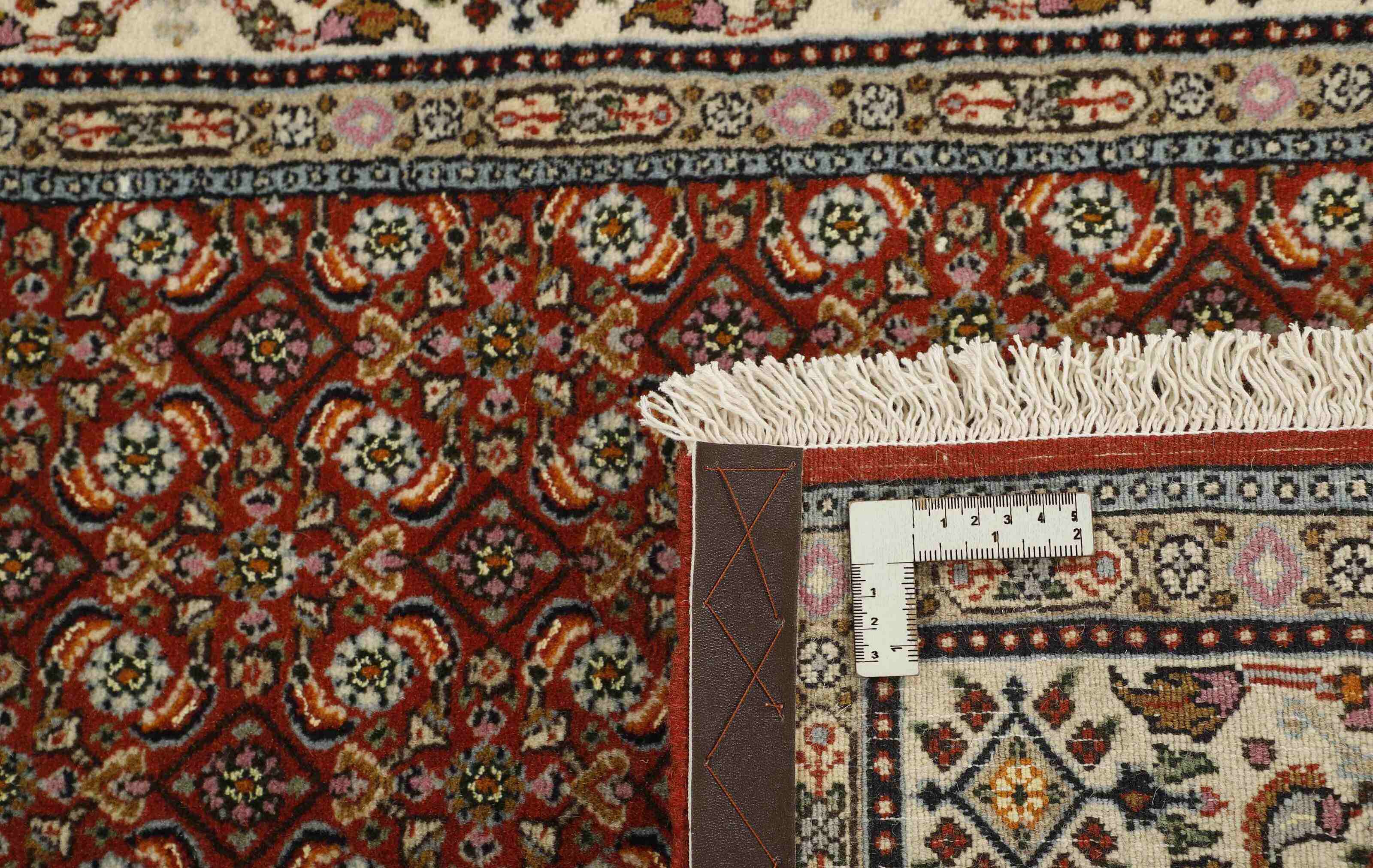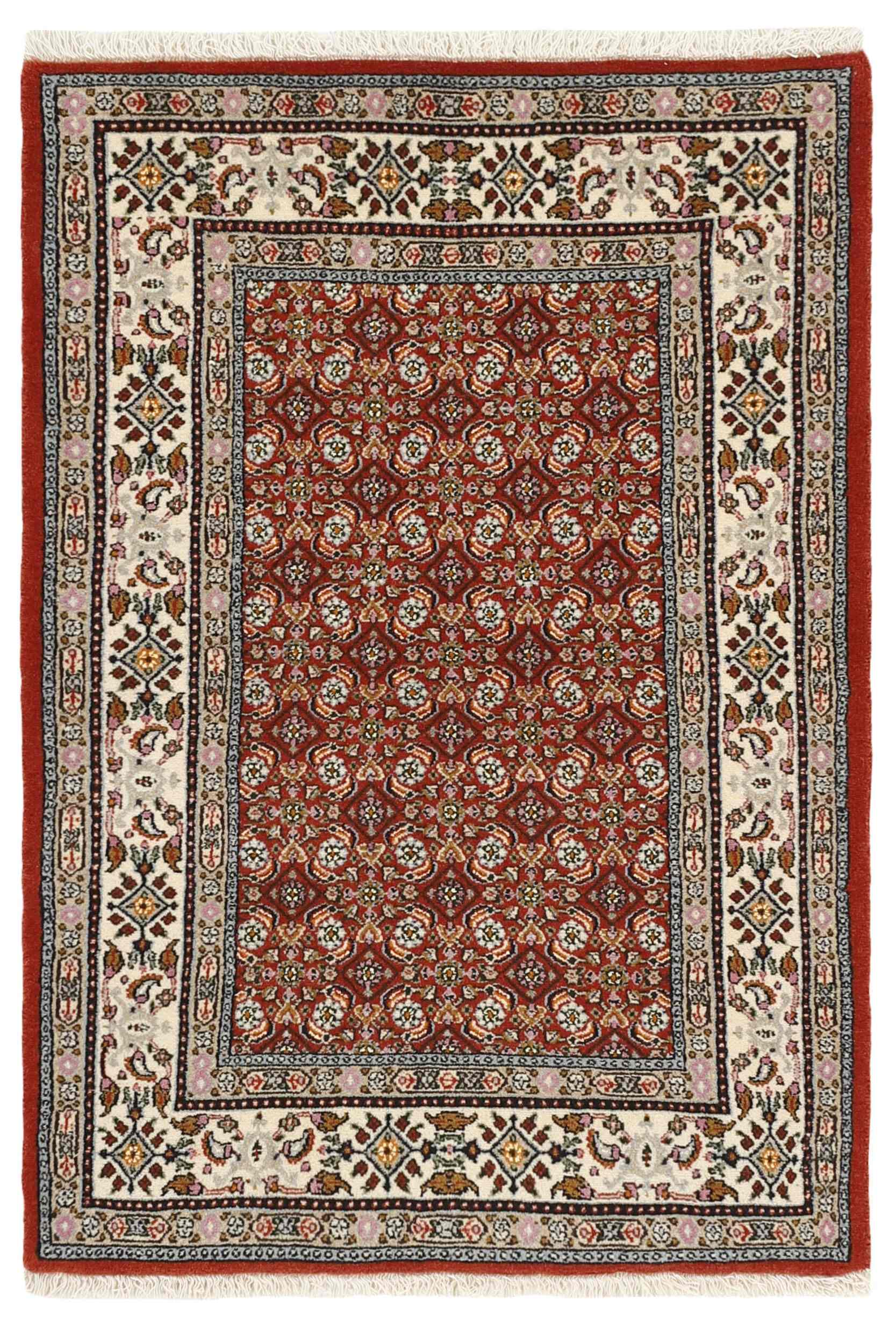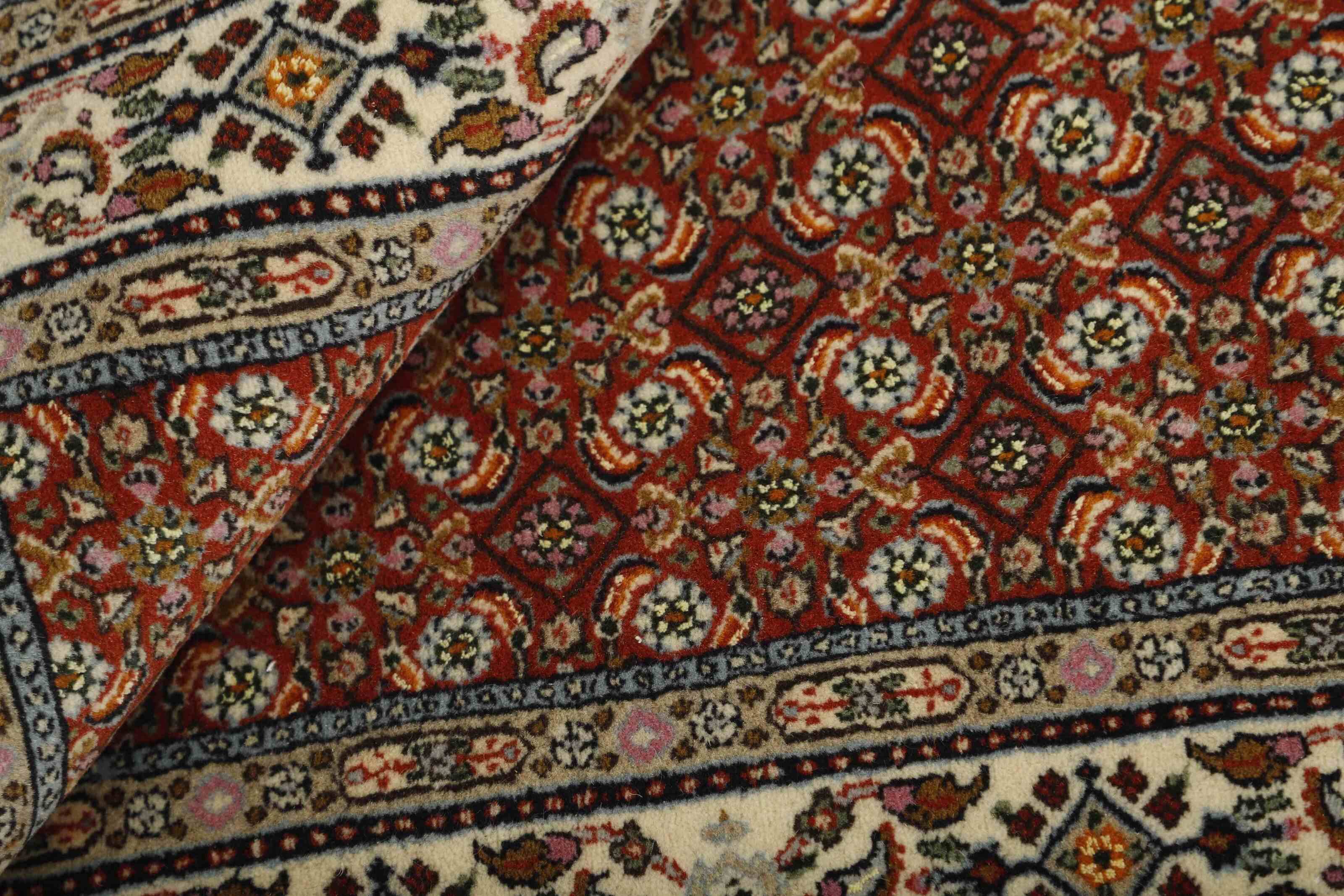 Moud est une petite ville au sud de Mashad, dans la province de Khorrasan. Les tapis de cette région se caractérisent par l'homogénéité de leurs motifs et de leur qualité. La chaîne et la trame sont en coton et le velours en laine. Les bordures sont une version de la bordure persane traditionnelle en tortue. Les tapis sont fabriqués dans toutes les tailles. Les tapis Moud sont souvent copiés en Inde, en raison de leur remarquable homogénéité. Les motifs caractéristiques de Moud sont parmi les plus uniformes, les plus réguliers et les plus facilement reconnaissables de la province de Khorrasan. Les Moud Mahi sont fabriqués dans des tons beige, rouge clair ou bleu, avec des motifs Mahi sur toute la surface ou avec un médaillon en forme d'étoile. Mahi signifie poisson et le motif Mahi est le motif le plus couramment utilisé dans les véritables tapis persans. En l'observant de près, vous pouvez voir un étang entouré de quatre poissons.