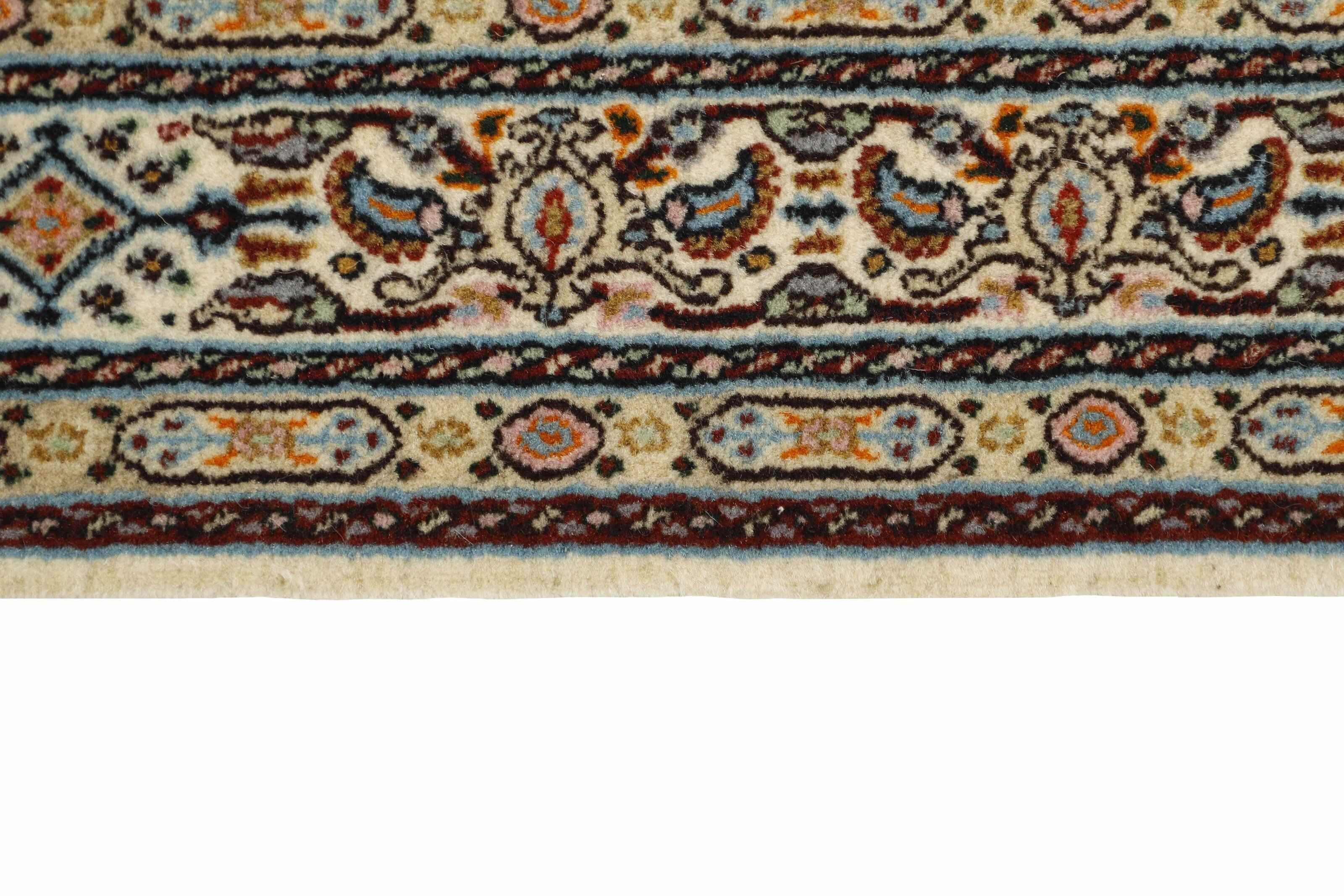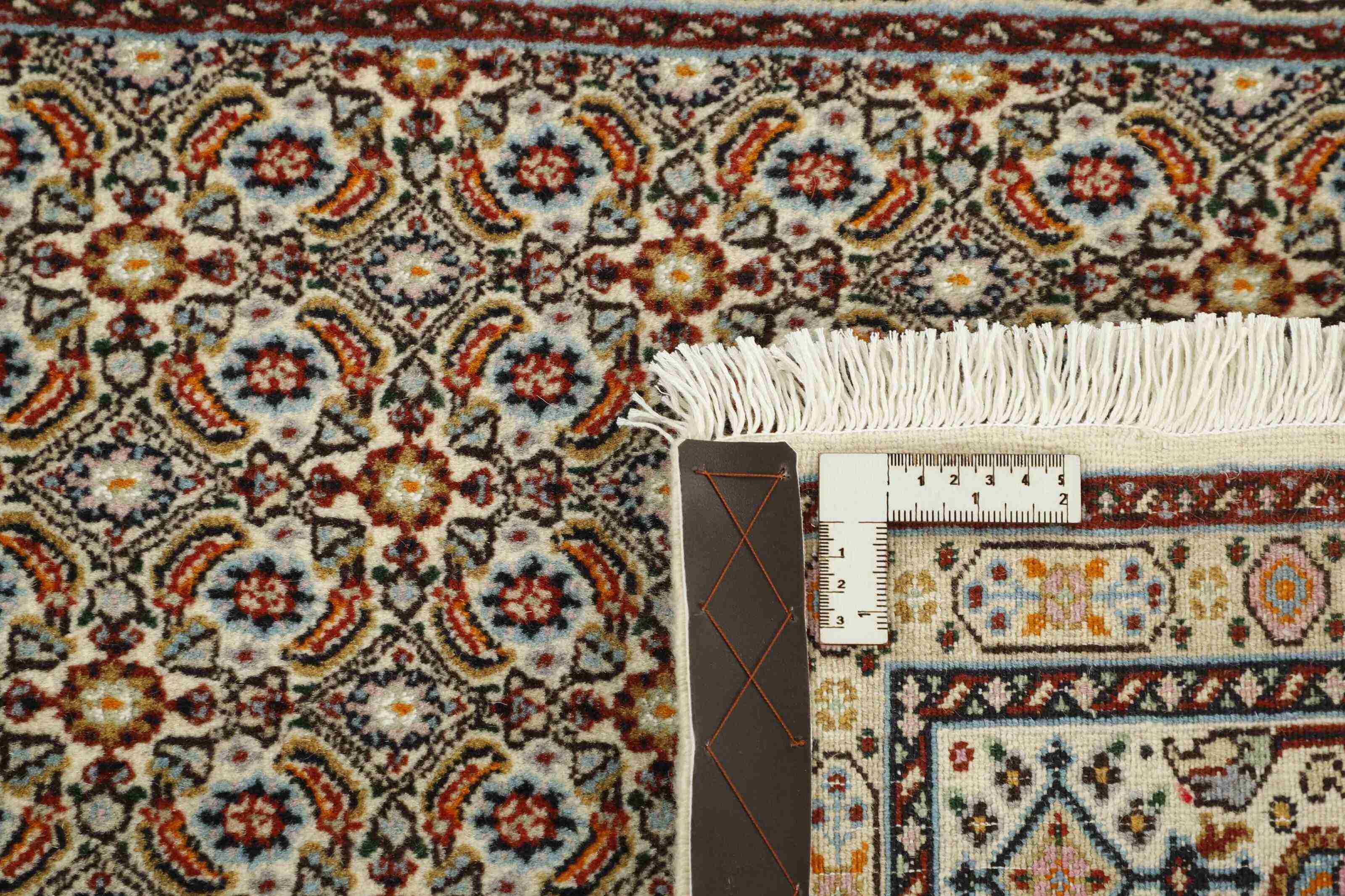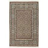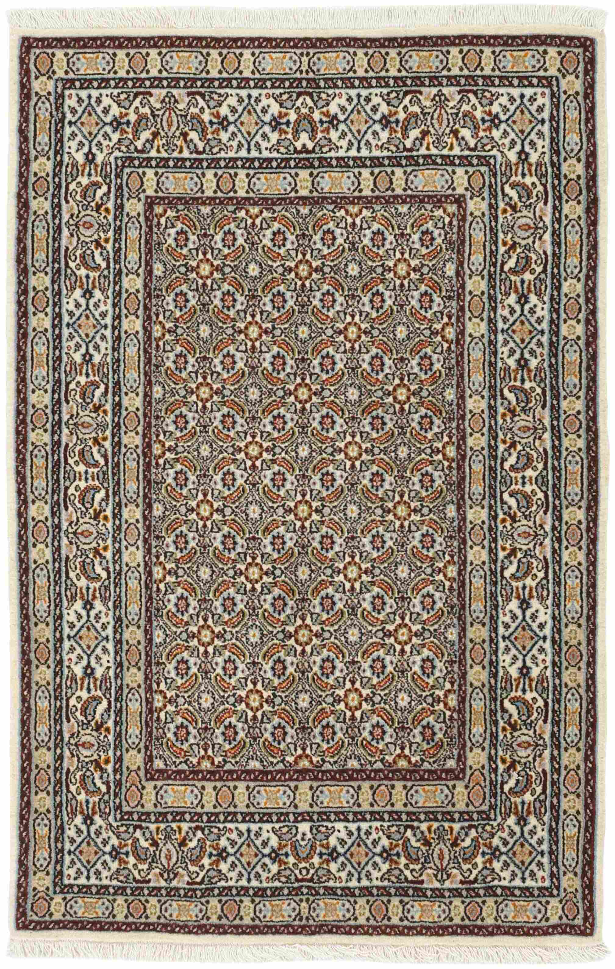 Moud est une petite ville au sud de Mashad, dans la province de Khorrasan. Les tapis de cette région se caractérisent par l'homogénéité de leurs motifs et de leur qualité. La chaîne et la trame sont en coton et le velours en laine. Les bordures sont une version de la bordure persane traditionnelle en tortue. Les tapis sont fabriqués dans toutes les tailles. Les tapis Moud sont souvent copiés en Inde, en raison de leur remarquable homogénéité. Les motifs caractéristiques de Moud sont parmi les plus uniformes, les plus réguliers et les plus facilement reconnaissables de la province de Khorrasan. Les Moud Mahi sont fabriqués dans des tons beige, rouge clair ou bleu, avec des motifs Mahi sur toute la surface ou avec un médaillon en forme d'étoile. Mahi signifie poisson et le motif Mahi est le motif le plus couramment utilisé dans les véritables tapis persans. En l'observant de près, vous pouvez voir un étang entouré de quatre poissons.