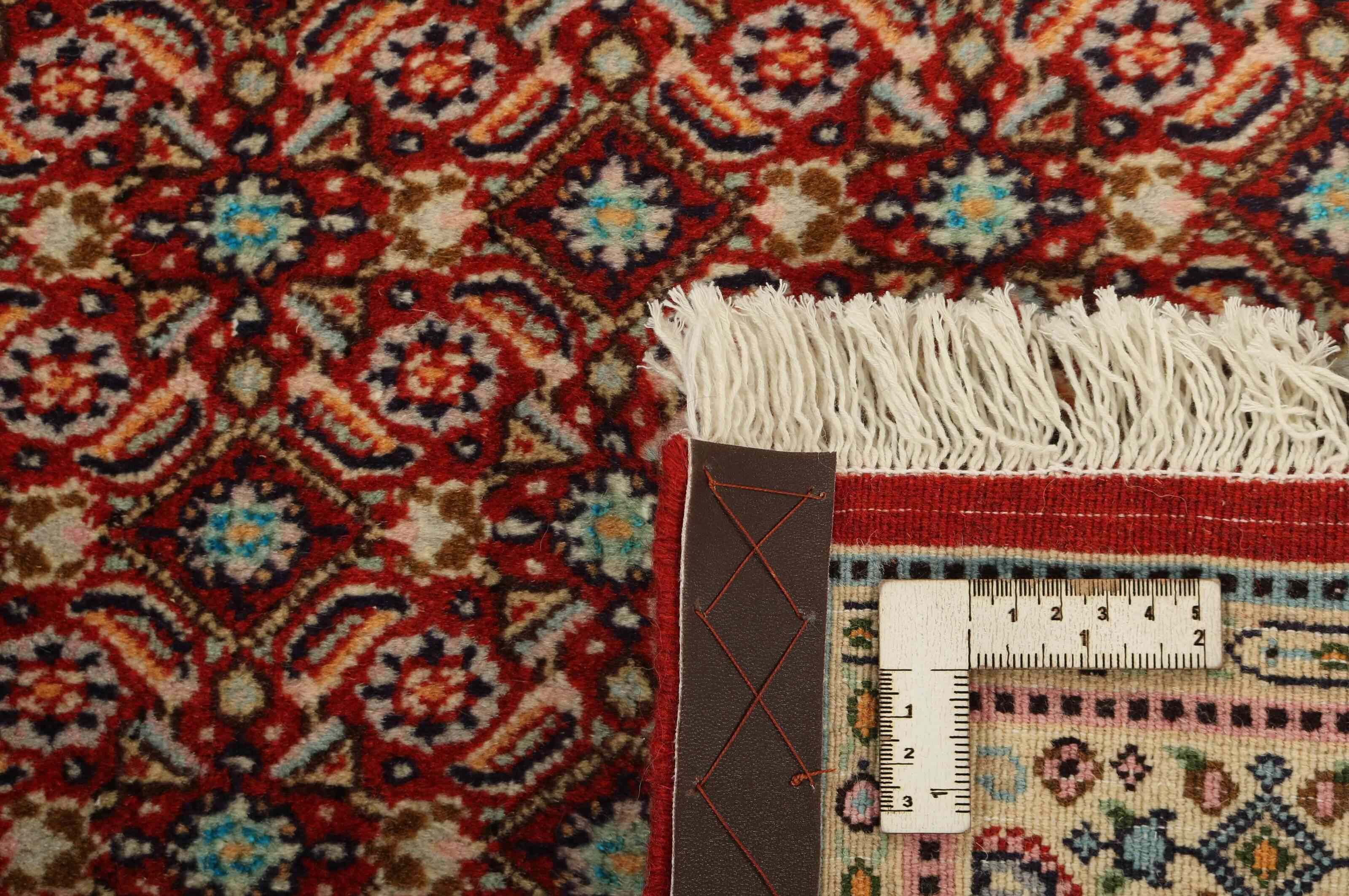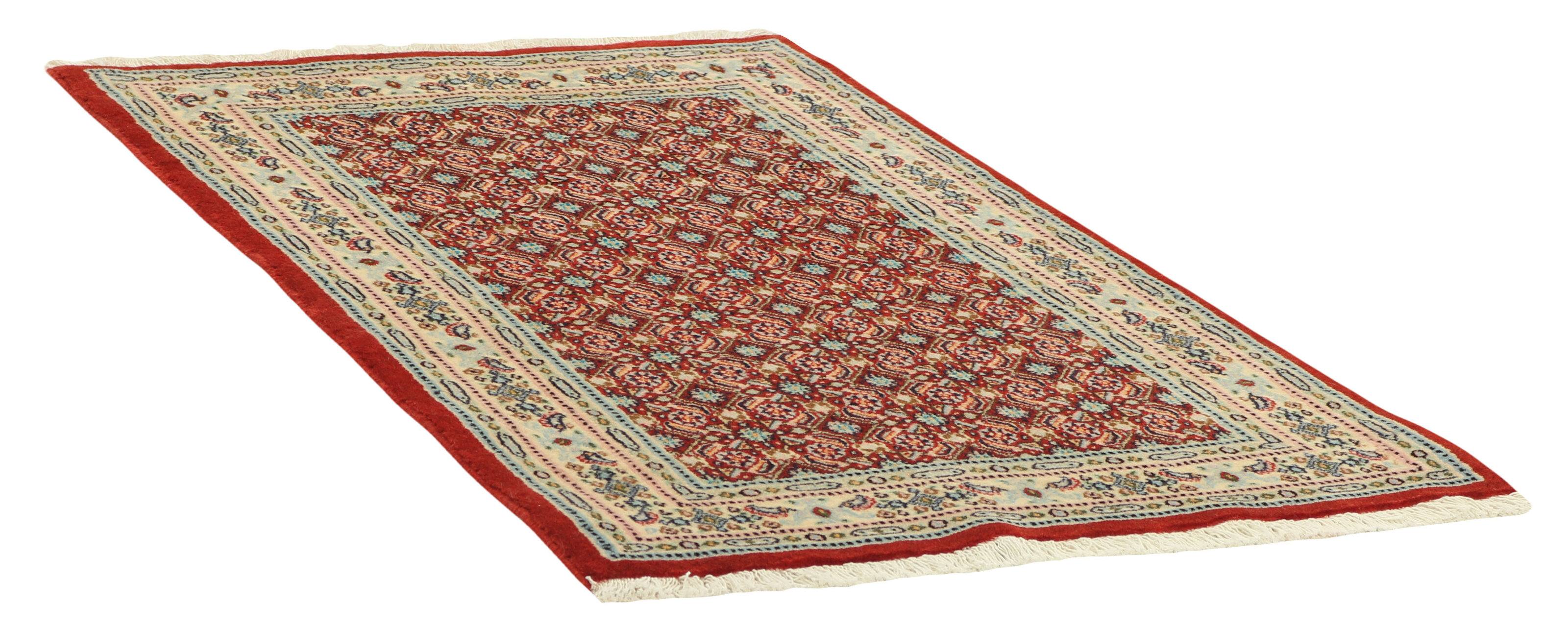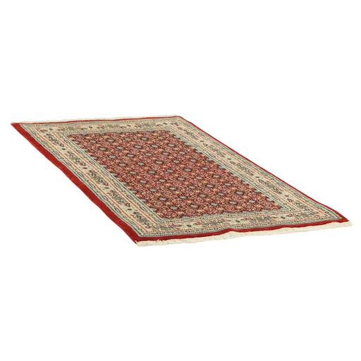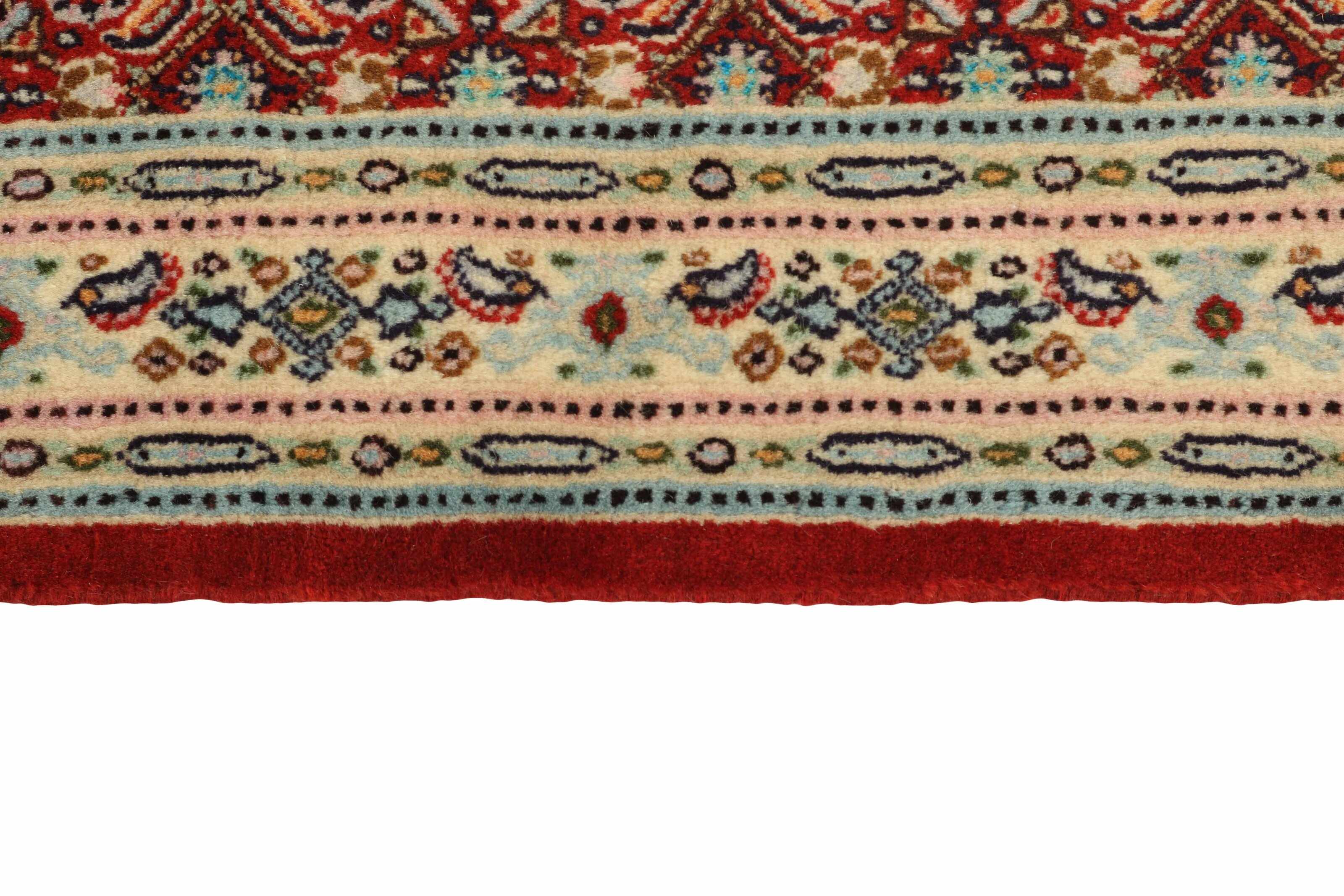 Moud est une petite ville au sud de Mashad, dans la province de Khorrasan. Les tapis de cette région se caractérisent par l'homogénéité de leurs motifs et de leur qualité. La chaîne et la trame sont en coton et le velours en laine. Les bordures sont une version de la bordure persane traditionnelle en tortue. Les tapis sont fabriqués dans toutes les tailles. Les tapis Moud sont souvent copiés en Inde, en raison de leur remarquable homogénéité. Les motifs caractéristiques de Moud sont parmi les plus uniformes, les plus réguliers et les plus facilement reconnaissables de la province de Khorrasan. Les Moud Mahi sont fabriqués dans des tons beige, rouge clair ou bleu, avec des motifs Mahi sur toute la surface ou avec un médaillon en forme d'étoile. Mahi signifie poisson et le motif Mahi est le motif le plus couramment utilisé dans les véritables tapis persans. En l'observant de près, vous pouvez voir un étang entouré de quatre poissons.