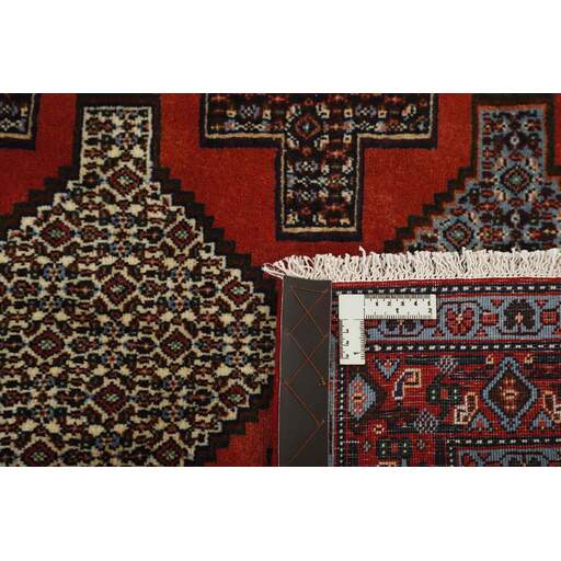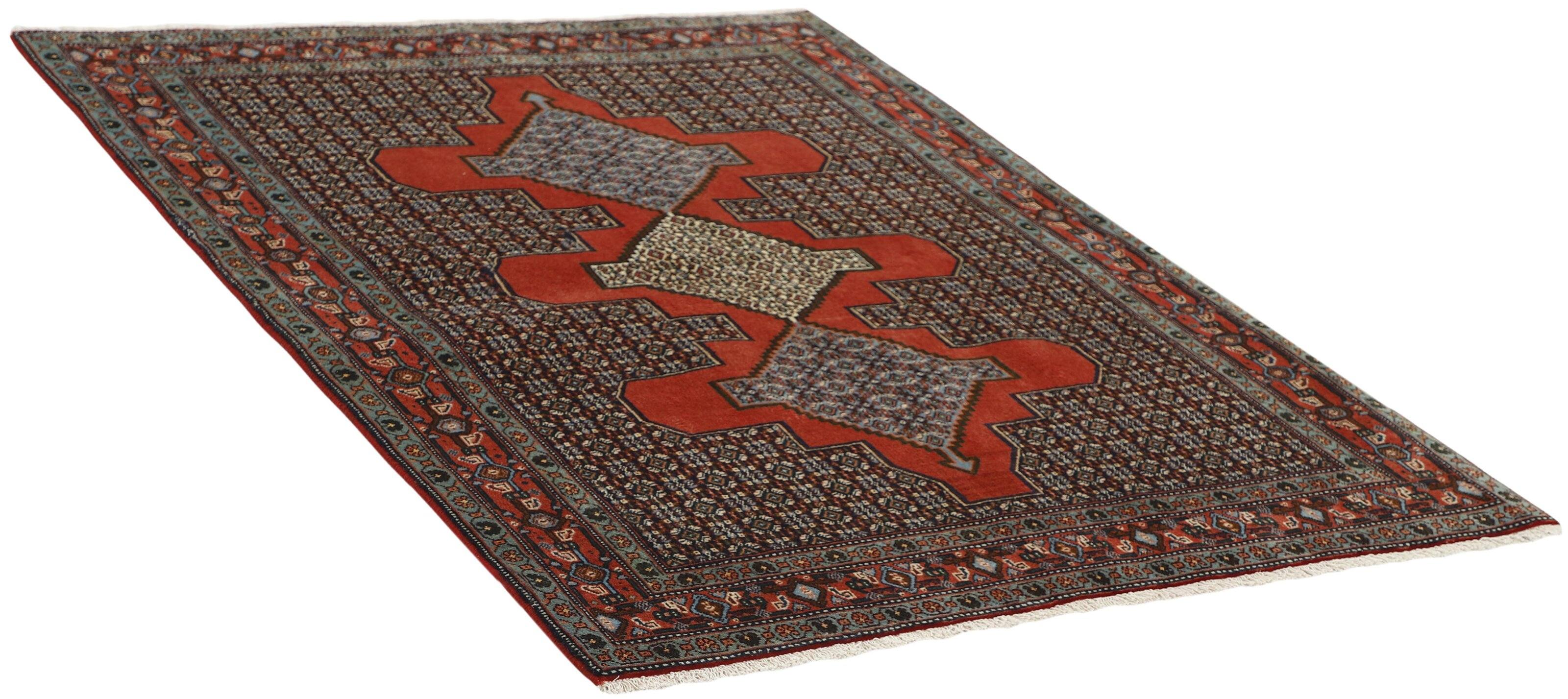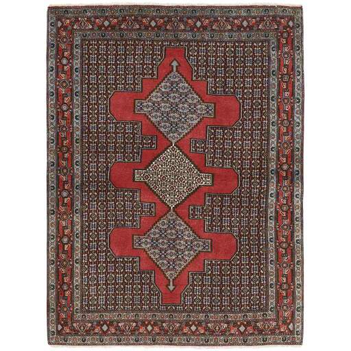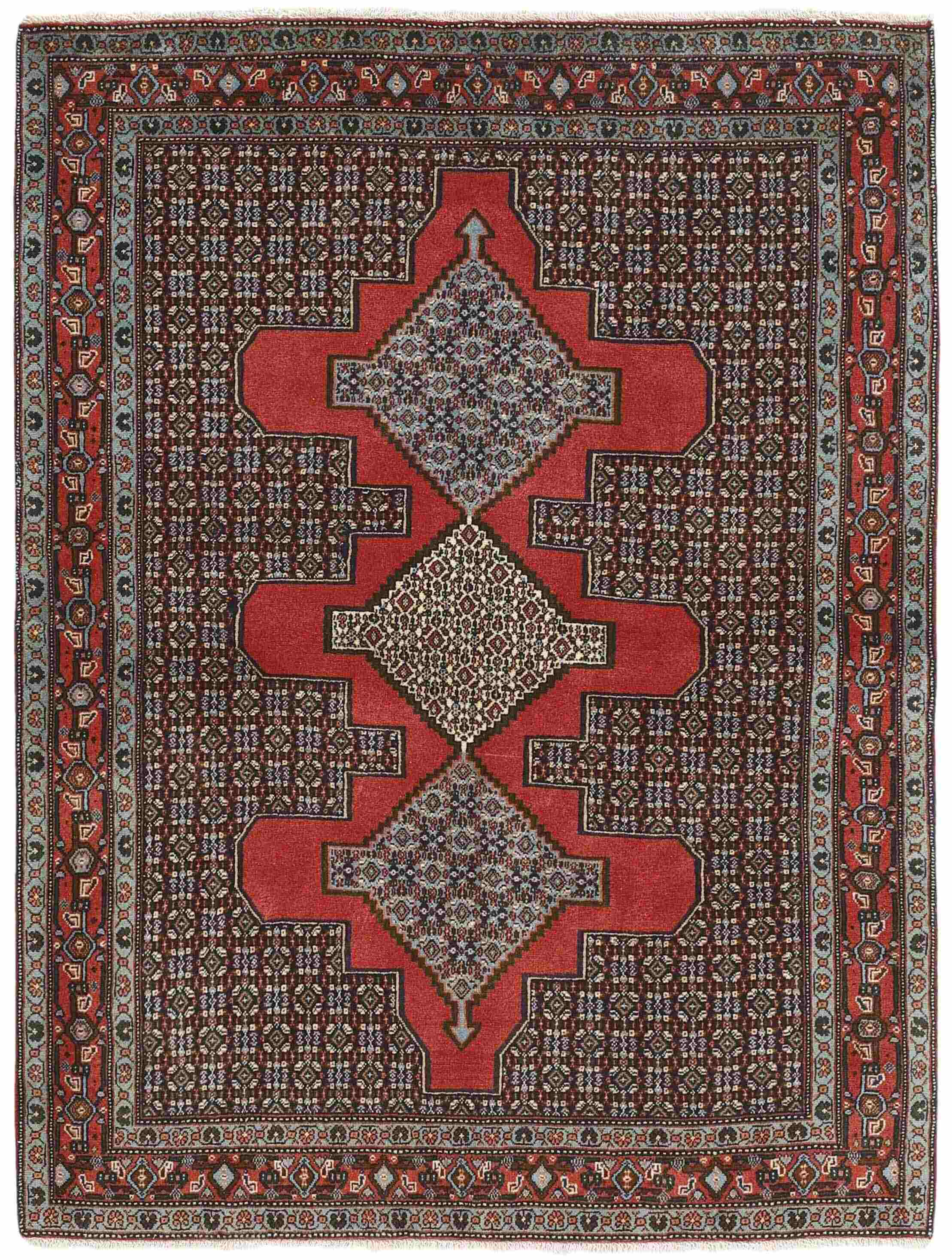 Seneh, dans le Sanadaj, est la capitale de la province du Kurdistan, au nord-ouest de l'Iran. Elle compte environ 300 000 habitants, la plupart étant des Kurdes de la tribu Gurani. Les tapis Seneh sont facilement reconnaissables à leur méthode de nouage, ainsi qu'aux couleurs des motifs et à la laine utilisée. Ils ont généralement une trame simple et le dos des tapis est souvent grossier et granuleux, car la laine est filée à la main avant le nouage. Parfois, on peut voir un nouage ferme de type Bidjar. Les couleurs caractéristiques sont le bleu profond, le vert, le rouge foncé et le blanc. La laine Seneh est l'une des meilleures qualités de laine en Iran : ferme et durable, avec un éclat profond, résultat de la haute altitude, de la végétation clairsemée et des températures extrêmes. Les noueurs tribaux de la région utilisent le même type de laine. Au 19e siècle, les tapis Seneh étaient célèbres pour leur finesse et la variété de leurs motifs, tandis que la production moderne est moins fine et moins variée. Le nœud Ghiordis est généralement utilisé, mais vous trouverez également des tapis de Seneh avec le nœud Seneh. Le tapis Seneh typique présente un champ à motifs Herati, avec une série de médaillons géométriques, les uns dans les autres, chacun répétant le motif avec une couleur de fond différente. Parfois, on retrouve des motifs plus anciens et plus uniformes : Boteh, Vekili, Gol-Farang (bouquets de fleurs naturalistes de style européen) ou Gol-i-Bulbul (oiseaux et fleurs).