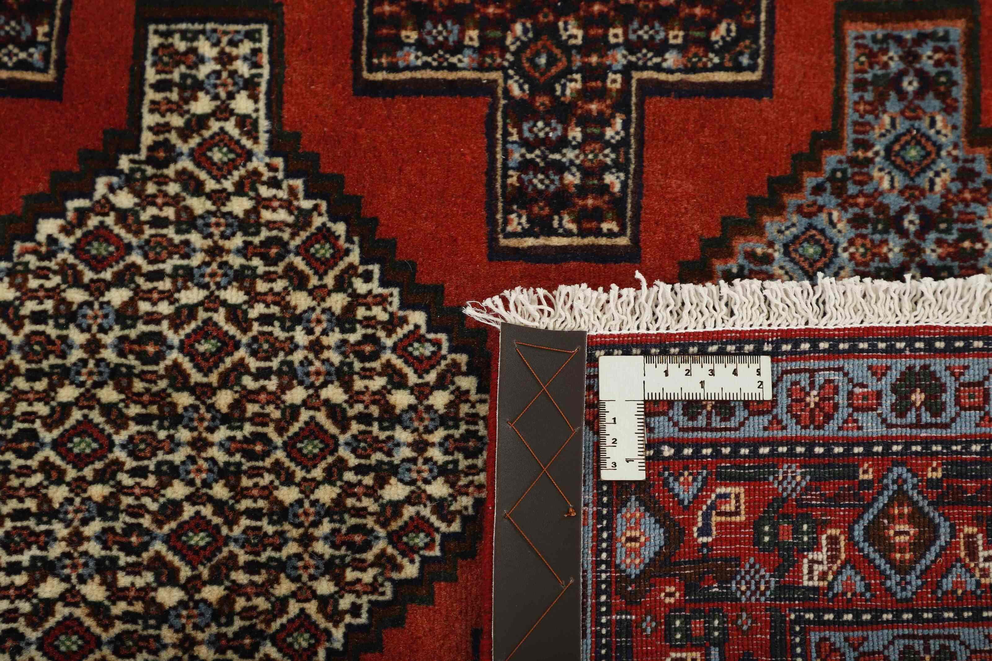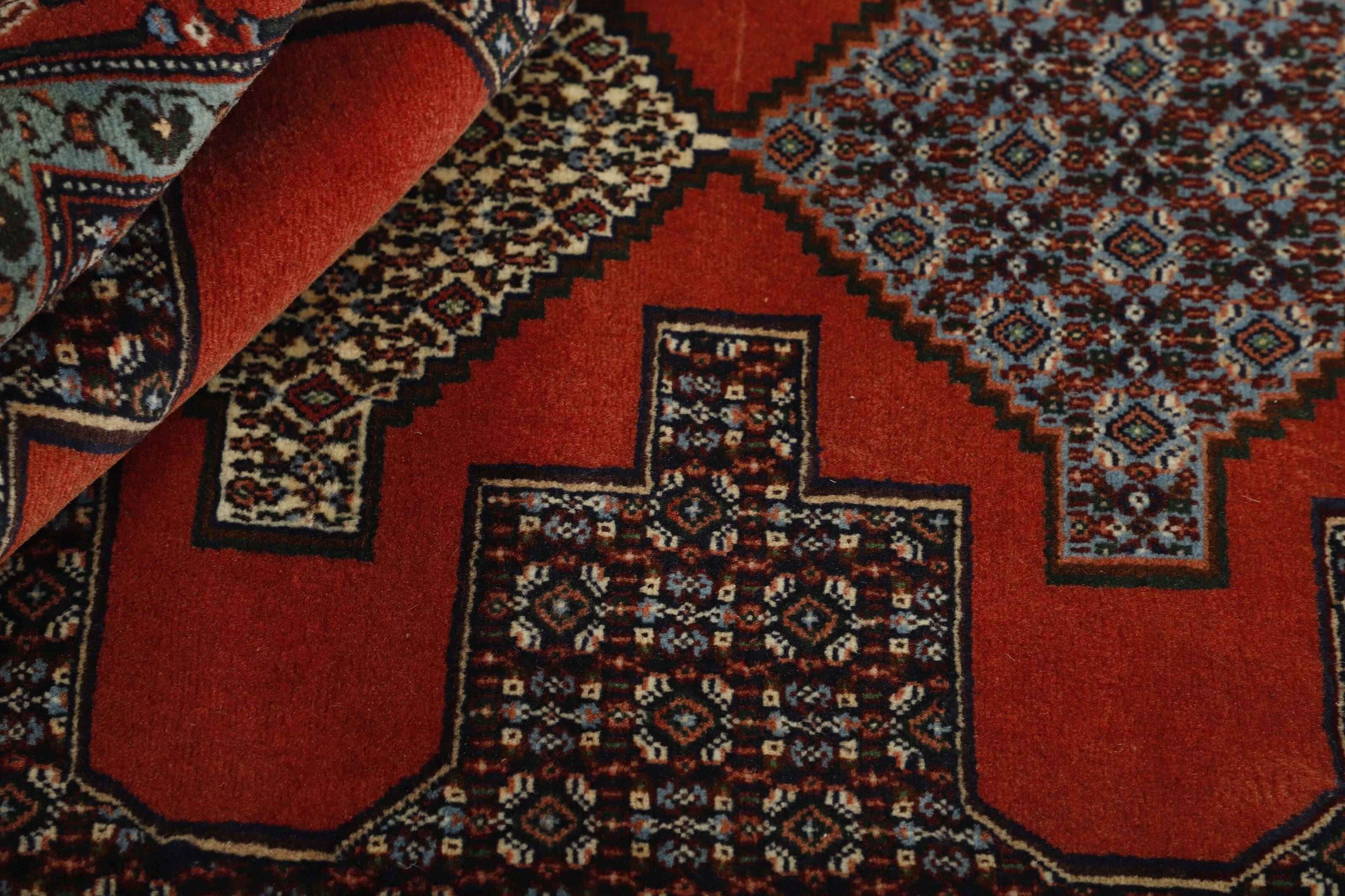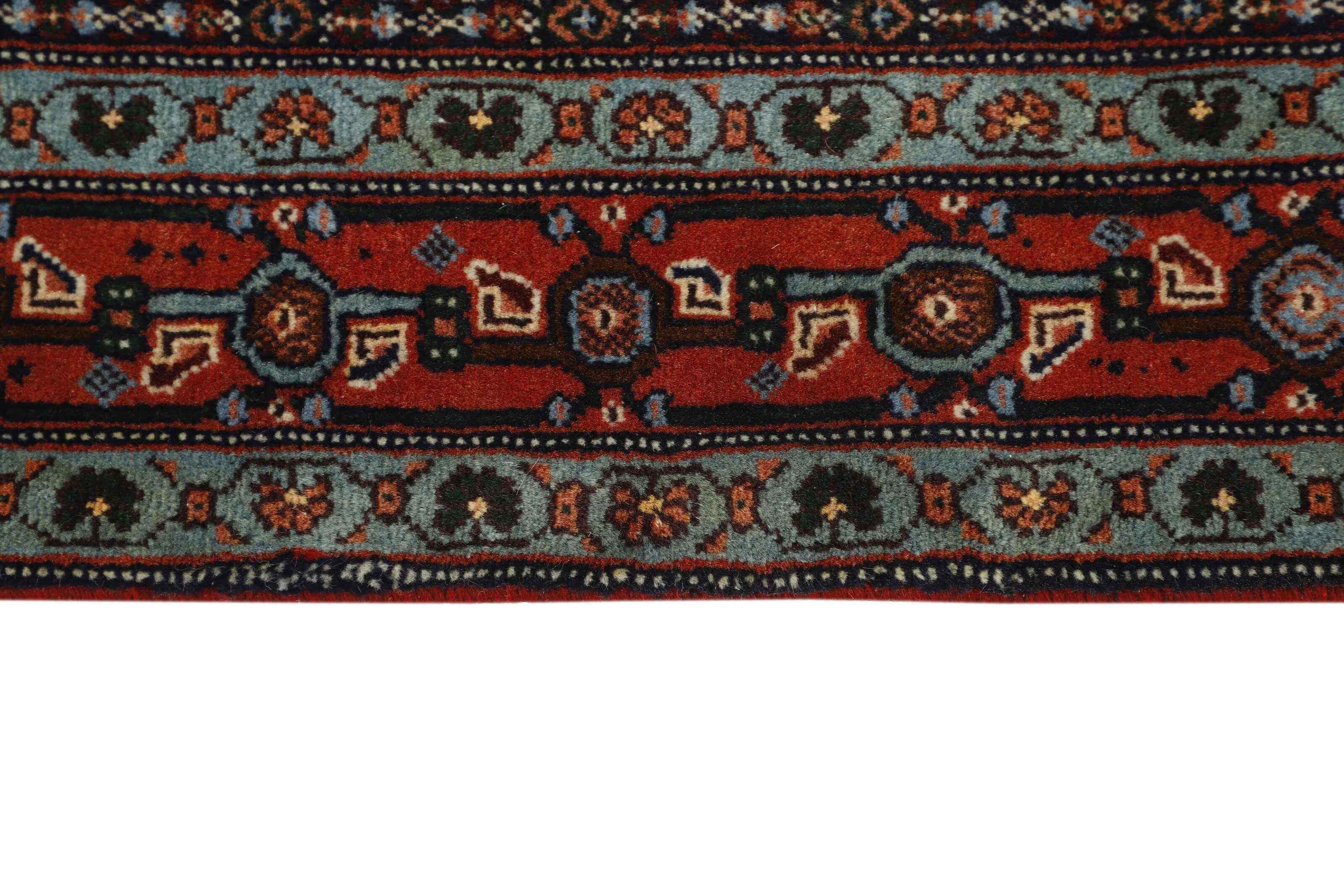 Seneh, dans le Sanadaj, est la capitale de la province du Kurdistan, au nord-ouest de l'Iran. Elle compte environ 300 000 habitants, la plupart étant des Kurdes de la tribu Gurani. Les tapis Seneh sont facilement reconnaissables à leur méthode de nouage, ainsi qu'aux couleurs des motifs et à la laine utilisée. Ils ont généralement une trame simple et le dos des tapis est souvent grossier et granuleux, car la laine est filée à la main avant le nouage. Parfois, on peut voir un nouage ferme de type Bidjar. Les couleurs caractéristiques sont le bleu profond, le vert, le rouge foncé et le blanc. La laine Seneh est l'une des meilleures qualités de laine en Iran : ferme et durable, avec un éclat profond, résultat de la haute altitude, de la végétation clairsemée et des températures extrêmes. Les noueurs tribaux de la région utilisent le même type de laine. Au 19e siècle, les tapis Seneh étaient célèbres pour leur finesse et la variété de leurs motifs, tandis que la production moderne est moins fine et moins variée. Le nœud Ghiordis est généralement utilisé, mais vous trouverez également des tapis de Seneh avec le nœud Seneh. Le tapis Seneh typique présente un champ à motifs Herati, avec une série de médaillons géométriques, les uns dans les autres, chacun répétant le motif avec une couleur de fond différente. Parfois, on retrouve des motifs plus anciens et plus uniformes : Boteh, Vekili, Gol-Farang (bouquets de fleurs naturalistes de style européen) ou Gol-i-Bulbul (oiseaux et fleurs).