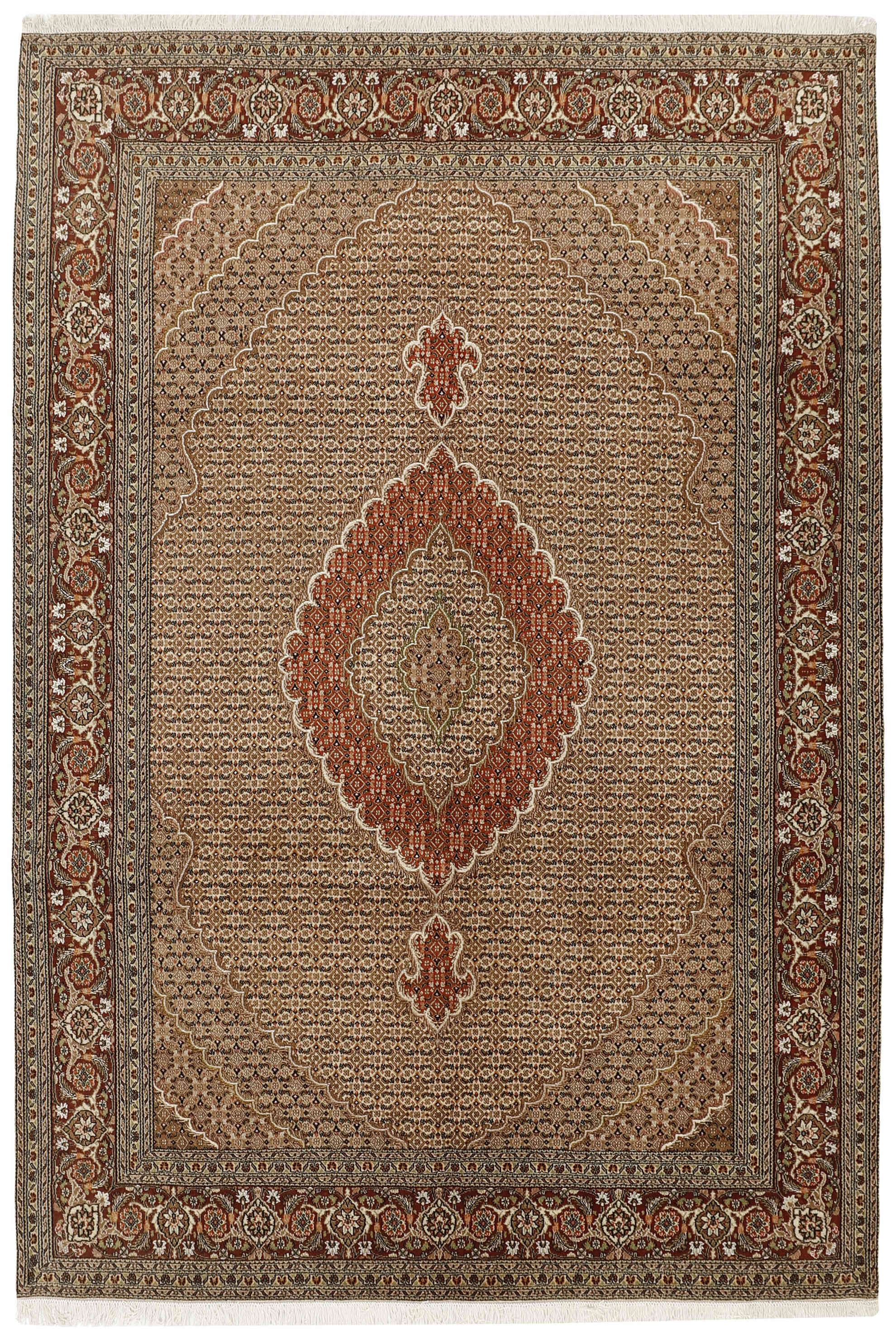 Tabriz est l'une des villes les plus importantes d'Iran. Elle compte 1,5 million d'habitants et est la capitale de la province de l'Azerbaïdjan oriental. Étant l'une des plus grandes régions productrices de tapis de Perse, les tapis de Tabriz sont exportés dans toutes les qualités, du plus simple au plus luxueux. Les meilleures qualités sont divisées en deux catégories principales : le Tabriz Mahi, également connu sous le nom de « motif de poisson de Tabriz » (le motif en forme de feuille du tapis est appelé Mahi, ce qui signifie « poisson »), et le Tabriz Nagsheh, qui signifie motif. Dans ce contexte, il fait référence aux motifs et symboles figuratifs de Keshan et d'Ispahan, qui ont inspiré le tapis Tabriz Nagsheh. Les noueurs sont incroyablement habiles et ils ont inventé un type spécial de crochet, qu'ils peuvent utiliser à la place de leurs doigts pour nouer les nœuds. La chaîne et la trame sont en coton, et le velours est en laine, souvent avec de la soie tissée dans les qualités les plus fines. Les couleurs des meilleurs tapis sont fines et raffinées. Les qualités les plus brutes ont des couleurs vives et sont rarement exportées. Les tapis de Tabriz sont souvent numérotés, comme Tabriz 50, ce qui est une indication de qualité. Le Tabriz 50 a 500 000 nœuds par m2. Les tapis de Tabriz sont considérés comme étant durables et de très haute qualité.
