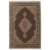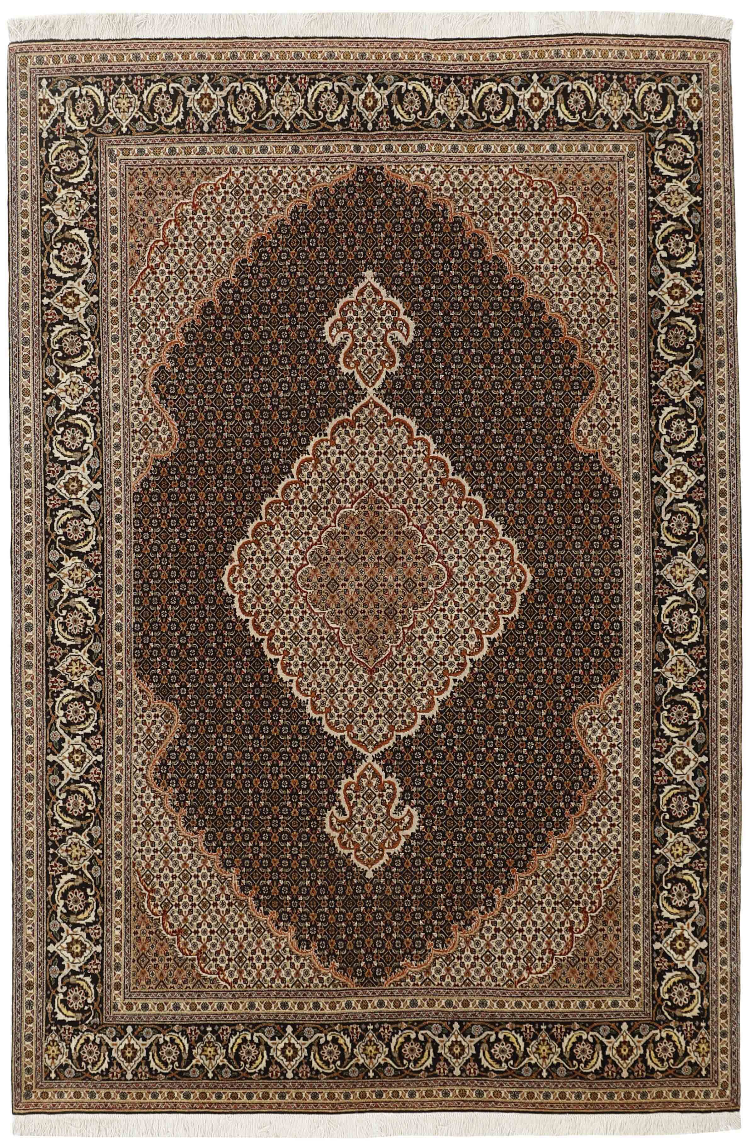 Tabriz est l'une des villes les plus importantes d'Iran. Elle compte 1,5 million d'habitants et est la capitale de la province de l'Azerbaïdjan oriental. Étant l'une des plus grandes régions productrices de tapis de Perse, les tapis de Tabriz sont exportés dans toutes les qualités, du plus simple au plus luxueux. Les meilleures qualités sont divisées en deux catégories principales : le Tabriz Mahi, également connu sous le nom de « motif de poisson de Tabriz » (le motif en forme de feuille du tapis est appelé Mahi, ce qui signifie « poisson »), et le Tabriz Nagsheh, qui signifie motif. Dans ce contexte, il fait référence aux motifs et symboles figuratifs de Keshan et d'Ispahan, qui ont inspiré le tapis Tabriz Nagsheh. Les noueurs sont incroyablement habiles et ils ont inventé un type spécial de crochet, qu'ils peuvent utiliser à la place de leurs doigts pour nouer les nœuds. La chaîne et la trame sont en coton, et le velours est en laine, souvent avec de la soie tissée dans les qualités les plus fines. Les couleurs des meilleurs tapis sont fines et raffinées. Les qualités les plus brutes ont des couleurs vives et sont rarement exportées. Les tapis de Tabriz sont souvent numérotés, comme Tabriz 50, ce qui est une indication de qualité. Le Tabriz 50 a 500 000 nœuds par m2. Les tapis de Tabriz sont considérés comme étant durables et de très haute qualité.