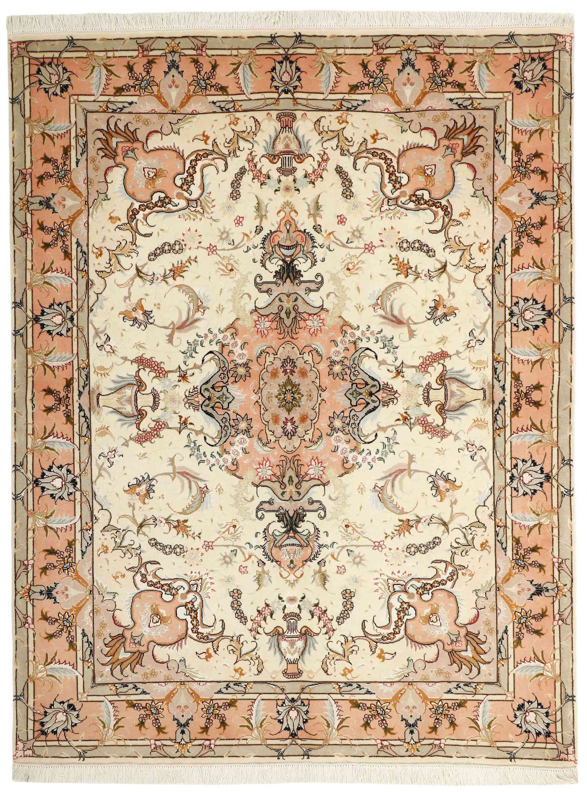 Tabriz est l'une des villes les plus importantes d'Iran. Elle compte 1,5 million d'habitants et est la capitale de la province de l'Azerbaïdjan oriental. Étant l'une des plus grandes régions productrices de tapis de Perse, les tapis de Tabriz sont exportés dans toutes les qualités, du plus simple au plus luxueux. Les meilleures qualités sont divisées en deux catégories principales : le Tabriz Mahi, également connu sous le nom de « motif de poisson de Tabriz » (le motif en forme de feuille du tapis est appelé Mahi, ce qui signifie « poisson »), et le Tabriz Nagsheh, qui signifie motif. Dans ce contexte, il fait référence aux motifs et symboles figuratifs de Keshan et d'Ispahan, qui ont inspiré le tapis Tabriz Nagsheh. Les noueurs sont incroyablement habiles et ils ont inventé un type spécial de crochet, qu'ils peuvent utiliser à la place de leurs doigts pour nouer les nœuds. La chaîne et la trame sont en coton, et le velours est en laine, souvent avec de la soie tissée dans les qualités les plus fines. Les couleurs des meilleurs tapis sont fines et raffinées. Les qualités les plus brutes ont des couleurs vives et sont rarement exportées. Les tapis de Tabriz sont souvent numérotés, comme Tabriz 50, ce qui est une indication de qualité. Le Tabriz 50 a 500 000 nœuds par m2. Les tapis de Tabriz sont considérés comme étant durables et de très haute qualité.