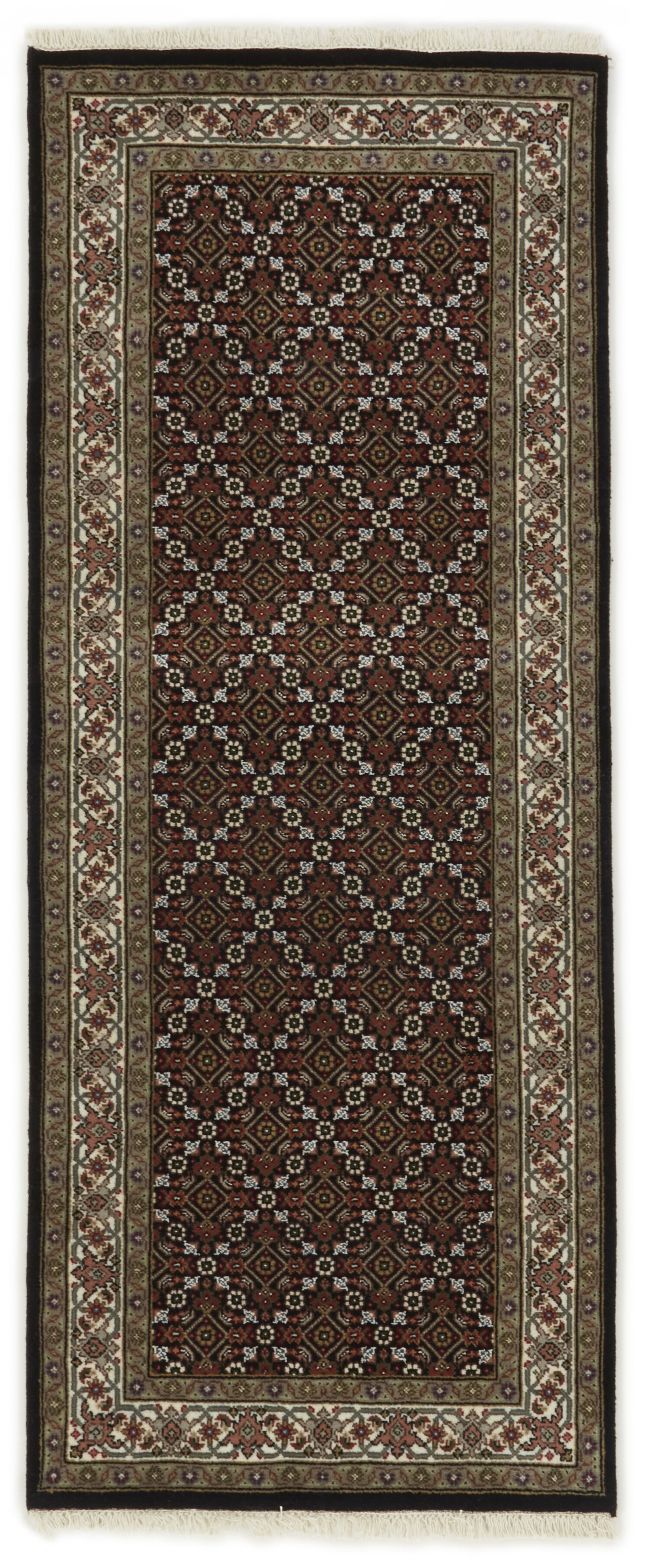 Les tapis Tabriz Royals sont des tapis classiques noués à la main originaires d'Inde, avec des motifs inspirés des tapis persans originaux de Tabriz. Les tapis ont des couleurs classiques et atténuées qui s'accordent bien avec le style scandinave moderne. Les tapis Tabriz sont généralement structurés autour d'un médaillon central entouré d'un motif mahi. Il existe une certaine différence de qualité entre les Royals et les Indis, mais elle n'est pas facilement observable.
