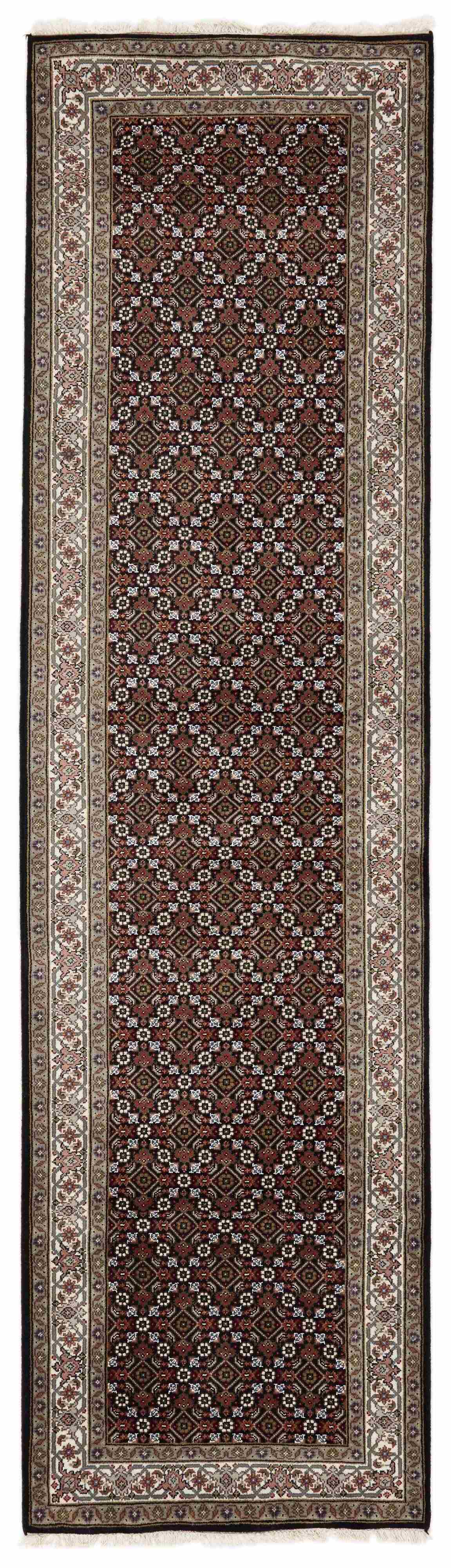 Les tapis Tabriz Royals sont des tapis classiques noués à la main originaires d'Inde, avec des motifs inspirés des tapis persans originaux de Tabriz. Les tapis ont des couleurs classiques et atténuées qui s'accordent bien avec le style scandinave moderne. Les tapis Tabriz sont généralement structurés autour d'un médaillon central entouré d'un motif mahi. Il existe une certaine différence de qualité entre les Royals et les Indis, mais elle n'est pas facilement observable.
