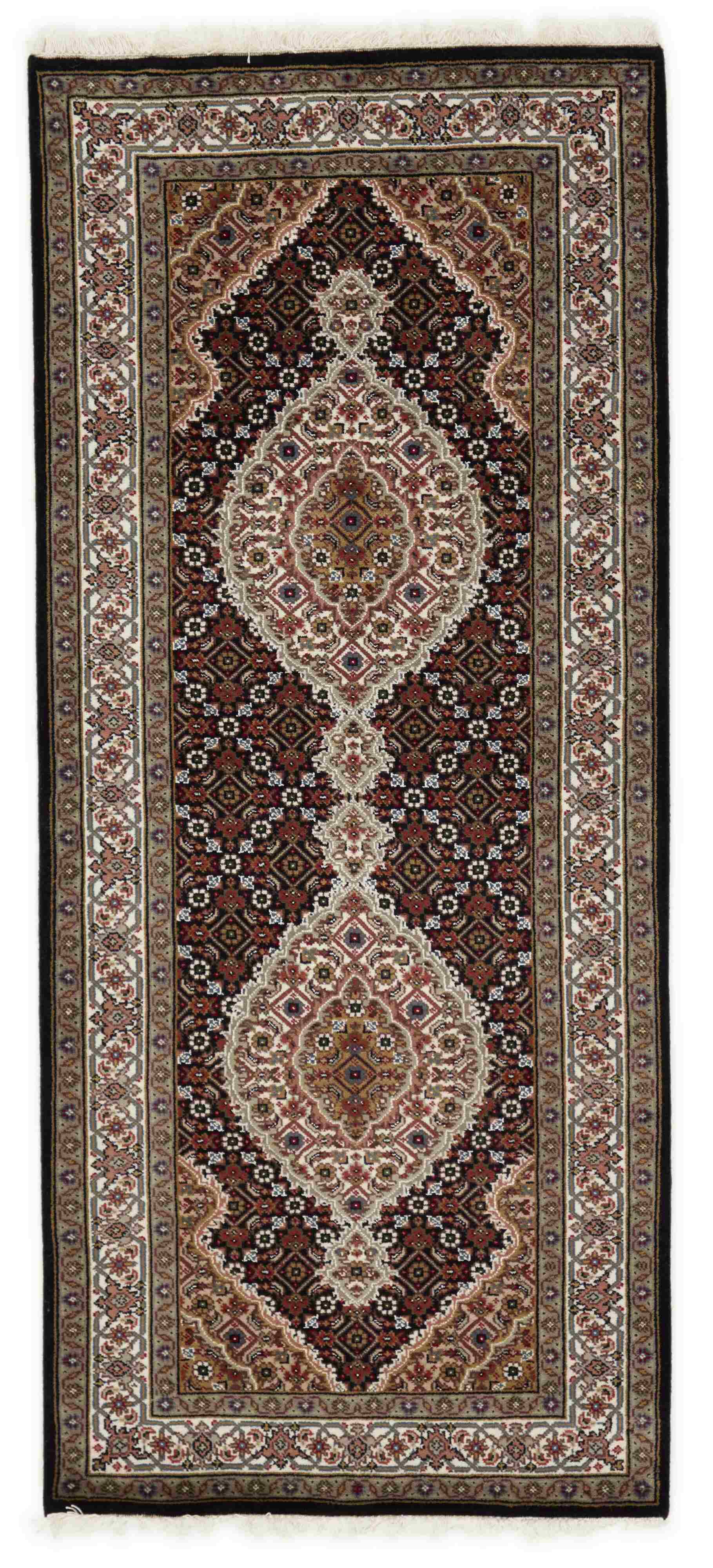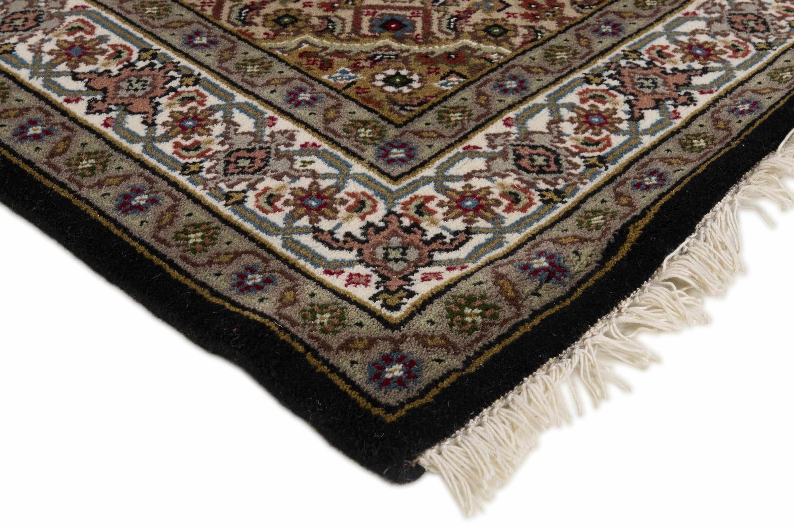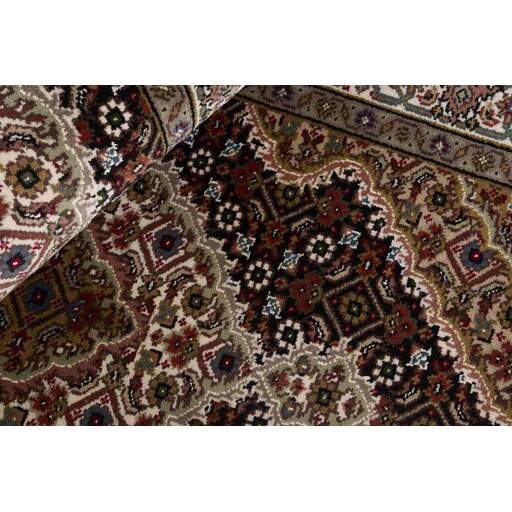 Les tapis Tabriz Royals sont des tapis classiques noués à la main originaires d'Inde, avec des motifs inspirés des tapis persans originaux de Tabriz. Les tapis ont des couleurs classiques et atténuées qui s'accordent bien avec le style scandinave moderne. Les tapis Tabriz sont généralement structurés autour d'un médaillon central entouré d'un motif mahi. Il existe une certaine différence de qualité entre les Royals et les Indis, mais elle n'est pas facilement observable.