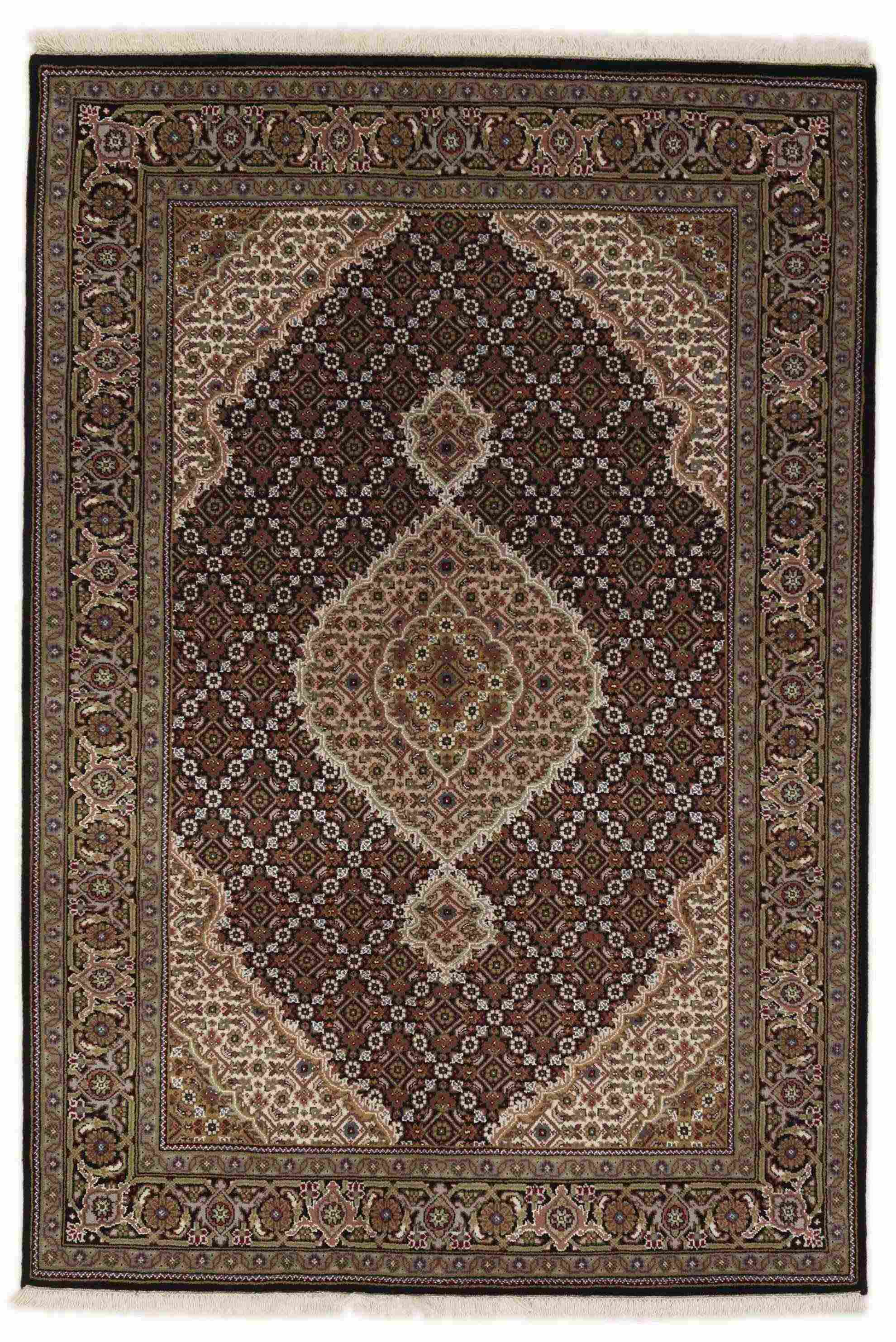Les tapis Tabriz Royals sont des tapis classiques noués à la main originaires d'Inde, avec des motifs inspirés des tapis persans originaux de Tabriz. Les tapis ont des couleurs classiques et atténuées qui s'accordent bien avec le style scandinave moderne. Les tapis Tabriz sont généralement structurés autour d'un médaillon central entouré d'un motif mahi. Il existe une certaine différence de qualité entre les Royals et les Indis, mais elle n'est pas facilement observable.