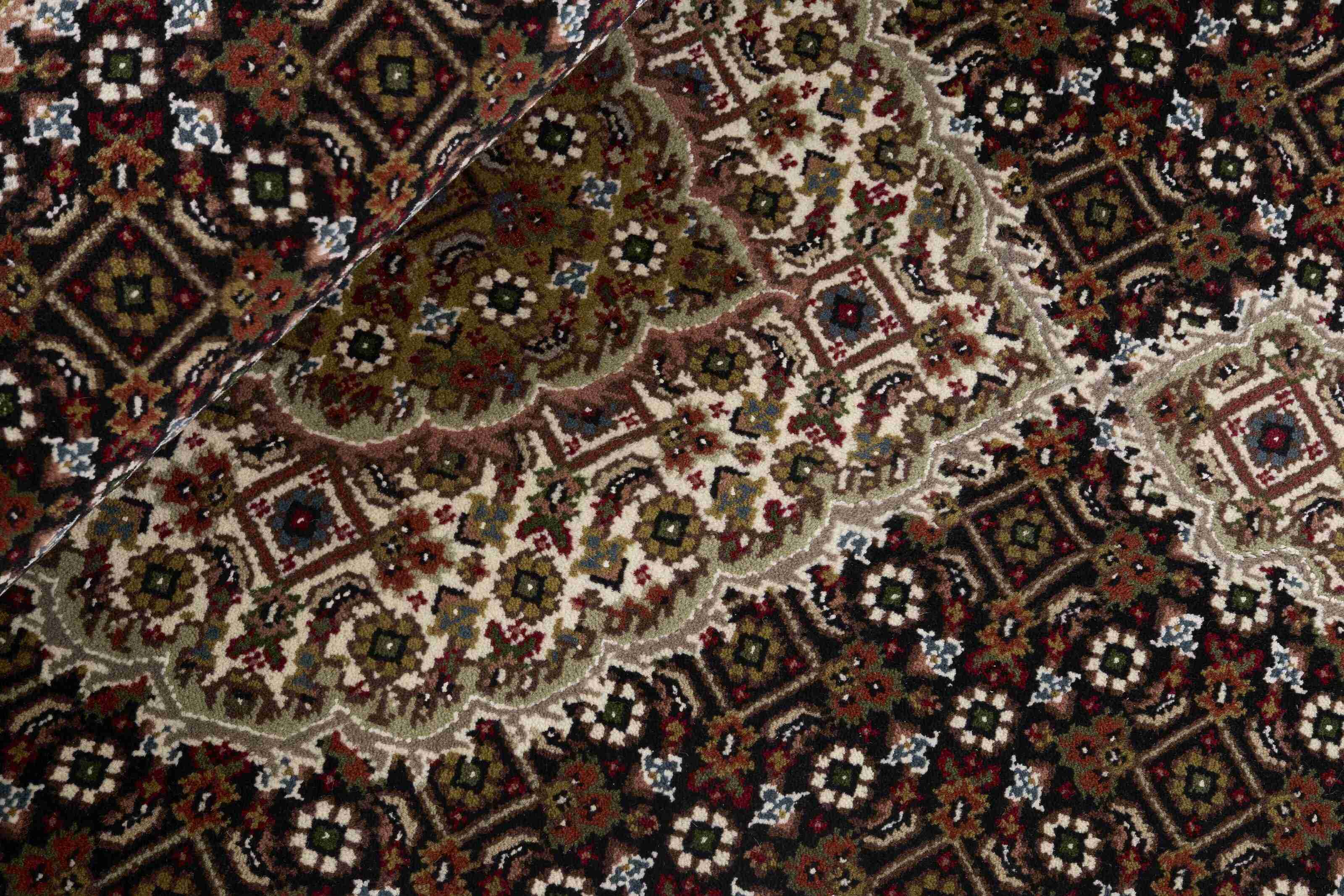 Les tapis Tabriz Royals sont des tapis classiques noués à la main originaires d'Inde, avec des motifs inspirés des tapis persans originaux de Tabriz. Les tapis ont des couleurs classiques et atténuées qui s'accordent bien avec le style scandinave moderne. Les tapis Tabriz sont généralement structurés autour d'un médaillon central entouré d'un motif mahi. Il existe une certaine différence de qualité entre les Royals et les Indis, mais elle n'est pas facilement observable.
