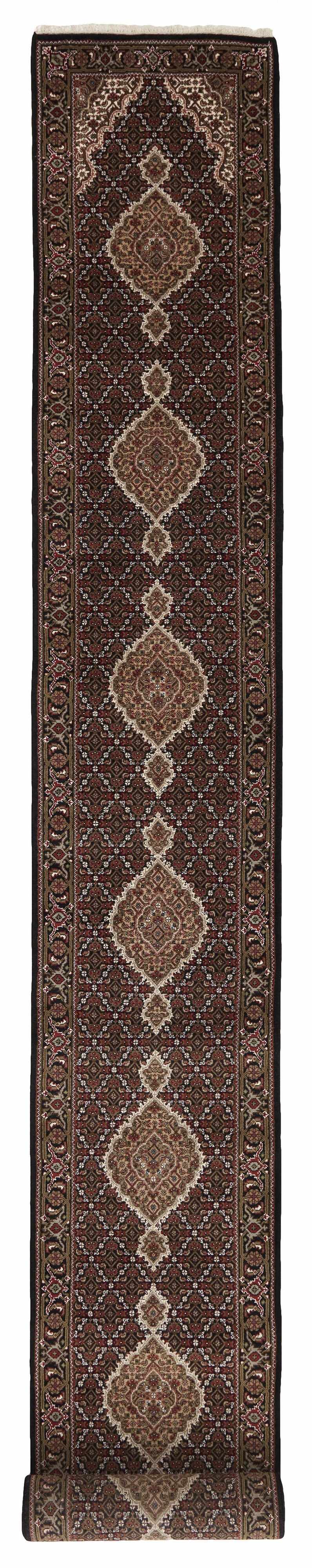 Les tapis Tabriz Royals sont des tapis classiques noués à la main originaires d'Inde, avec des motifs inspirés des tapis persans originaux de Tabriz. Les tapis ont des couleurs classiques et atténuées qui s'accordent bien avec le style scandinave moderne. Les tapis Tabriz sont généralement structurés autour d'un médaillon central entouré d'un motif mahi. Il existe une certaine différence de qualité entre les Royals et les Indis, mais elle n'est pas facilement observable.