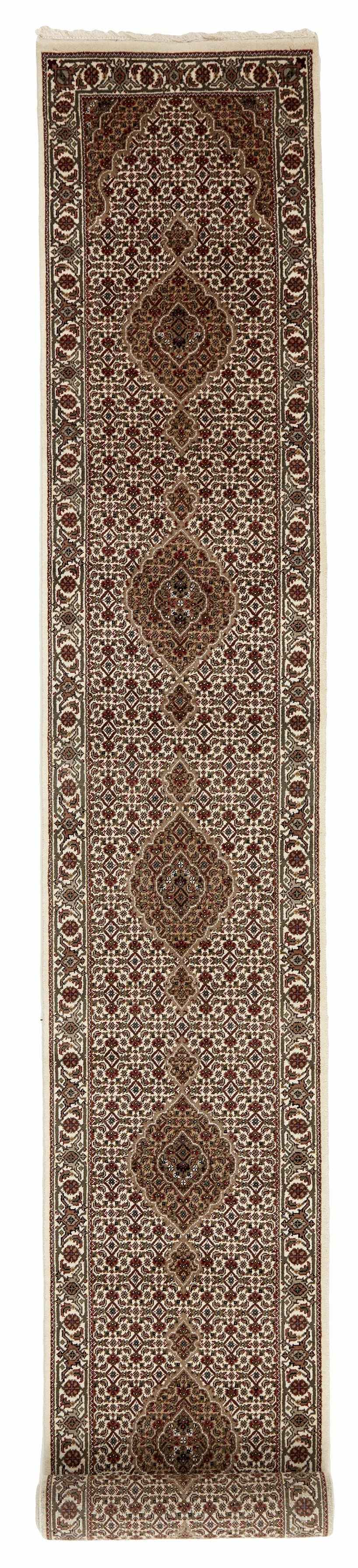 Les tapis Tabriz Royals sont des tapis classiques noués à la main originaires d'Inde, avec des motifs inspirés des tapis persans originaux de Tabriz. Les tapis ont des couleurs classiques et atténuées qui s'accordent bien avec le style scandinave moderne. Les tapis Tabriz sont généralement structurés autour d'un médaillon central entouré d'un motif mahi. Il existe une certaine différence de qualité entre les Royals et les Indis, mais elle n'est pas facilement observable.