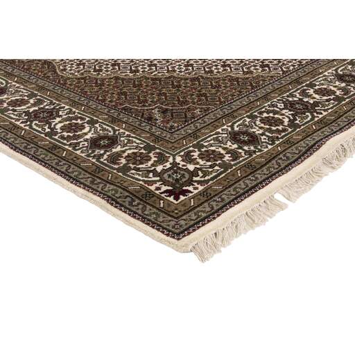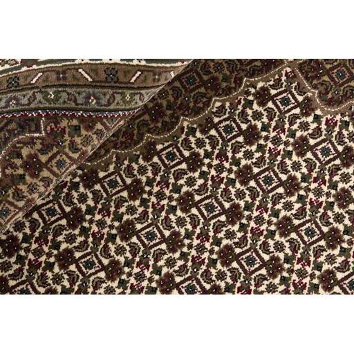 Les tapis Tabriz Royals sont des tapis classiques noués à la main originaires d'Inde, avec des motifs inspirés des tapis persans originaux de Tabriz. Les tapis ont des couleurs classiques et atténuées qui s'accordent bien avec le style scandinave moderne. Les tapis Tabriz sont généralement structurés autour d'un médaillon central entouré d'un motif mahi. Il existe une certaine différence de qualité entre les Royals et les Indis, mais elle n'est pas facilement observable.