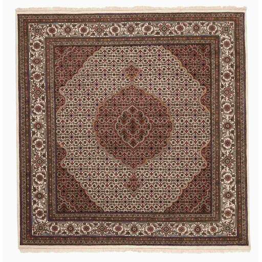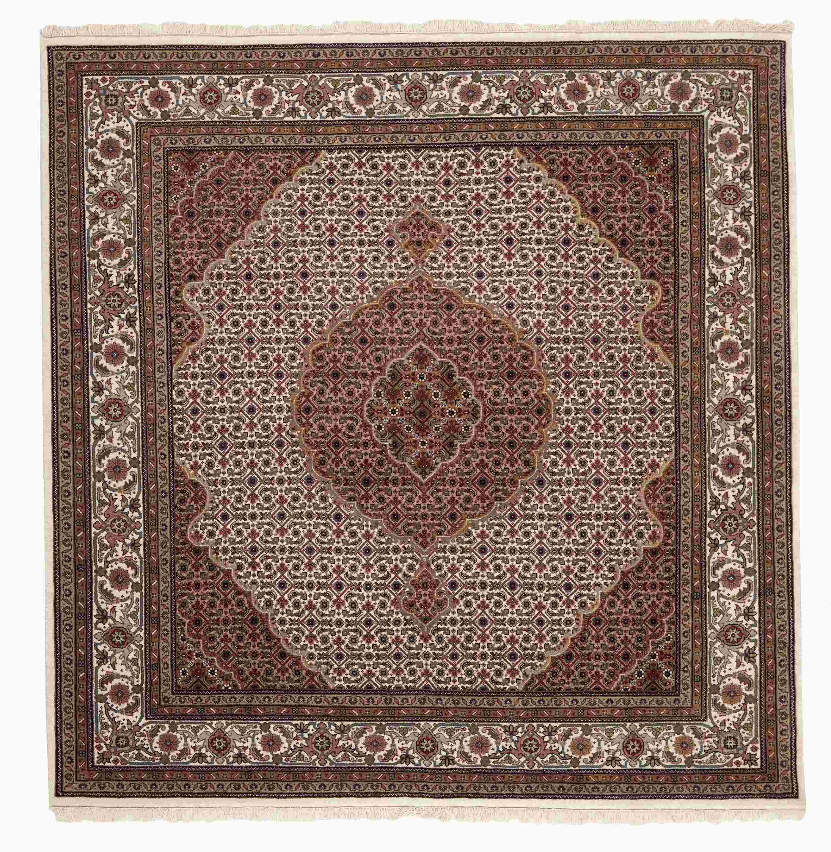 Les tapis Tabriz Royals sont des tapis classiques noués à la main originaires d'Inde, avec des motifs inspirés des tapis persans originaux de Tabriz. Les tapis ont des couleurs classiques et atténuées qui s'accordent bien avec le style scandinave moderne. Les tapis Tabriz sont généralement structurés autour d'un médaillon central entouré d'un motif mahi. Il existe une certaine différence de qualité entre les Royals et les Indis, mais elle n'est pas facilement observable.