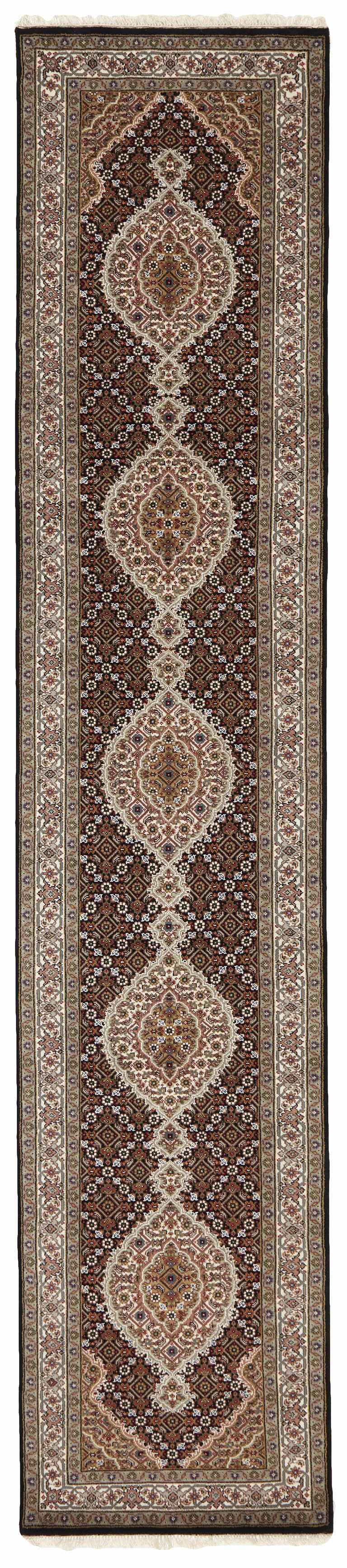 Les tapis Tabriz Royals sont des tapis classiques noués à la main originaires d'Inde, avec des motifs inspirés des tapis persans originaux de Tabriz. Les tapis ont des couleurs classiques et atténuées qui s'accordent bien avec le style scandinave moderne. Les tapis Tabriz sont généralement structurés autour d'un médaillon central entouré d'un motif mahi. Il existe une certaine différence de qualité entre les Royals et les Indis, mais elle n'est pas facilement observable.