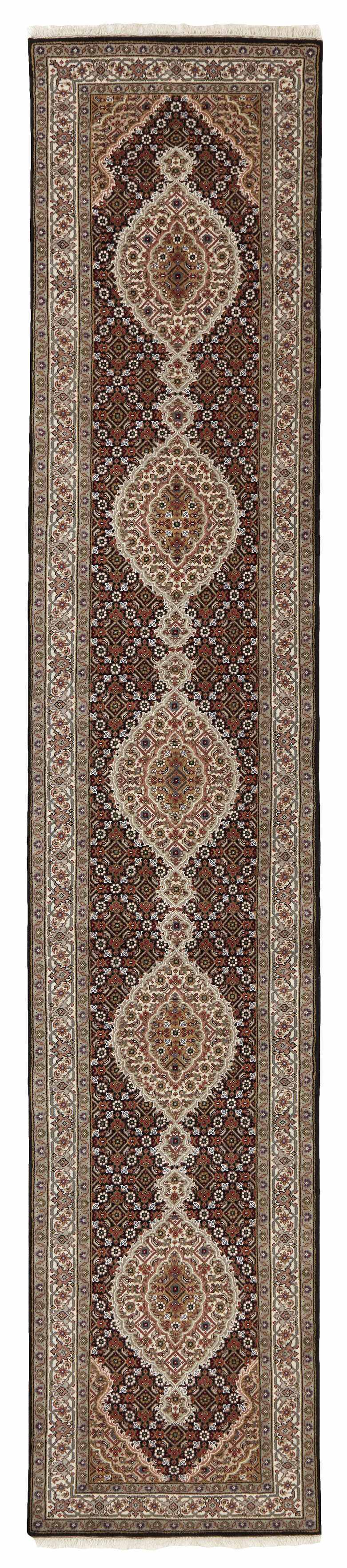 Les tapis Tabriz Royals sont des tapis classiques noués à la main originaires d'Inde, avec des motifs inspirés des tapis persans originaux de Tabriz. Les tapis ont des couleurs classiques et atténuées qui s'accordent bien avec le style scandinave moderne. Les tapis Tabriz sont généralement structurés autour d'un médaillon central entouré d'un motif mahi. Il existe une certaine différence de qualité entre les Royals et les Indis, mais elle n'est pas facilement observable.