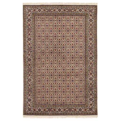 Les tapis Tabriz Royals sont des tapis classiques noués à la main originaires d'Inde, avec des motifs inspirés des tapis persans originaux de Tabriz. Les tapis ont des couleurs classiques et atténuées qui s'accordent bien avec le style scandinave moderne. Les tapis Tabriz sont généralement structurés autour d'un médaillon central entouré d'un motif mahi. Il existe une certaine différence de qualité entre les Royals et les Indis, mais elle n'est pas facilement observable.