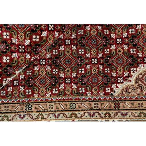 Les tapis Tabriz Royals sont des tapis classiques noués à la main originaires d'Inde, avec des motifs inspirés des tapis persans originaux de Tabriz. Les tapis ont des couleurs classiques et atténuées qui s'accordent bien avec le style scandinave moderne. Les tapis Tabriz sont généralement structurés autour d'un médaillon central entouré d'un motif mahi. Il existe une certaine différence de qualité entre les Royals et les Indis, mais elle n'est pas facilement observable.