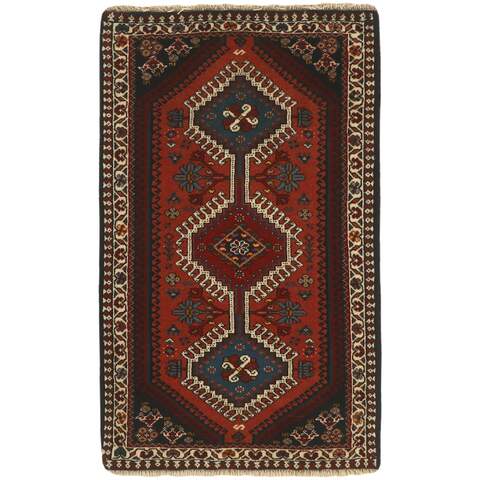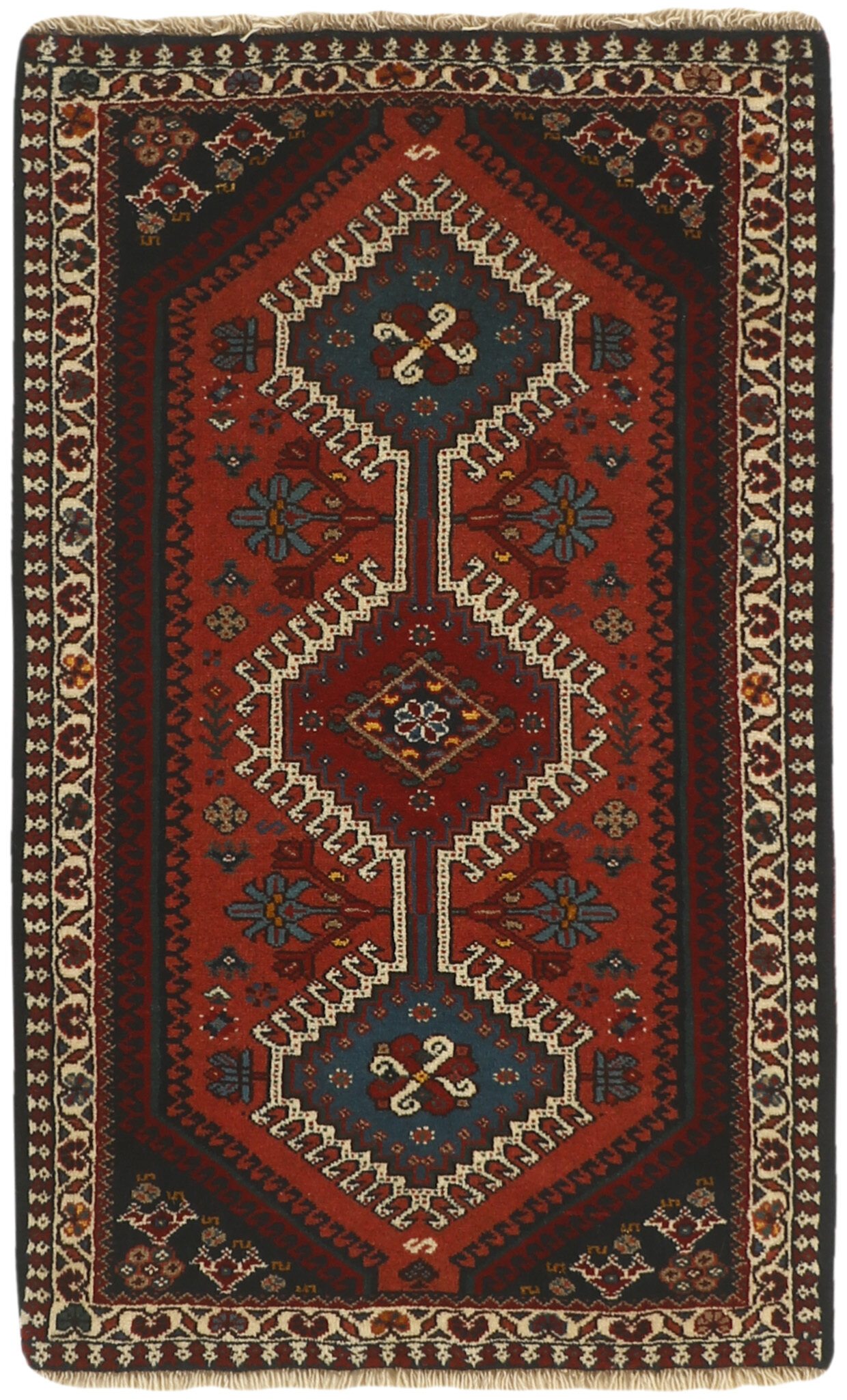 Les tapis colorés du sud de l'Iran ont été appelés Yalameh et sont principalement fabriqués dans et autour du village d'Aliabad dans la province du Fars. Les tapis de cette origine étaient autrefois appelés Shekarlu, mais ils étaient très rares. Ils étaient traditionnellement plus colorés que les autres tapis du sud de l'Iran, dont les couleurs se limitaient au rouge et au bleu foncé. Ces dernières années, l'offre de Shekarlu a été limitée, mais un nouveau type de tapis est arrivé sur le marché dans les années 60 et 70 : les Yalameh. Ils étaient tout aussi colorés que les tapis Shekarlu, mais avec une plus forte emphase sur le bleu. Le nouage et les motifs sont généralement plus uniformes que ceux des tapis Shekarlu. Ils partagent de nombreuses caractéristiques avec les tapis tribaux : ils sont 100 % laine, et les couleurs vives et les motifs géométriques sont abondamment utilisés. Bien que la laine soit particulièrement douce et brillante, elle est filée à la machine et les couleurs présentent un degré de variation plus important que la normale pour les tapis tribaux, avec de douces nuances de rouge, rose, bleu, vert et jaune. Les motifs, cependant, sont tout à fait traditionnels.