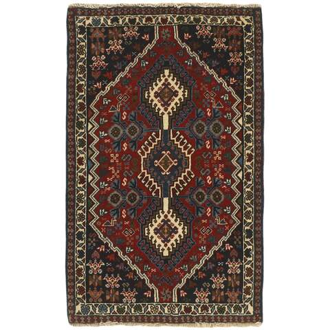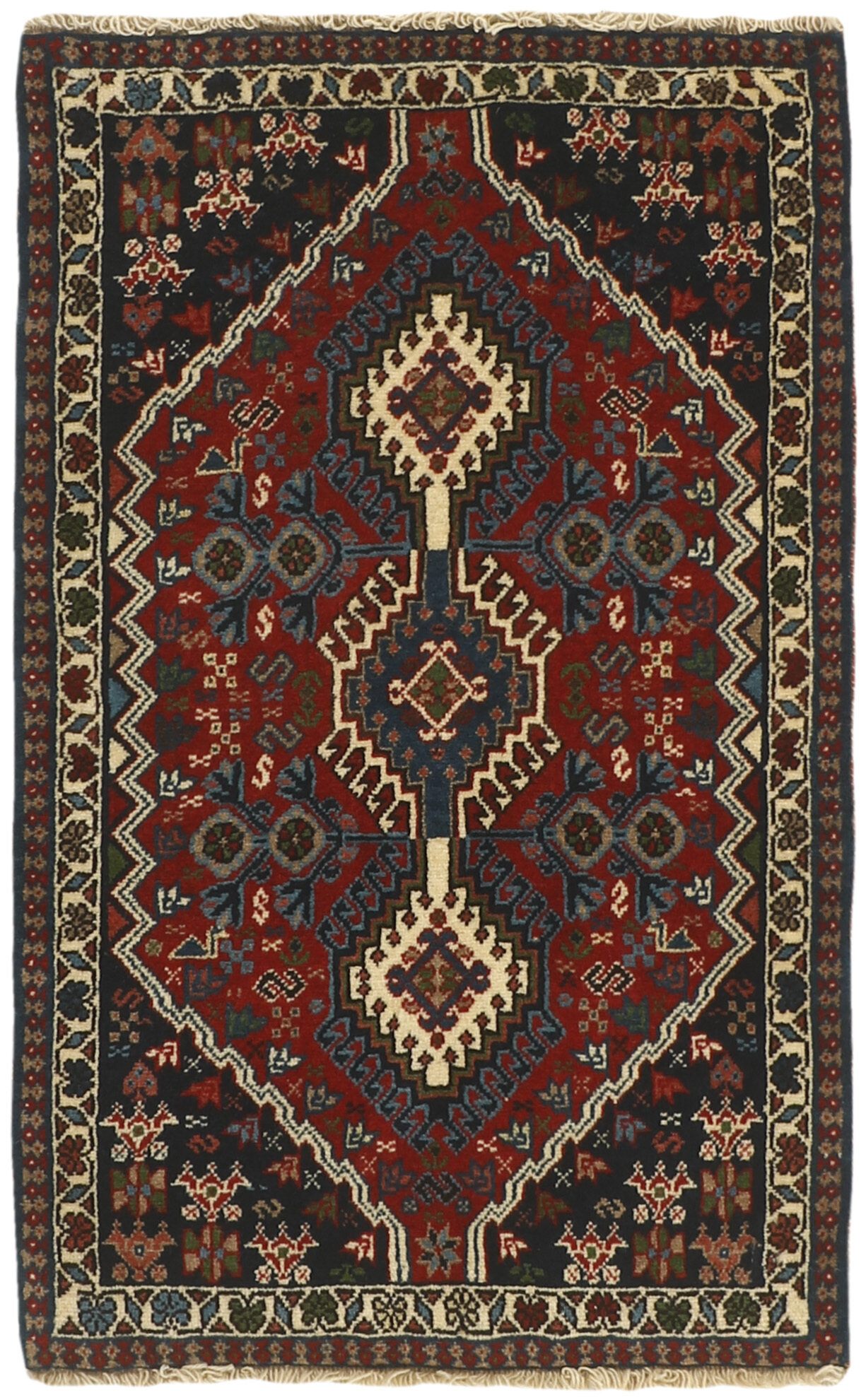 Les tapis colorés du sud de l'Iran ont été appelés Yalameh et sont principalement fabriqués dans et autour du village d'Aliabad dans la province du Fars. Les tapis de cette origine étaient autrefois appelés Shekarlu, mais ils étaient très rares. Ils étaient traditionnellement plus colorés que les autres tapis du sud de l'Iran, dont les couleurs se limitaient au rouge et au bleu foncé. Ces dernières années, l'offre de Shekarlu a été limitée, mais un nouveau type de tapis est arrivé sur le marché dans les années 60 et 70 : les Yalameh. Ils étaient tout aussi colorés que les tapis Shekarlu, mais avec une plus forte emphase sur le bleu. Le nouage et les motifs sont généralement plus uniformes que ceux des tapis Shekarlu. Ils partagent de nombreuses caractéristiques avec les tapis tribaux : ils sont 100 % laine, et les couleurs vives et les motifs géométriques sont abondamment utilisés. Bien que la laine soit particulièrement douce et brillante, elle est filée à la machine et les couleurs présentent un degré de variation plus important que la normale pour les tapis tribaux, avec de douces nuances de rouge, rose, bleu, vert et jaune. Les motifs, cependant, sont tout à fait traditionnels.