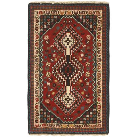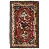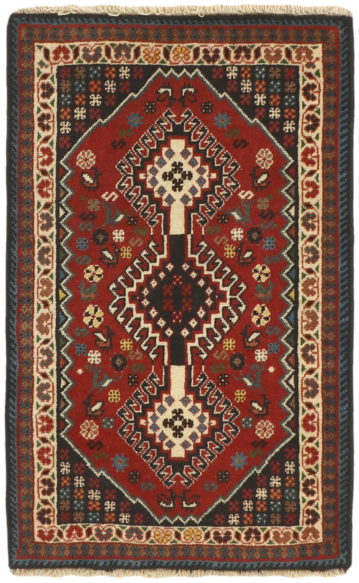 Les tapis colorés du sud de l'Iran ont été appelés Yalameh et sont principalement fabriqués dans et autour du village d'Aliabad dans la province du Fars. Les tapis de cette origine étaient autrefois appelés Shekarlu, mais ils étaient très rares. Ils étaient traditionnellement plus colorés que les autres tapis du sud de l'Iran, dont les couleurs se limitaient au rouge et au bleu foncé. Ces dernières années, l'offre de Shekarlu a été limitée, mais un nouveau type de tapis est arrivé sur le marché dans les années 60 et 70 : les Yalameh. Ils étaient tout aussi colorés que les tapis Shekarlu, mais avec une plus forte emphase sur le bleu. Le nouage et les motifs sont généralement plus uniformes que ceux des tapis Shekarlu. Ils partagent de nombreuses caractéristiques avec les tapis tribaux : ils sont 100 % laine, et les couleurs vives et les motifs géométriques sont abondamment utilisés. Bien que la laine soit particulièrement douce et brillante, elle est filée à la machine et les couleurs présentent un degré de variation plus important que la normale pour les tapis tribaux, avec de douces nuances de rouge, rose, bleu, vert et jaune. Les motifs, cependant, sont tout à fait traditionnels.