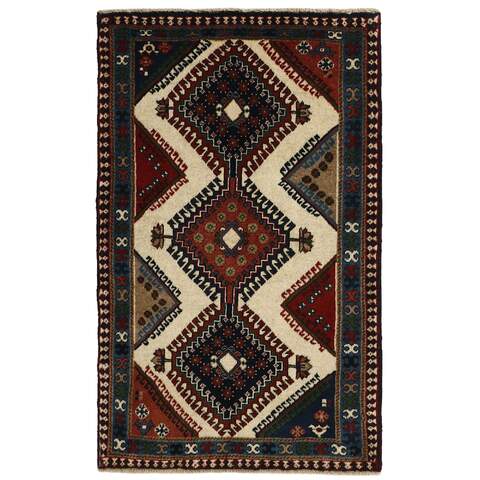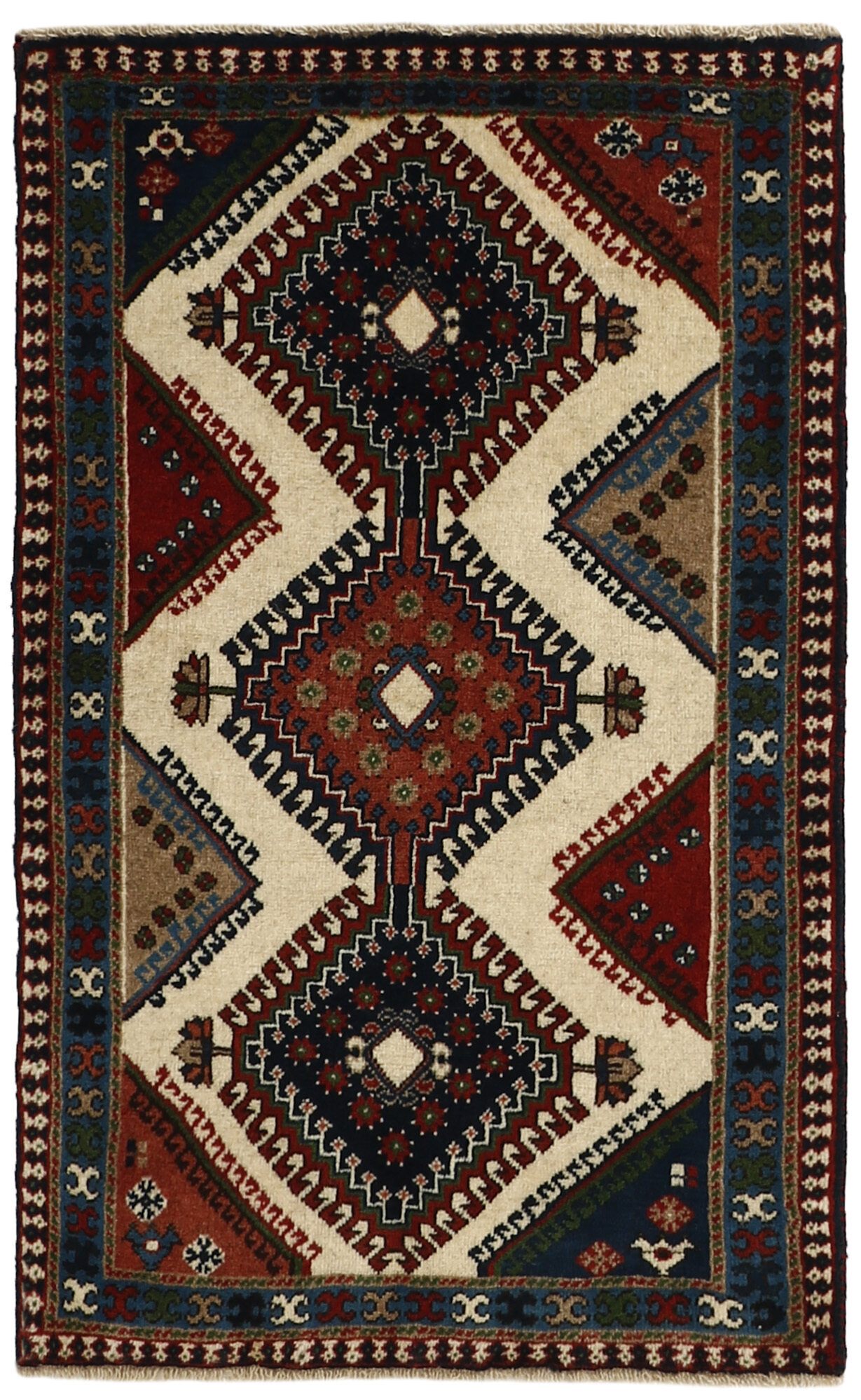 Les tapis colorés du sud de l'Iran ont été appelés Yalameh et sont principalement fabriqués dans et autour du village d'Aliabad dans la province du Fars. Les tapis de cette origine étaient autrefois appelés Shekarlu, mais ils étaient très rares. Ils étaient traditionnellement plus colorés que les autres tapis du sud de l'Iran, dont les couleurs se limitaient au rouge et au bleu foncé. Ces dernières années, l'offre de Shekarlu a été limitée, mais un nouveau type de tapis est arrivé sur le marché dans les années 60 et 70 : les Yalameh. Ils étaient tout aussi colorés que les tapis Shekarlu, mais avec une plus forte emphase sur le bleu. Le nouage et les motifs sont généralement plus uniformes que ceux des tapis Shekarlu. Ils partagent de nombreuses caractéristiques avec les tapis tribaux : ils sont 100 % laine, et les couleurs vives et les motifs géométriques sont abondamment utilisés. Bien que la laine soit particulièrement douce et brillante, elle est filée à la machine et les couleurs présentent un degré de variation plus important que la normale pour les tapis tribaux, avec de douces nuances de rouge, rose, bleu, vert et jaune. Les motifs, cependant, sont tout à fait traditionnels.