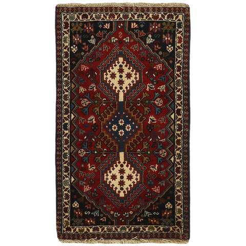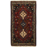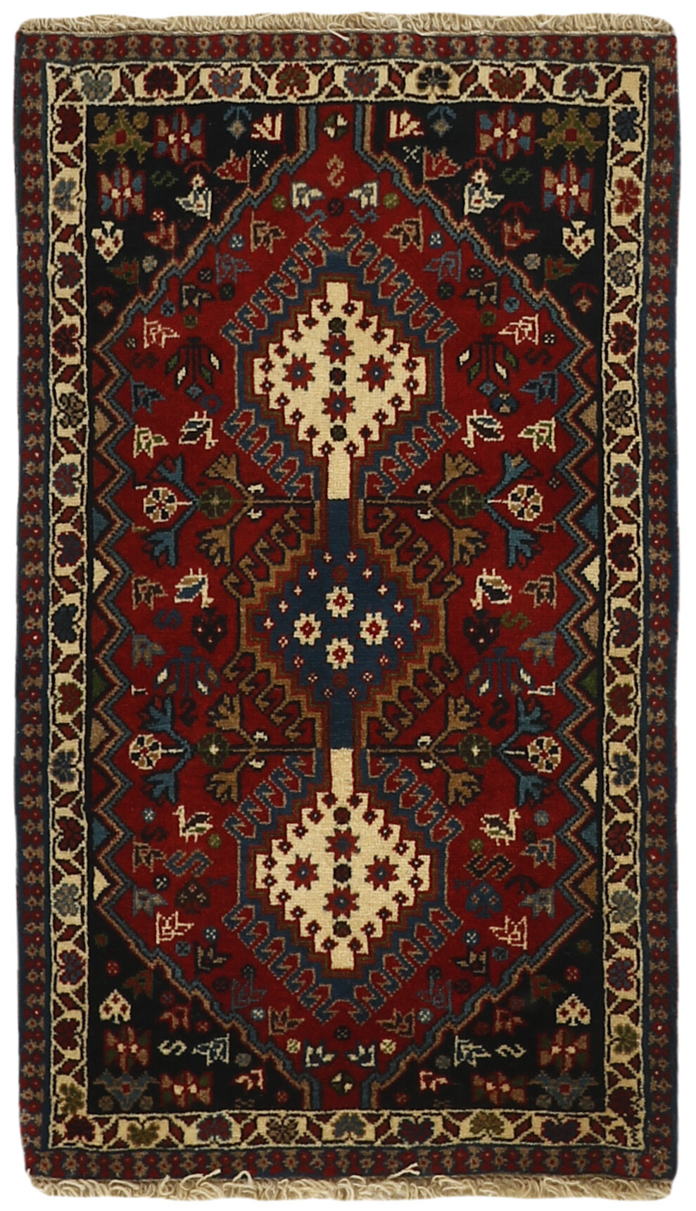 Les tapis colorés du sud de l'Iran ont été appelés Yalameh et sont principalement fabriqués dans et autour du village d'Aliabad dans la province du Fars. Les tapis de cette origine étaient autrefois appelés Shekarlu, mais ils étaient très rares. Ils étaient traditionnellement plus colorés que les autres tapis du sud de l'Iran, dont les couleurs se limitaient au rouge et au bleu foncé. Ces dernières années, l'offre de Shekarlu a été limitée, mais un nouveau type de tapis est arrivé sur le marché dans les années 60 et 70 : les Yalameh. Ils étaient tout aussi colorés que les tapis Shekarlu, mais avec une plus forte emphase sur le bleu. Le nouage et les motifs sont généralement plus uniformes que ceux des tapis Shekarlu. Ils partagent de nombreuses caractéristiques avec les tapis tribaux : ils sont 100 % laine, et les couleurs vives et les motifs géométriques sont abondamment utilisés. Bien que la laine soit particulièrement douce et brillante, elle est filée à la machine et les couleurs présentent un degré de variation plus important que la normale pour les tapis tribaux, avec de douces nuances de rouge, rose, bleu, vert et jaune. Les motifs, cependant, sont tout à fait traditionnels.