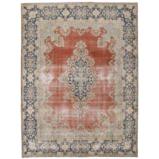 Vintage Kerman zijn antieke handgeknoopte tapijten van Perzische oorsprong. Deze Vintage Kerman Collectie bestaat uit een heel tapijt dat is gestonewashed en opnieuw is gekleurd in lichte, donkere of felle kleuren, waarbij het oude patroon net zichtbaar is. De tapijten zijn van zeer hoge kwaliteit en verkrijgbaar in grote maten. Met de Vintage Kerman Collectie krijgt u niet zomaar een tapijt; u versiert uw huis met een uniek stuk antiek, Perzisch handwerk.